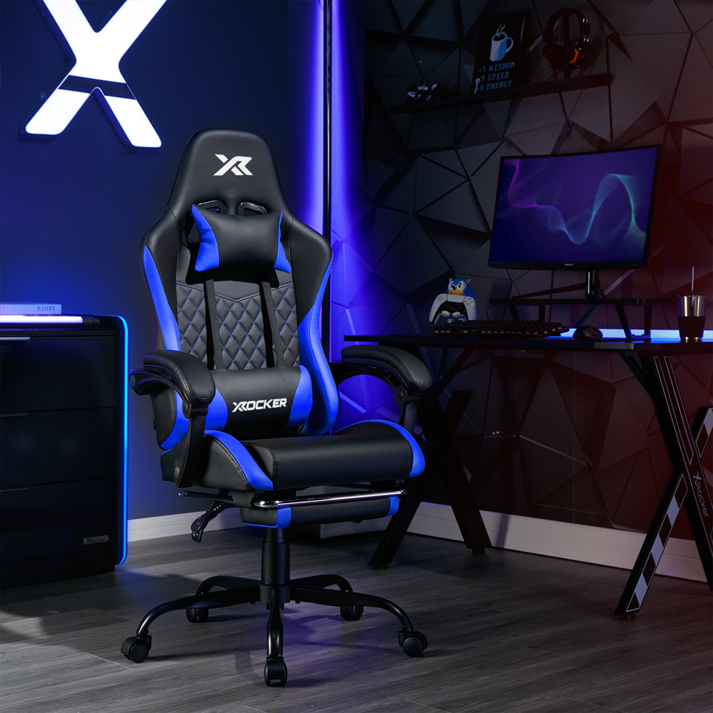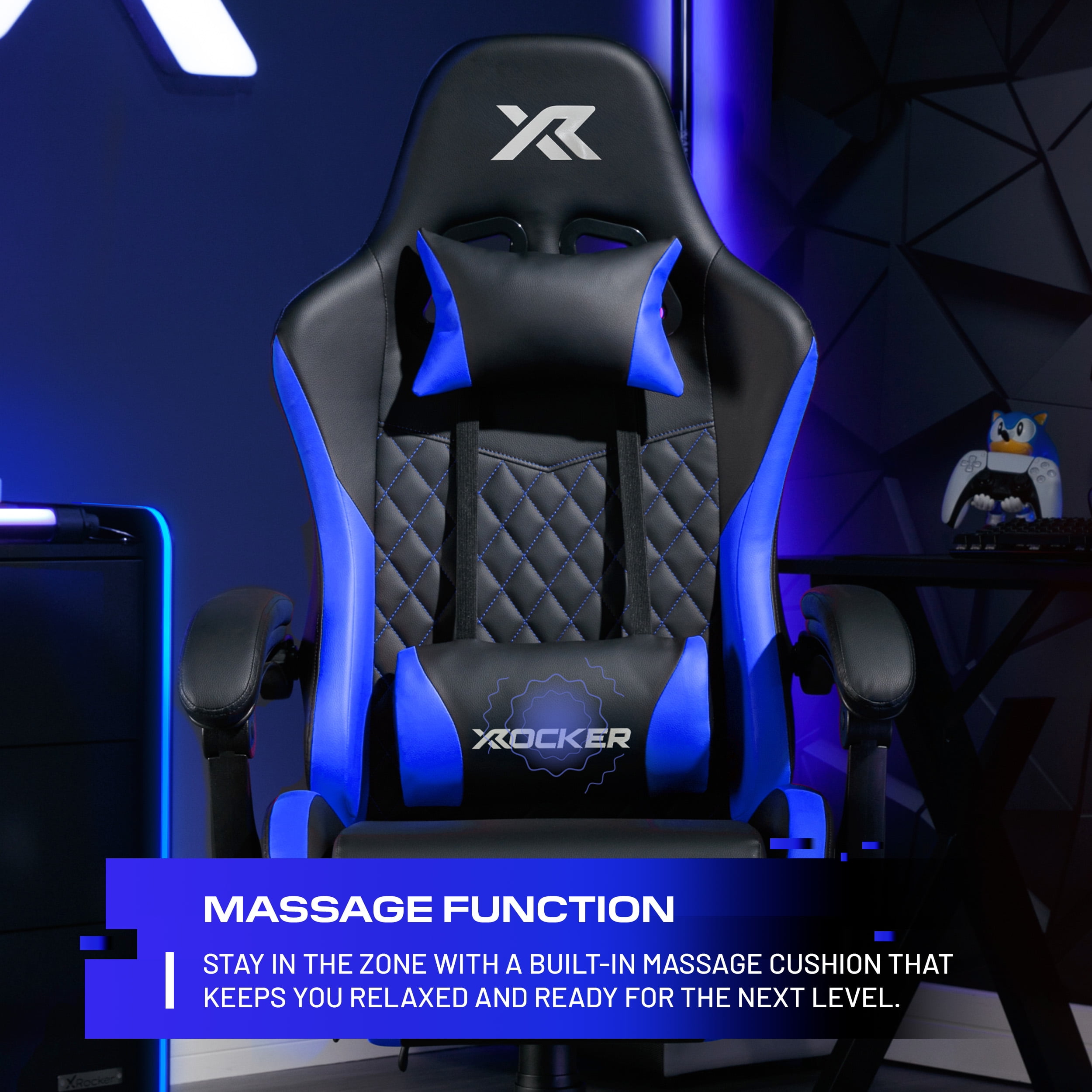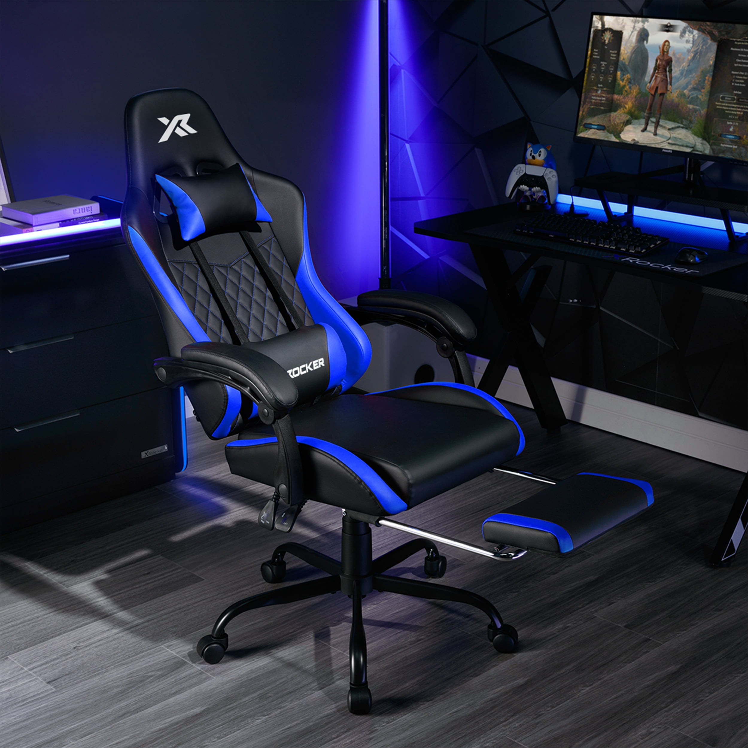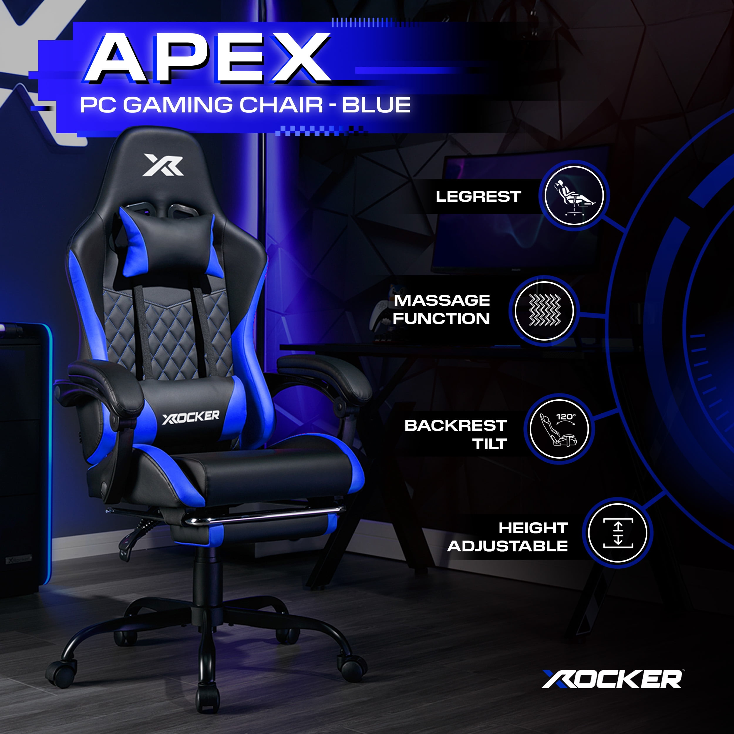 X Rocker Apex PC Gaming Chair with Massage Function and Footrest, Blue