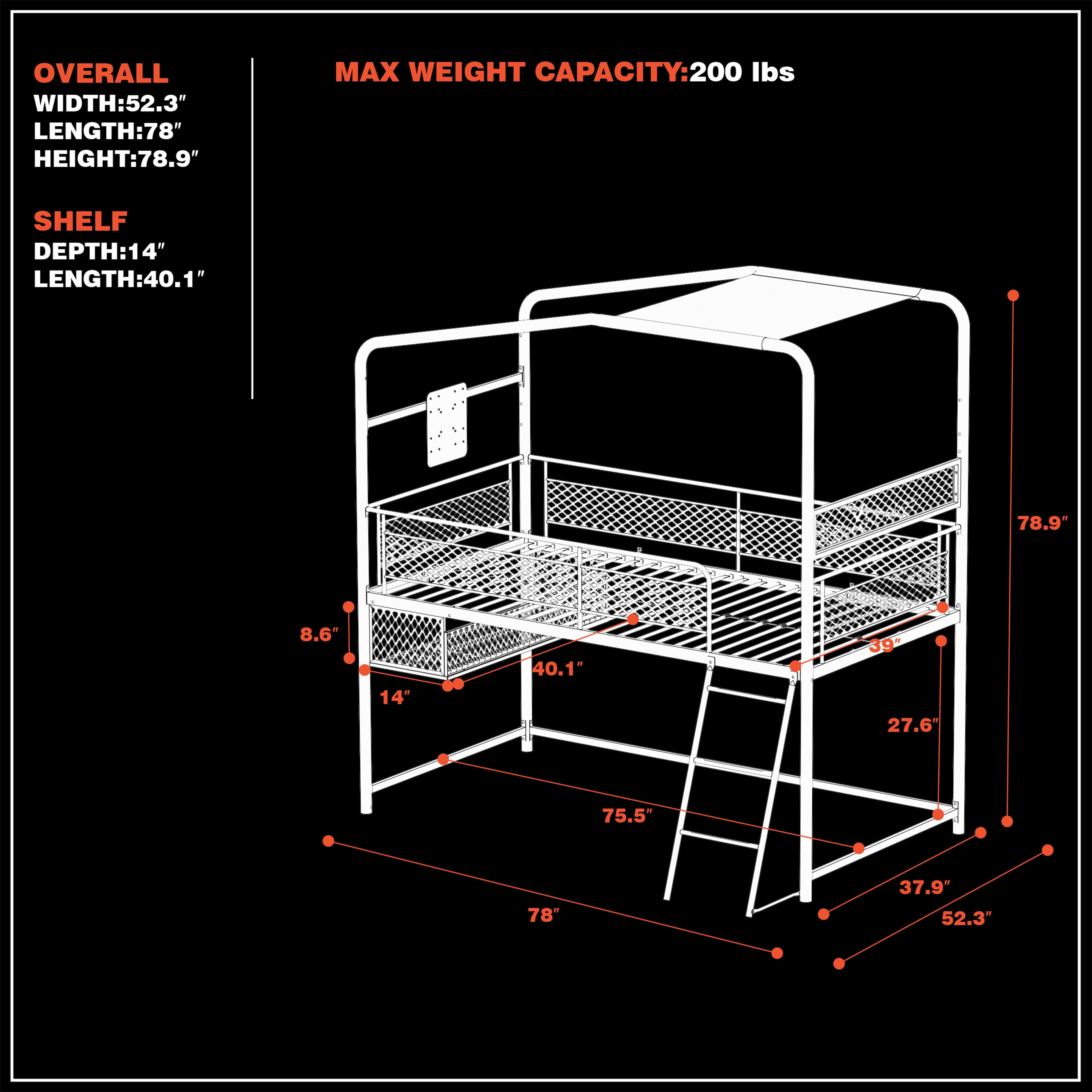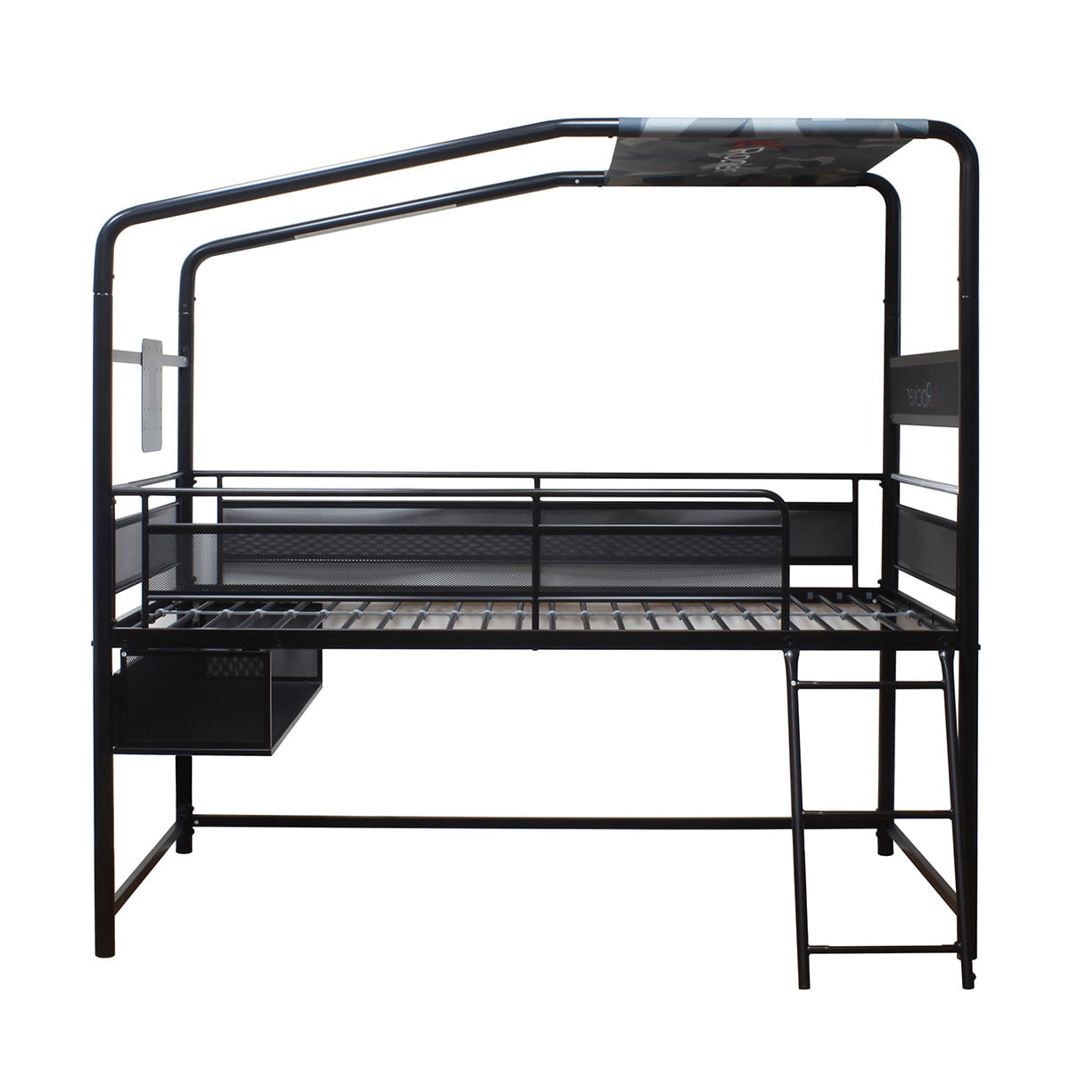 X Rocker Contra Mid-Sleeper Gaming Bed with TV Mount, Black, Twin, Children, Teen, 74.88 H