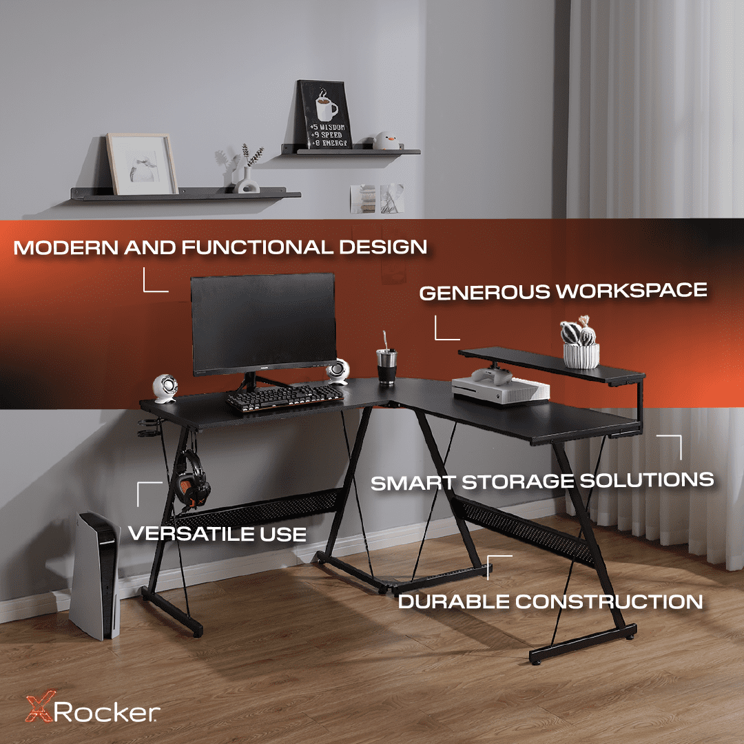 X Rocker L-Shaped Gaming Desk with Storage Shelves – Black
