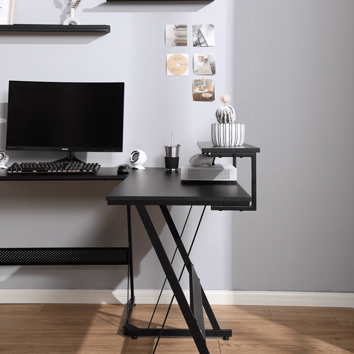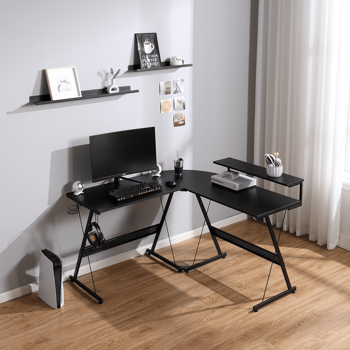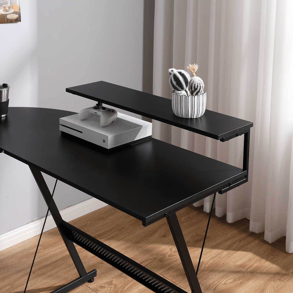 Generous Workspace: The L-shaped design offers a wide, uninterrupted surface, giving you plenty of room to spread out your work, monitor setups, or creative projects. Enjoy the freedom of movement and organization with a desk that accommodates all your needs. Smart Storage Solutions: Stay organized with built-in storage shelves that keep your office supplies, books, and personal items neatly arranged. Provides easy access to frequently used items and helps reduce desk clutter for adults, teens, and kids. Modern and Functional Design: Our desk features a sleek, contemporary design that complements any décor. The clean lines and stylish finish make it a standout piece in any room, blending seamlessly with your existing furniture. Durable Construction: Crafted from high-quality materials, this desk is designed for durability and long-term use. The sturdy frame and robust surface ensure that your desk remains stable and reliable, even during the busiest workdays. Versatile Use: The L-shape allows you to customize your workspace according to your needs. Use one side for your computer and the other for paperwork, or create separate zones for different activities—whatever suits your workflow best.