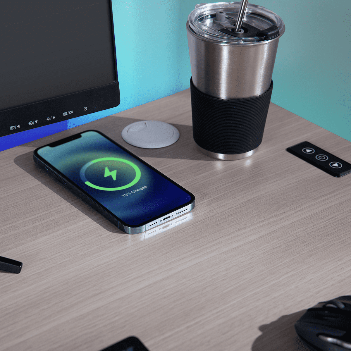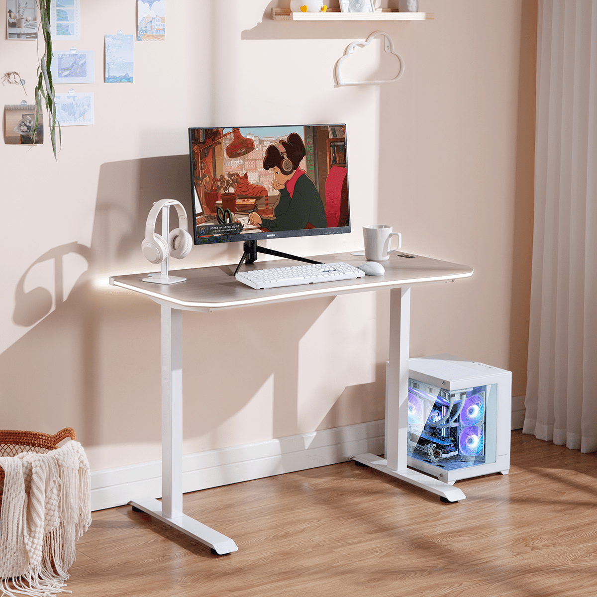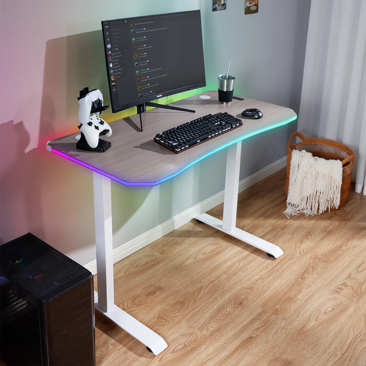 Customizable LED Lighting: Four-sided RGB lighting allows you to adjust colors and effects to match your gaming setup. Wireless Charging: Stay connected and powered up with the built-in wireless charging feature. Simply place your compatible devices on the designated charging area to eliminate cable clutter and keep your smartphone or tablet charged during intense gaming sessions. Modern Design: Features a sleek white and light wood finish that complements any adult or teen gaming or study area. Perfect for Any Space: Versatile design and lighting options make it ideal for both gaming and study areas. Stylish and Functional: Perfect blend of aesthetics and utility for a contemporary look in your gaming space.
