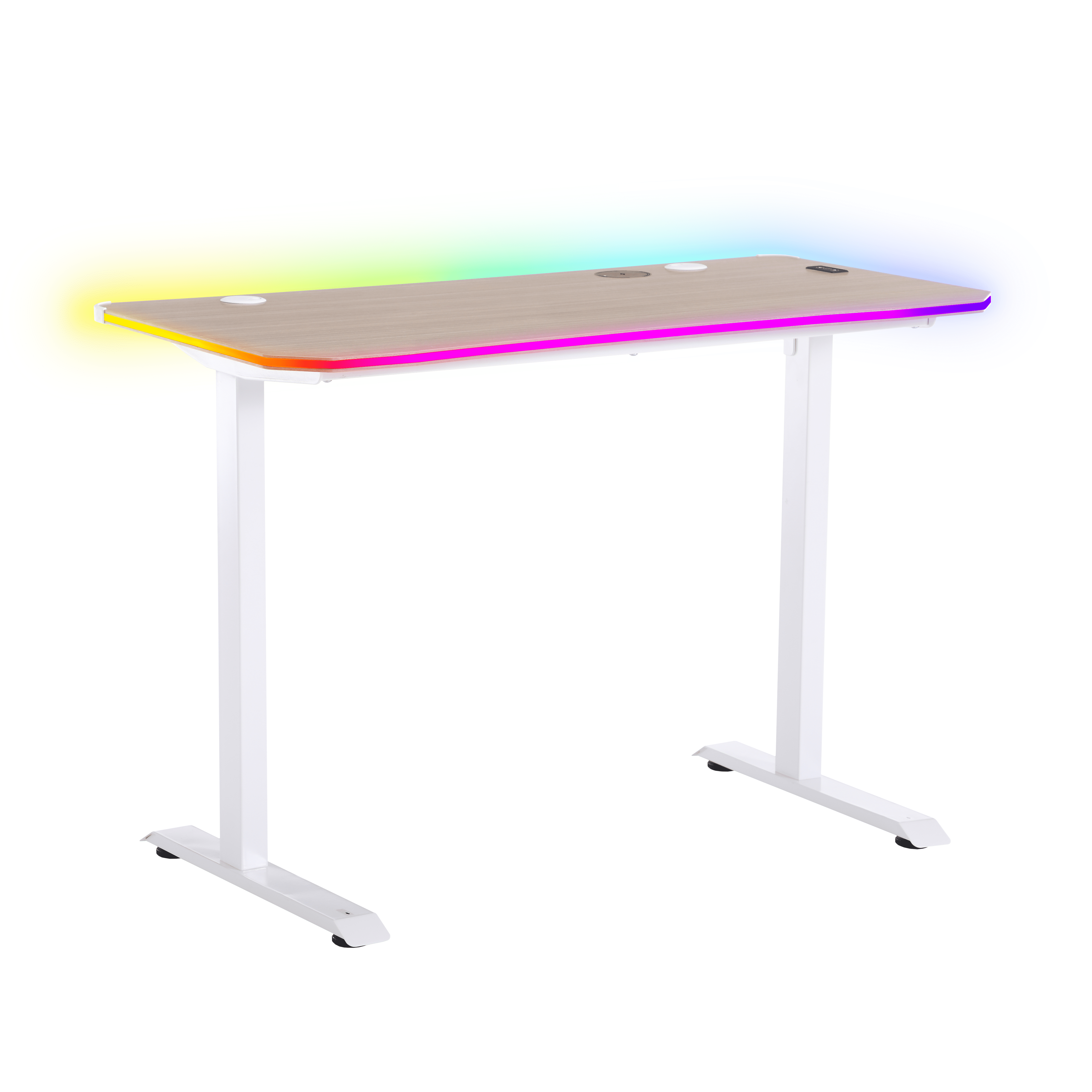 X Rocker Oka Adult Gaming Desk with RGB Lighting, White/Light Wood