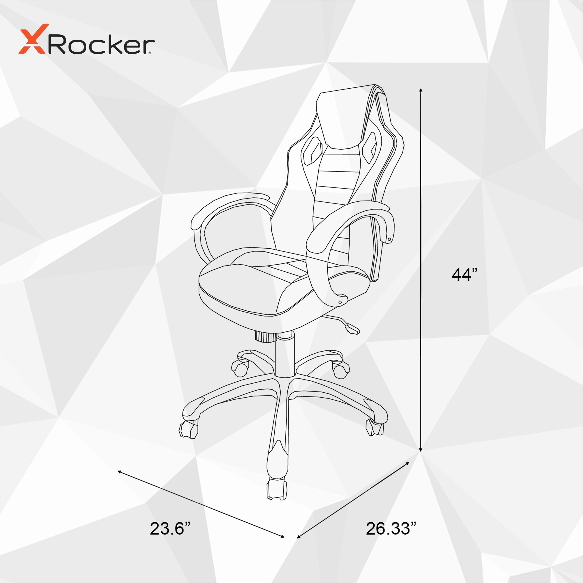 X Rocker Classic Rogue Sound Office Chair is a stylish, racing inspired office chair that matches form with functionality. This chair incorporates a stereo audio system that is built in the headrest and controlled by our rechargeable 2.0 Bluetooth control panel for an un-tethered audio experience. The Sound Office Chair sits on a height adjustable gas lift with a generously padded, faux leather finish. The perfect touch to any gaming room or office with a modern style to match with virtually any decorating style. Measures: 25.6 x 23.62 x 43.5.