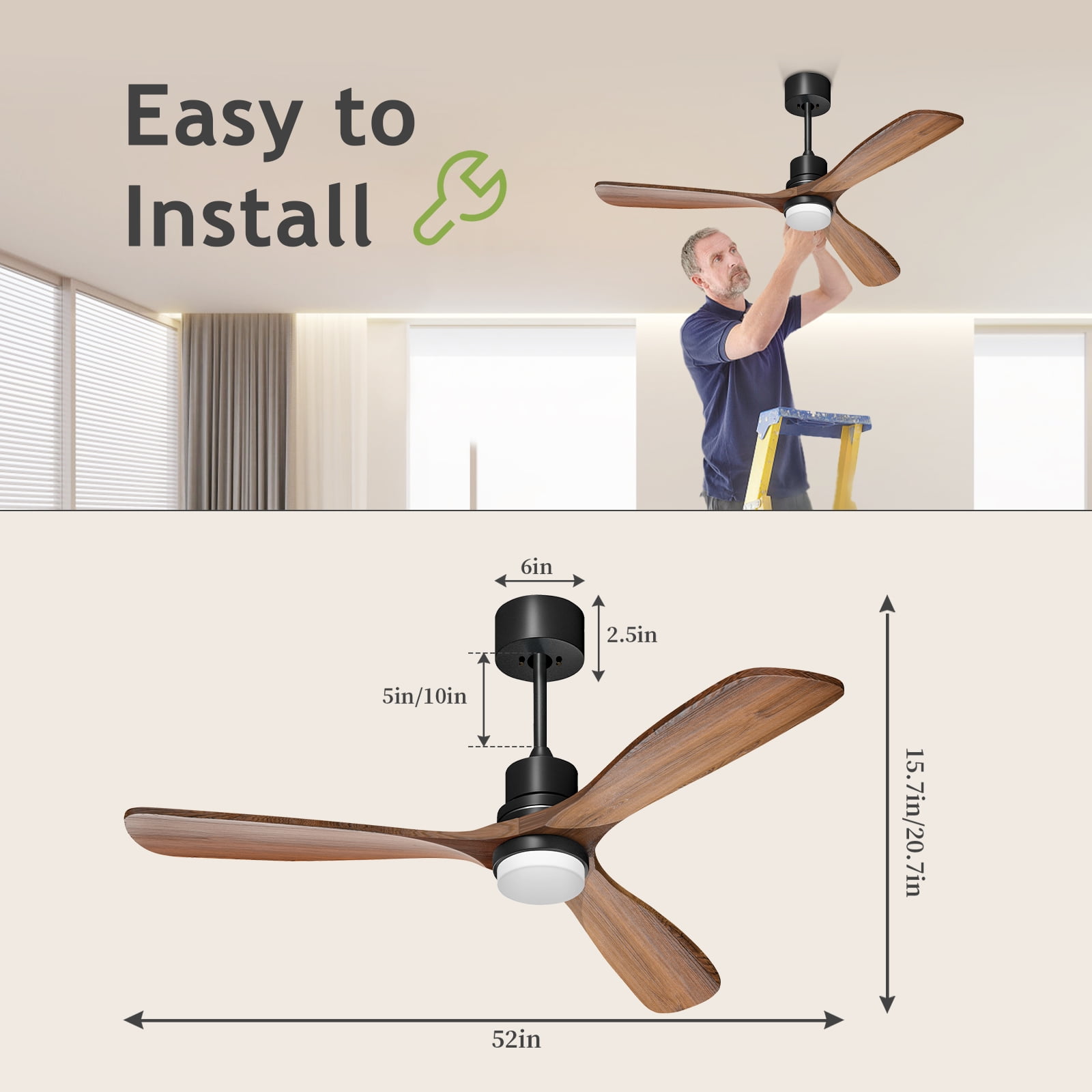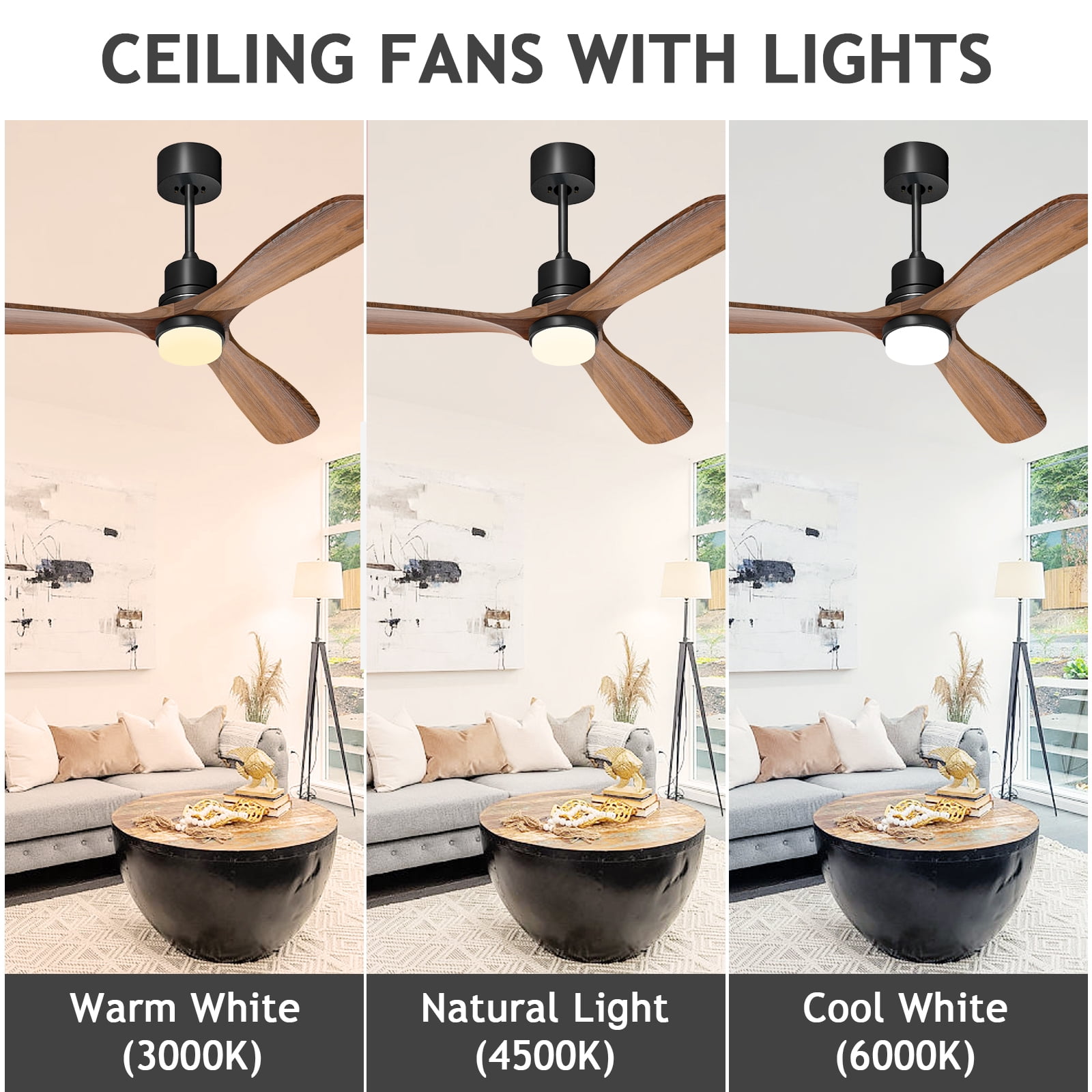 XAUJIX 52” Ceiling Fans with Light and Remote Control, Flush Mount Ceiling Fan 6-Speed Reversible Airflow 3 Wood Fan Blades
