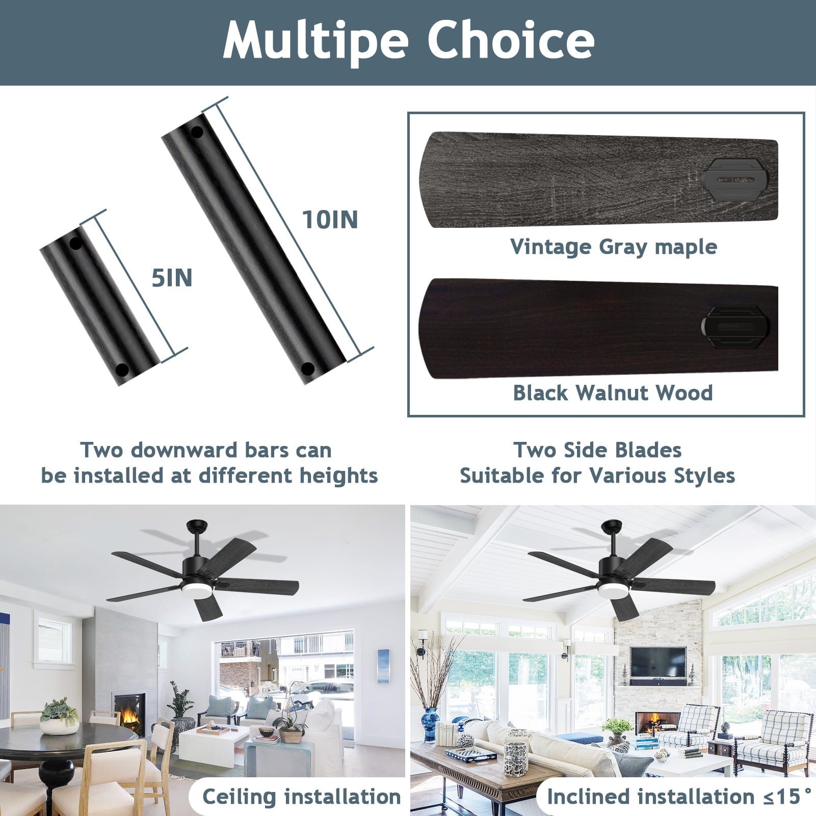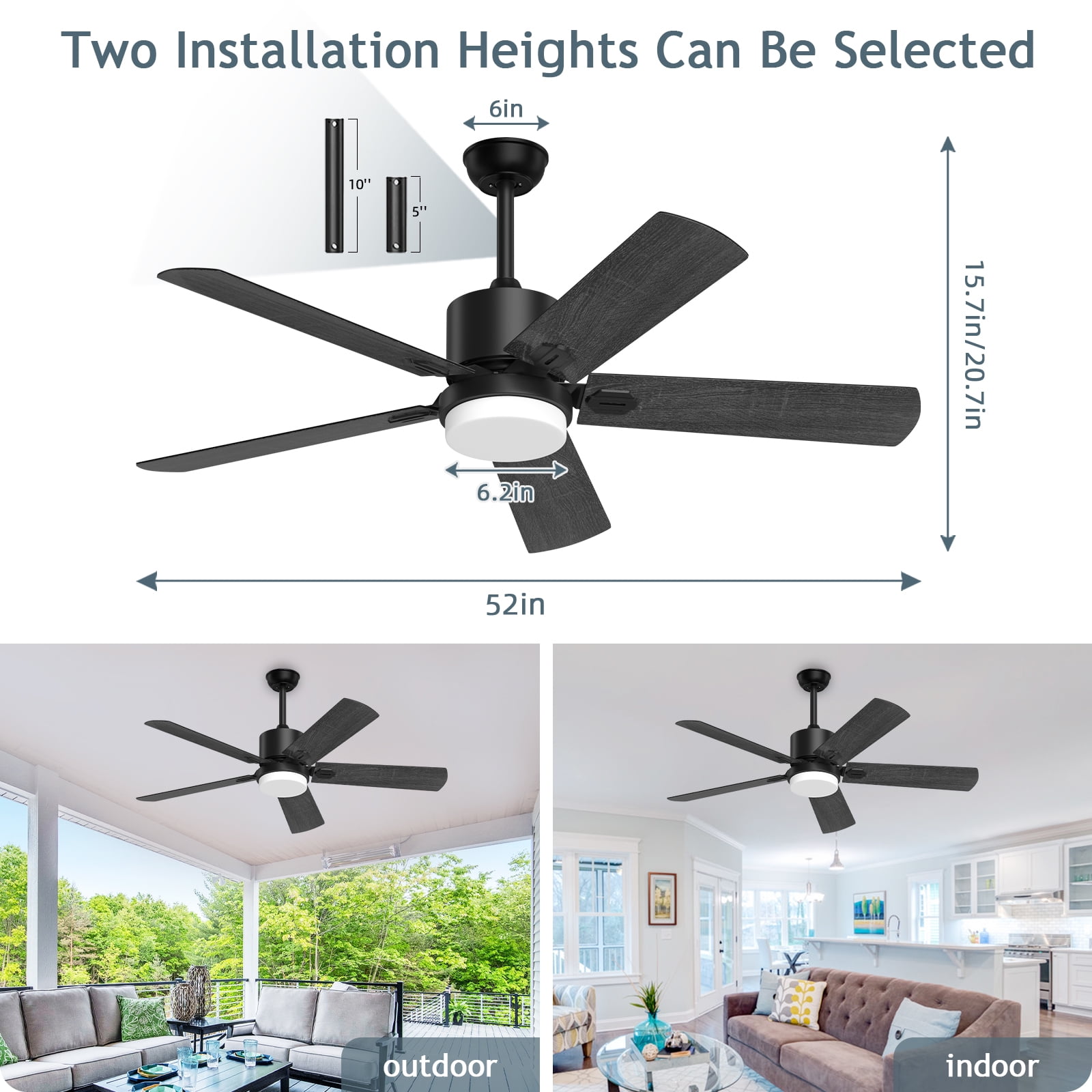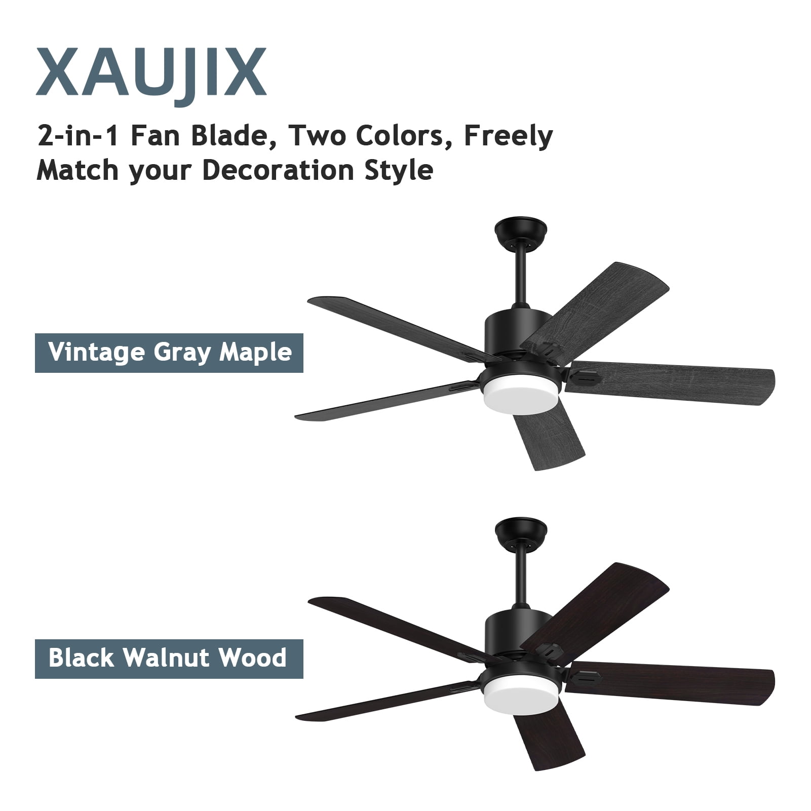 XAUJIX Ceiling Fan with Light and Remote Control, 52” Black Ceiling Fan with Light, 6-Speed Reversible DC Motor, 5 Wood Fan Blades