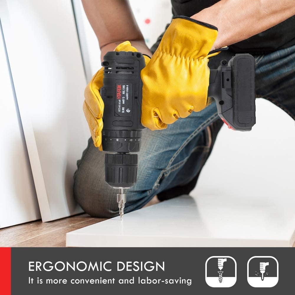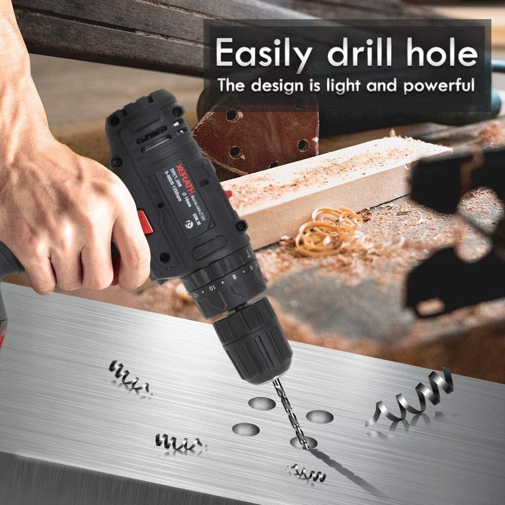 【Proudly Present XERATH Battery】It’s guaranteed that the life expectancy of each XERATH battery is at least 1,000 cycles. Stop worrying about dying batteries or batteries that won’t charge after minimal usage. XERATH’s got your back! 【21+1+1 Clutch & 2 Variable Speed】Equipped with 3 functions, screwdriving, drilling and impact drilling, this 2 variable speed (0-350RPM, 0-1350RPM) 21+1+1 clutch Drill Driver is your no.1 helper for your precise work around the house. Whether it’s household reconstruction, renovation, garden work or garage repairs, consider getting this XERATH drill as an one-stop solution. 【All Copper Motor & MAX 330 In-lb Torque】XERATH Cordless Drill features an All-Copper Motor that ensures stable operations and is much lighter, cooler and more efficient than aluminum motor drill drivers. Maximum 330 in-lb torque is ideal for drilling through or screwing in wood, metal, and plastic, fulfilling a wide range of needs. 【Compact, Lightweight 2 lbs Design, Built-in LED & Reverse Control】Compact (7-in front to back) design fits into tight areas, ultra lightweight (2.2-lb) minimizes user fatique. Comes with built-in LED light for increased visibility in enclosed work spaces or any dark environment.The forward/reverse switch allows screws to be removed or replaced once they are secured. 【46 piece Accesory come with XERATH Drill Driver Kit】Get your XERATH power kit without worrying about purchasing other accessories, XERATH Drill/Driver Kit includes 3 Brad Point Drill Bits, 6 Twist Drill Bits, 33 screwdriver bits, 3 Nut Driver Bits, 1 Carrying Bag, 1 Fast Charger, 1 Battery. We are confident that our docking are manufactured under strict quality standards to give our customers best experience.