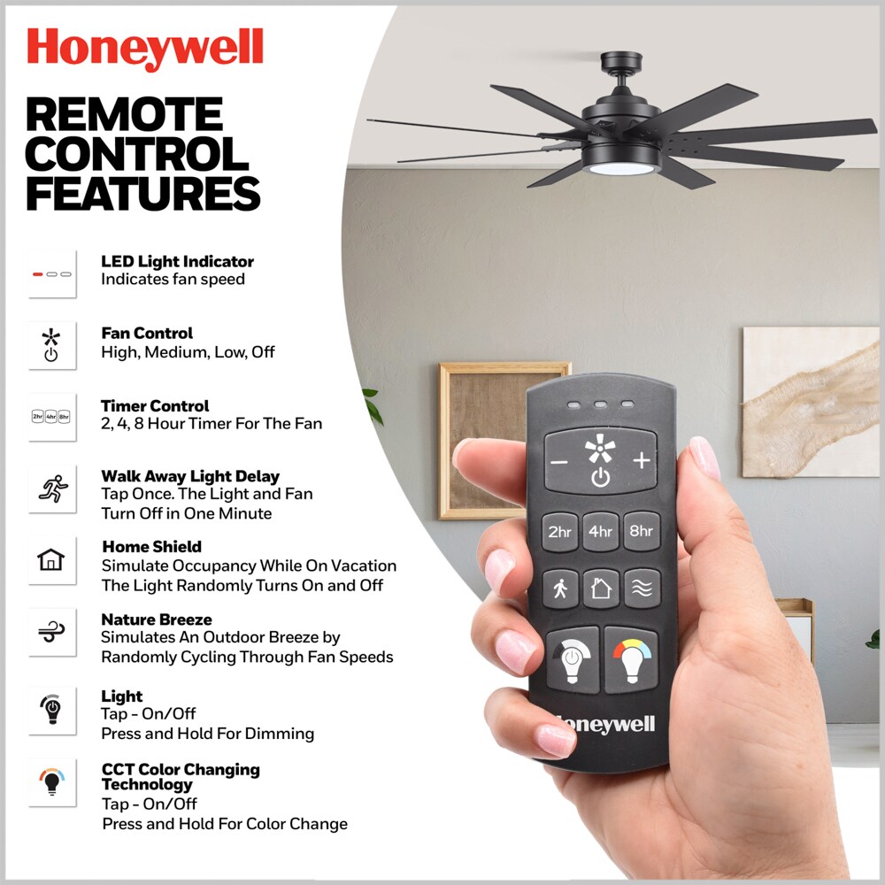 Honeywell ceiling fans make your home comfortable in summer (and winter) as well as help to reduce energy costs. This 62 inch dual mount indoor ceiling fan with lights and remote control is a style chameleon, fitting naturally into a range of décor styles including modern, contemporary, farmhouse, industrial, and more.