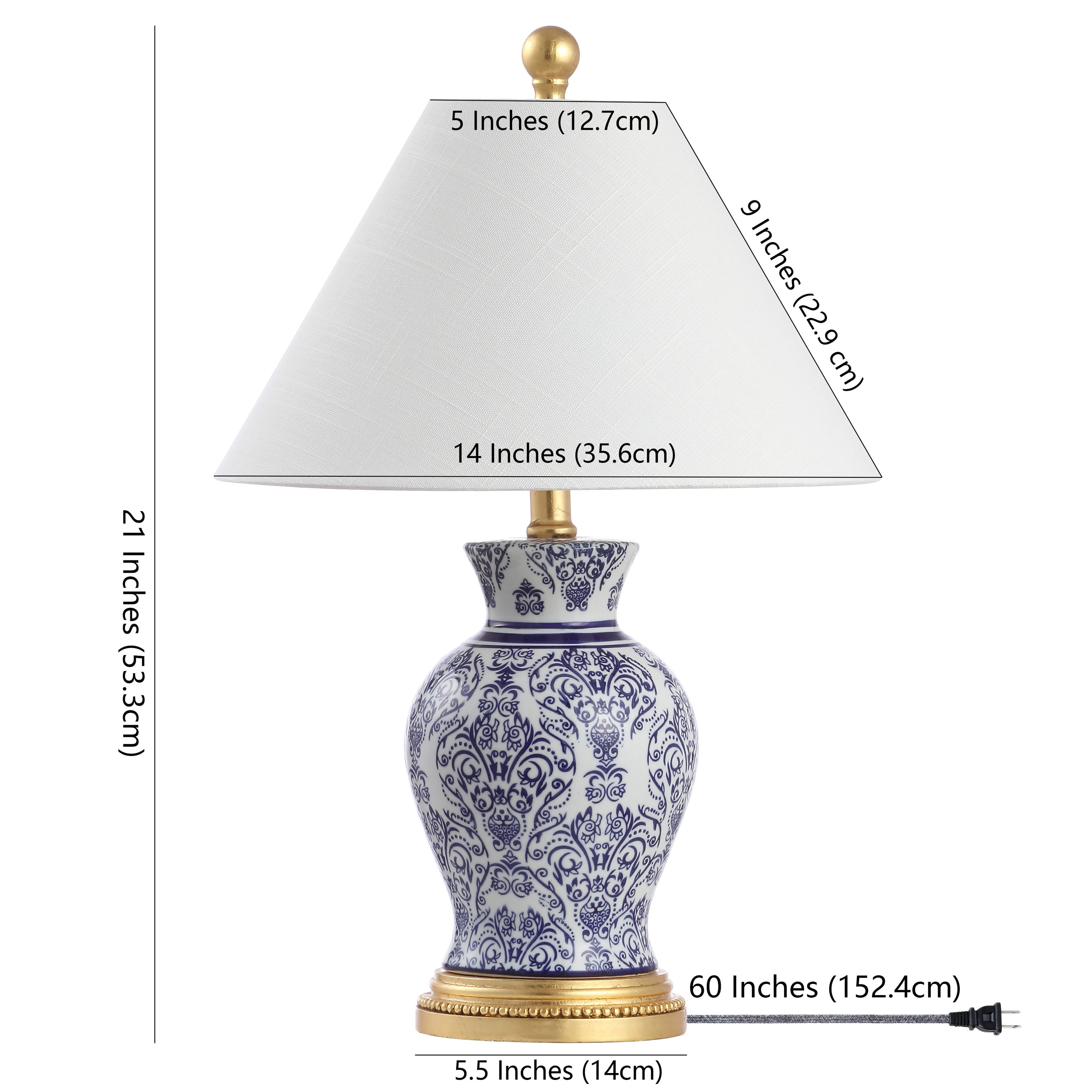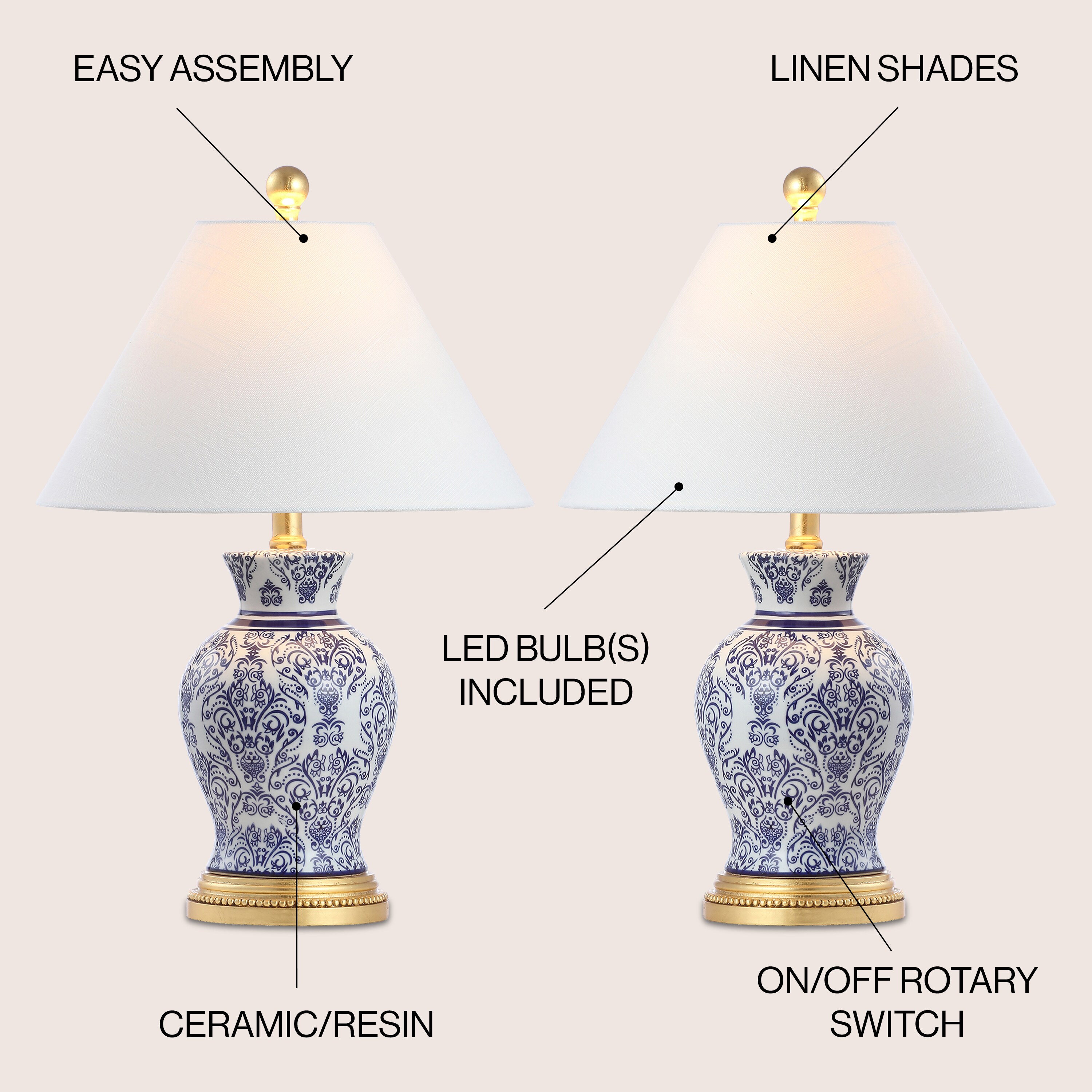Xia Chinoiserie Classic Modern Floral Ceramic/Iron 21-in Gold Leaf LED Rotary socket Table Lamp with Linen Shade