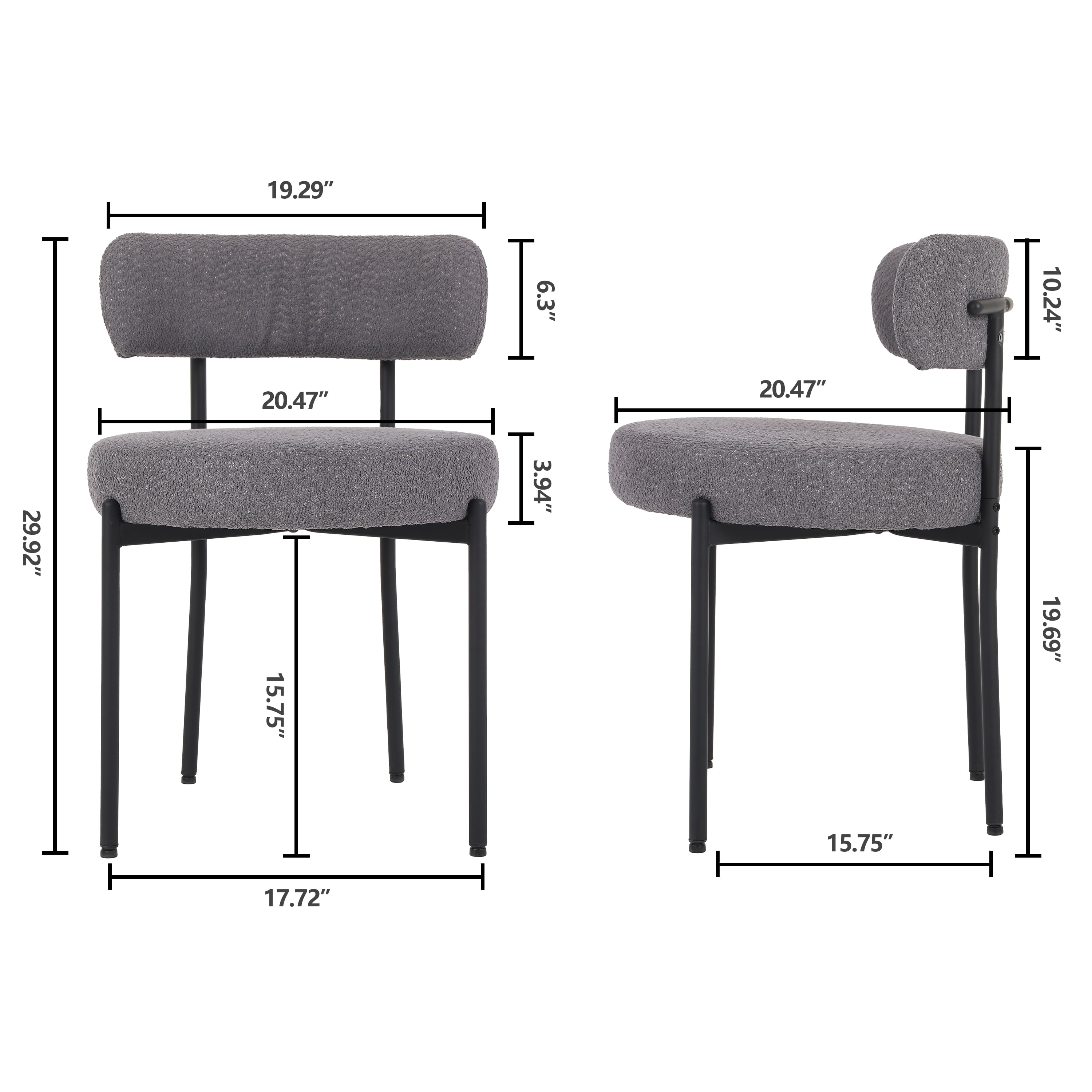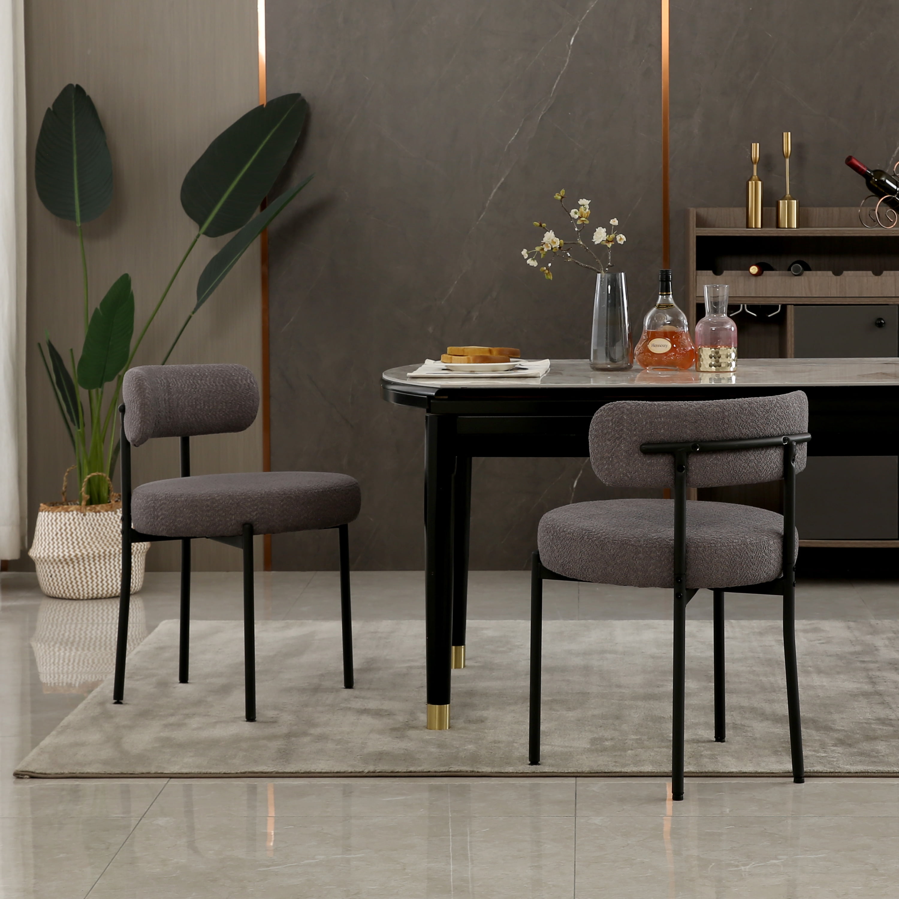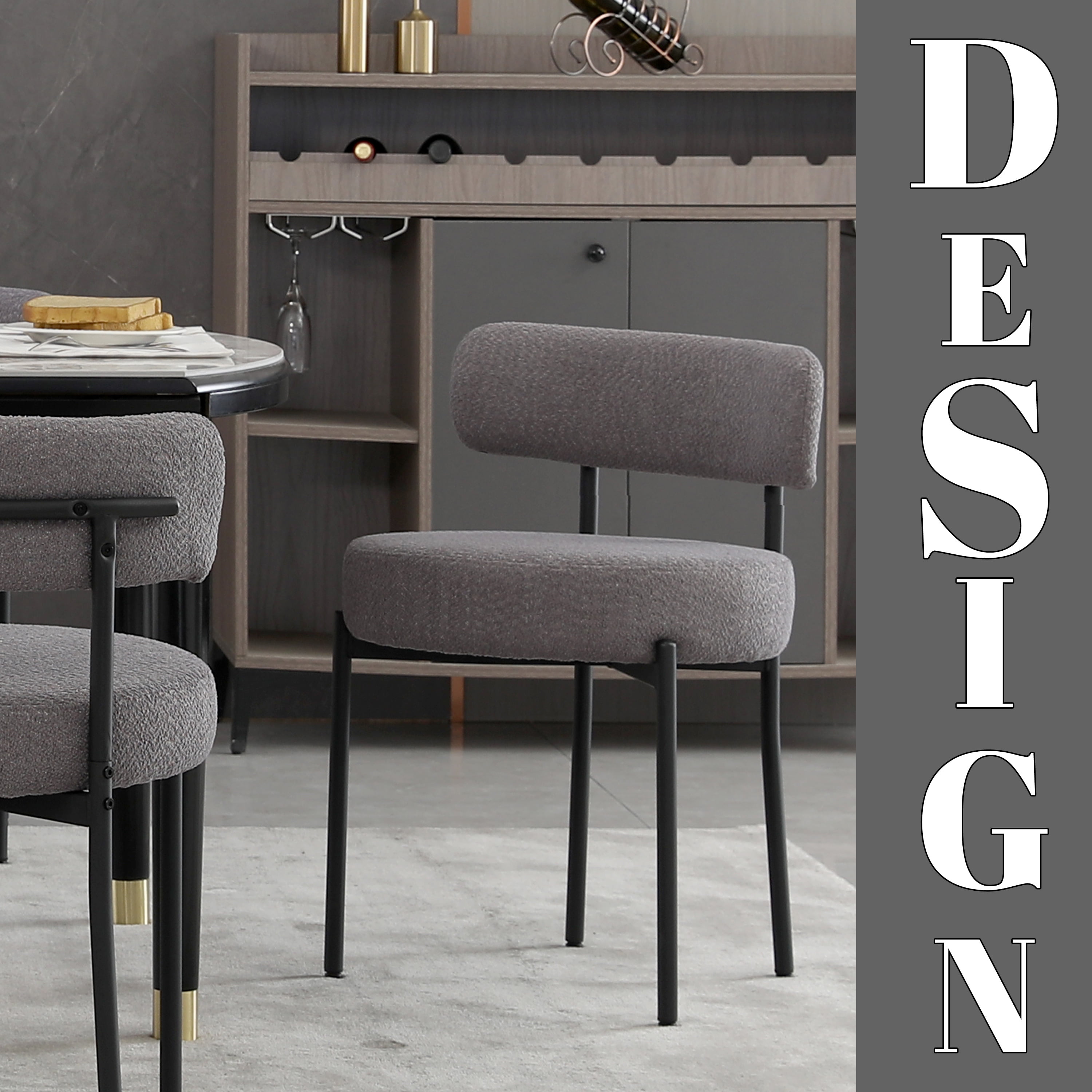 XINMICS Boucle Dining Chair Set of 2 Modern Kitchen Chairs, Dark Gray