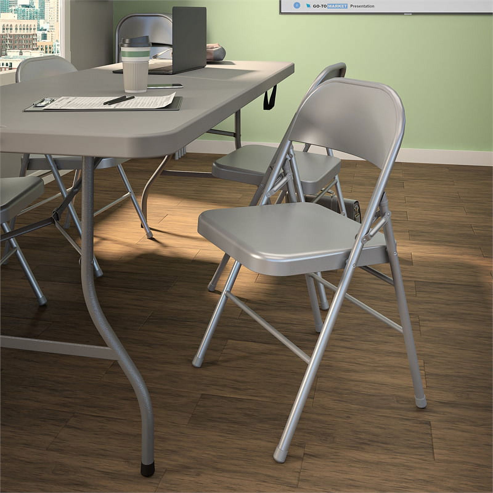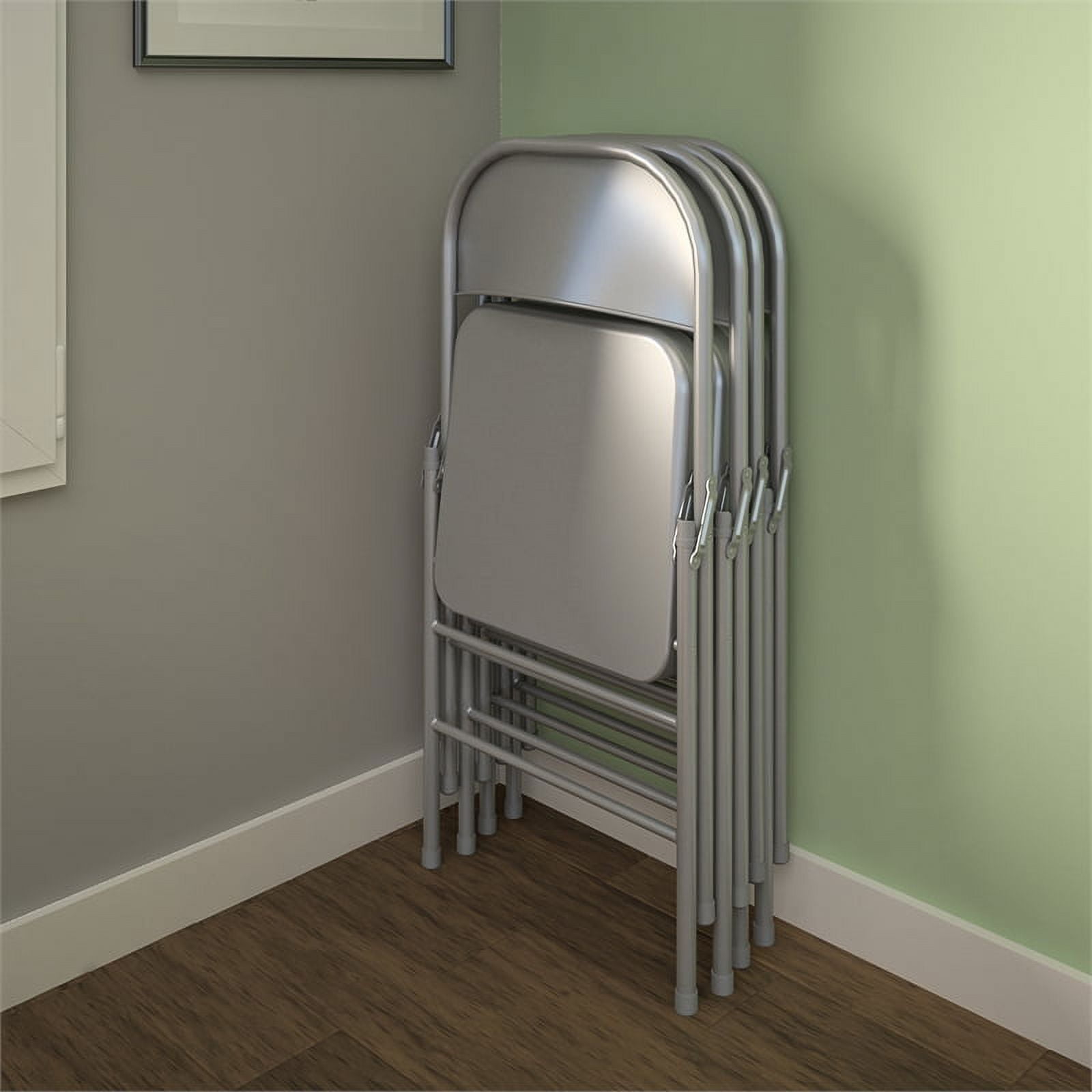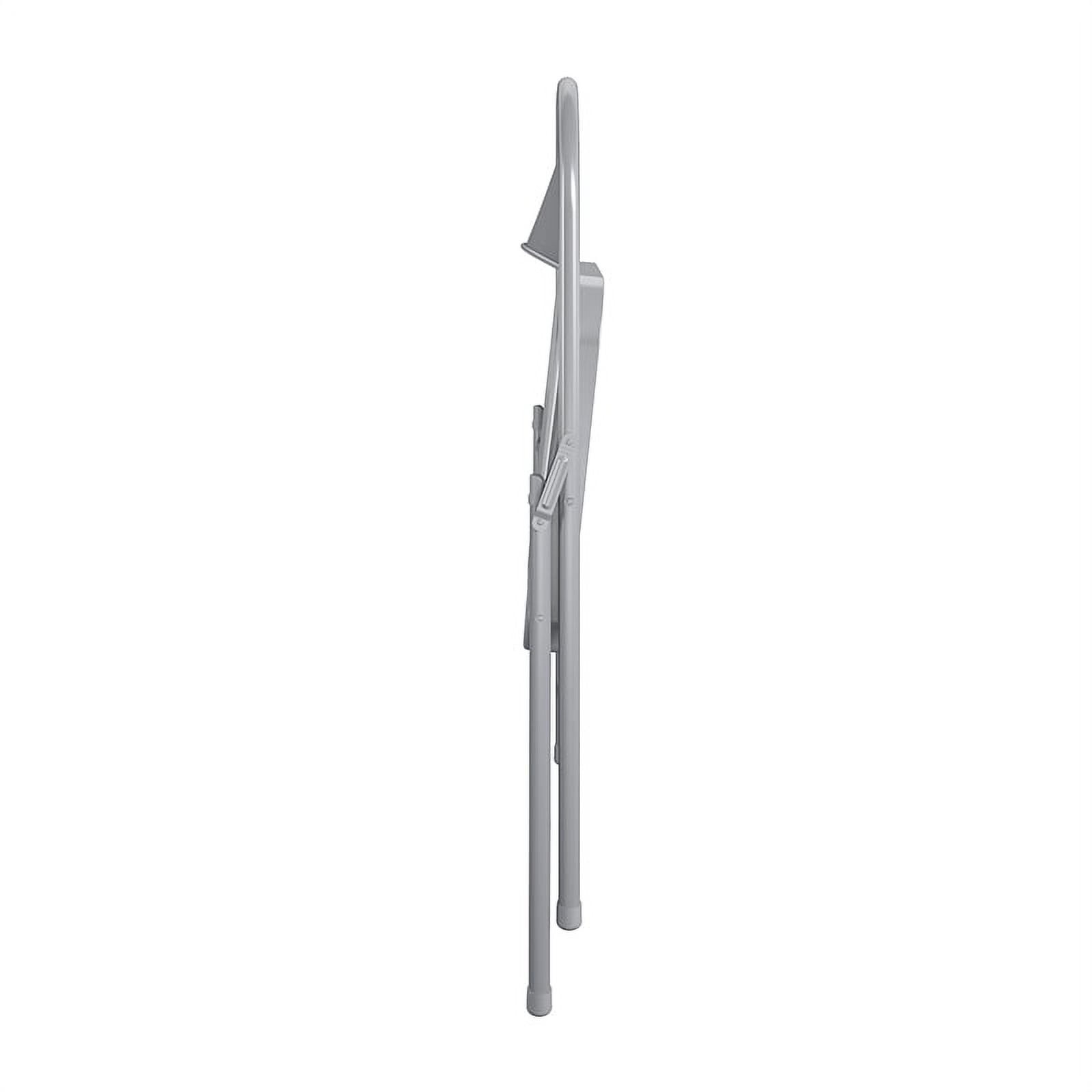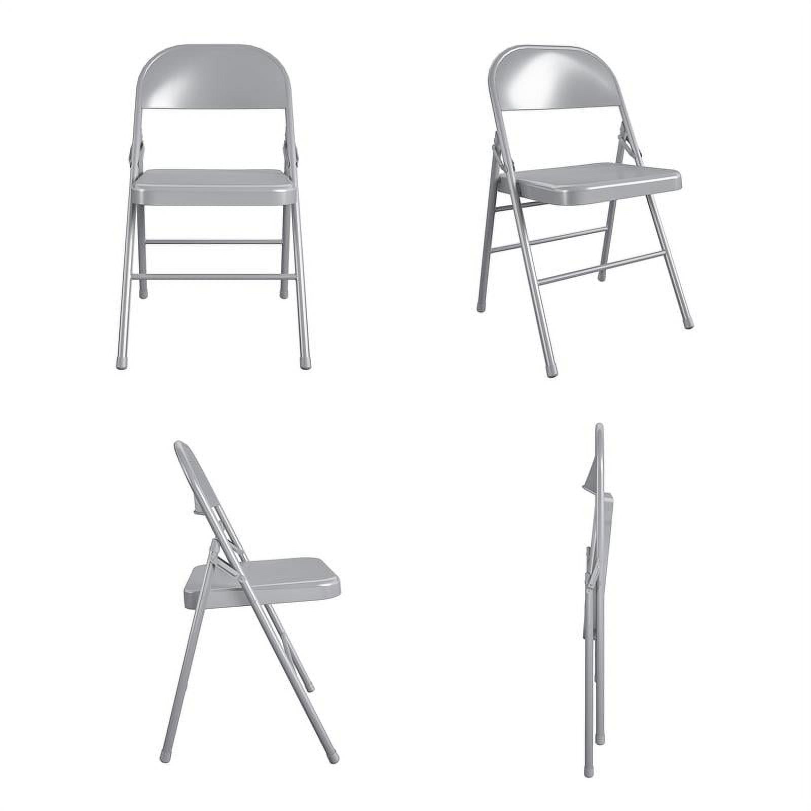Viable solution to a multitude of seating needs such as seating for birthday parties, get-togethers, or dining room seating Commercial Grade: Durable all steel frame with powder coated finish. 16.9″ x 16.9″ seat pan is 16% larger than standard size chairs Compact and portable, easy to store Features non-marring foot caps to prevent scratching or damage to floor surfaces Designed to be trend right featuring a neutral gray color powder coating Contoured seat back offers all-day comfort while seated Commercial rated to meet a 300 lb. distributed weight capacity Comes standard with a 10-year, limited warranty