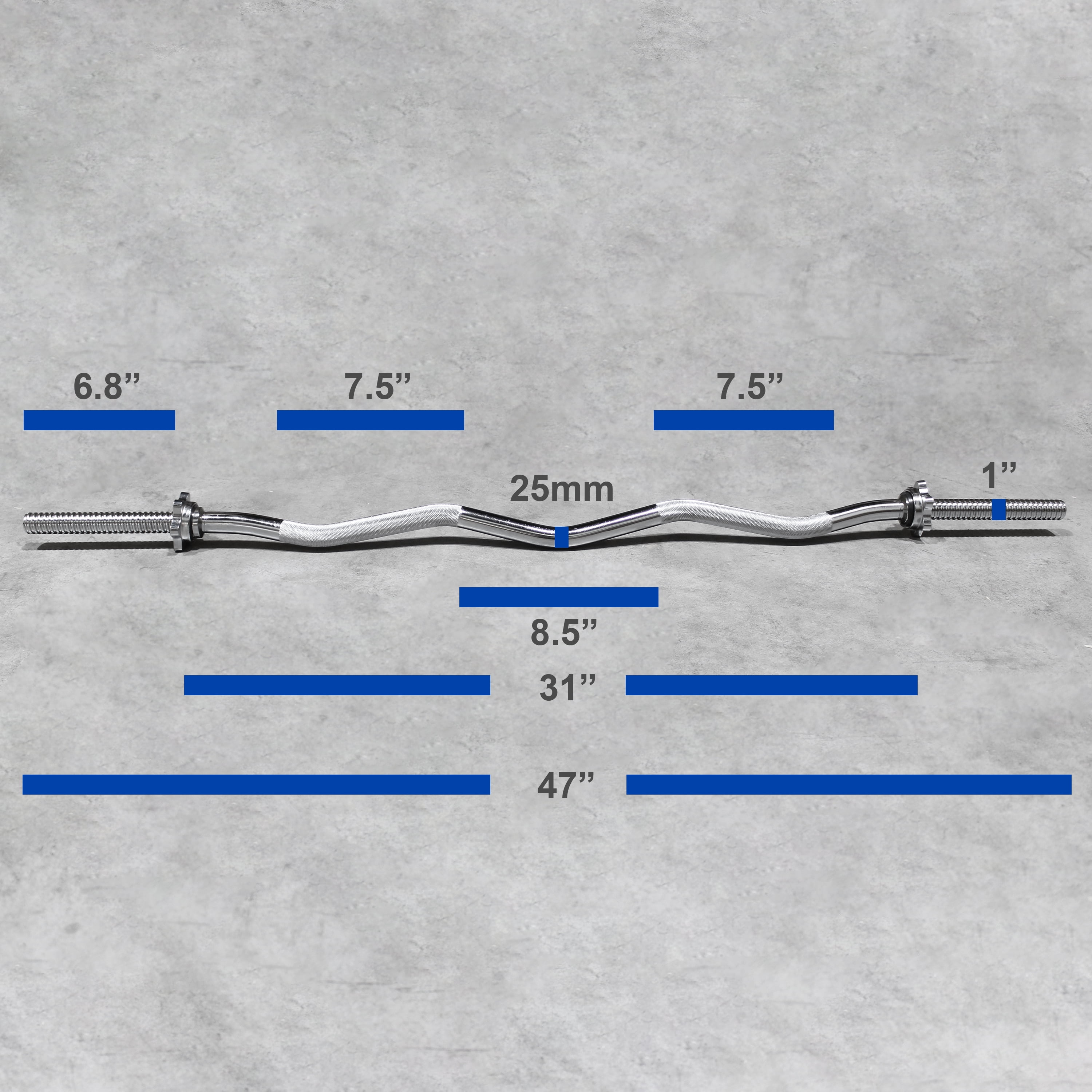 Finish: Chrome Shaft Diameter: 25 mm Diamond knurled grips Weight: 10.5 lbs Weight Capacity: 350 lbs