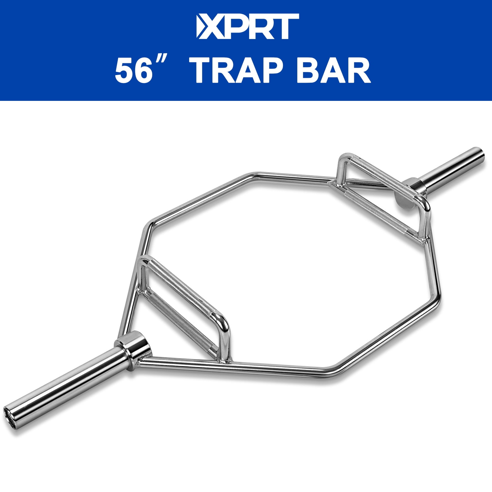 XPRT Fitness 56’’ Olympic Trap Bar is made from heavy-duty solid alloy steel and chrome-coated to reduce rust issues. Combined neutral and raised grips are ideal for squats, deadlifts, and other weightlifting training purposes. Chrome coated.