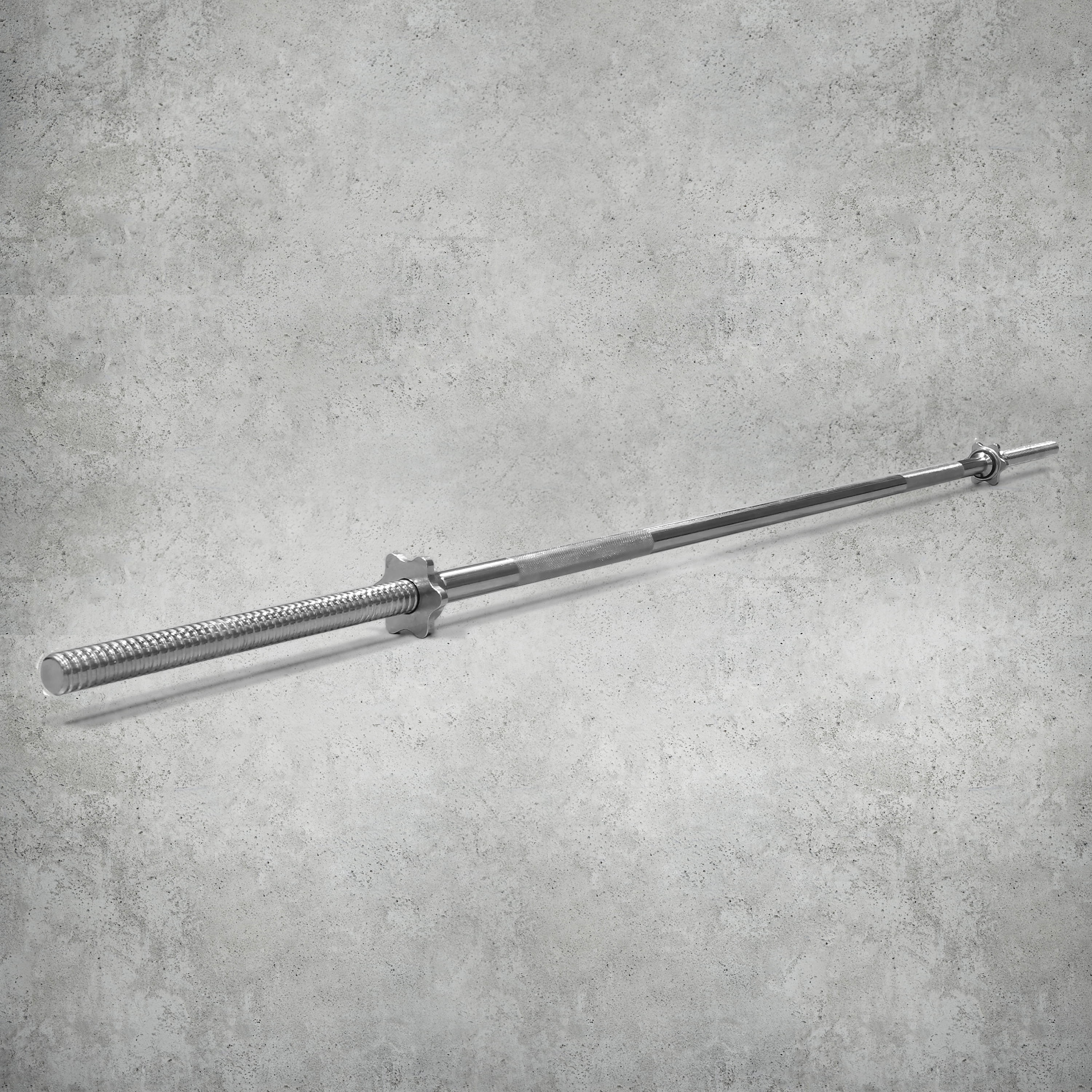 Accommodates weight plates with 1-inch center hole Made with solid chromed steel Knurled for better gripping Threaded ends for faster spin locking to change weights and lock quickly and securely A pair of chrome spinlock collars are included Material: Solid Steel Finish: Chrome Weight: 16 lbs Capacity: 350 lbs Dimensions : 72′”/6 FT Ideal for home gyms and garage gyms to perform weightlifting, strength training, squats, etc.