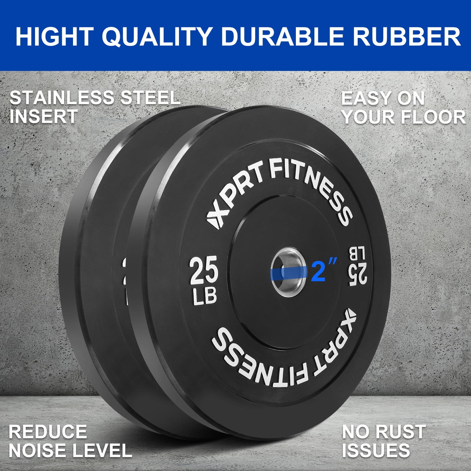 XPRT Fitness Olympic Plates, 17.70 in * 1.00 in * 17.70 in Black, 10 lb, 2 Count Available weight sizes: 10 lb, 25 lb, 35 lb, 45 lb, and 55 lb Coating material: Natural rubber for durability and protection Plate diameter: IWF standard 45 cm Collar opening: 2 inches for compatibility with standard Olympic bars Insert material: Stainless steel for low maintenance and anti-rust properties Bounce level: Low, ensuring safety during workouts