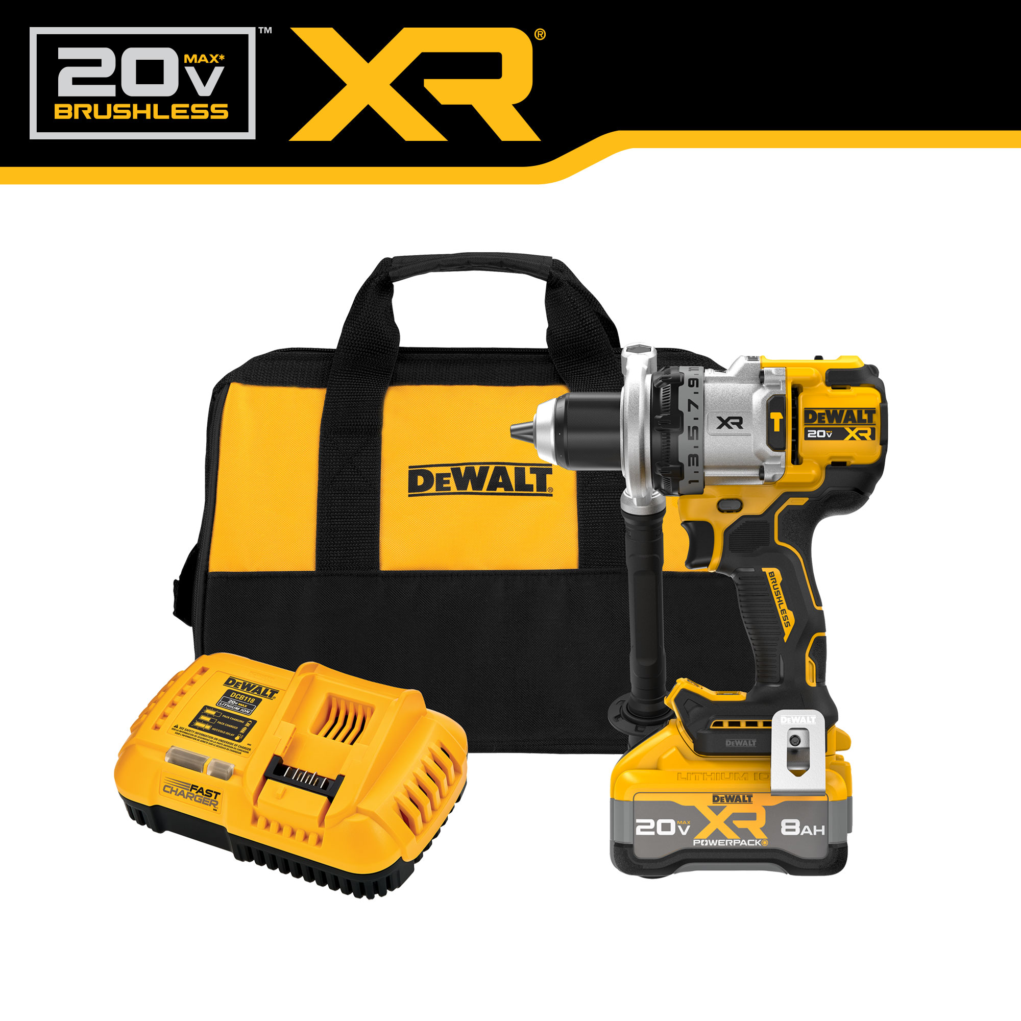 Package Contents: (1) DCD1007 XR 20V MAX Hammer Drill, (1) DCB2108 XR POWERPACK 8Ah Battery, (1) DCB118 Charger, (1) Side Handle, (1) Belt Hook