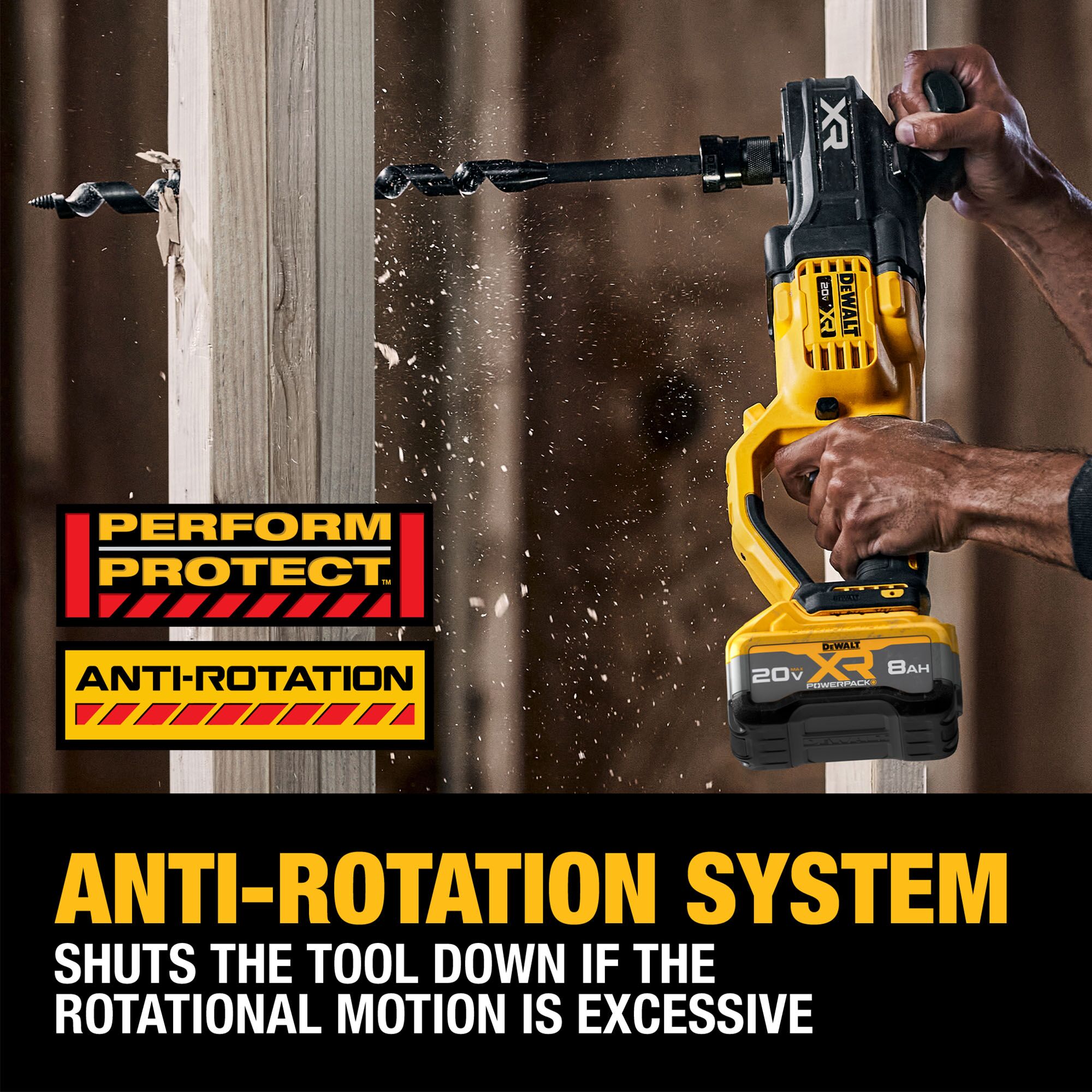 Tackle a wide range of jobs with the 20V MAX* XR® Brushless Cordless 7/16 in. Keyed Chuck Compact Stud & Joist Drill Kit. Featuring up to 1,845 Max Watts Out, the DEWALT® DCD447 using DCB2108 battery produces up to 79% more Max Watts Out vs. using DCB205 battery (sold separately). To help in tough applications, this drill comes equipped with the ANTI-ROTATION system that senses the rotational motion of the tool and shuts it down if the motion is excessive. As a part of our best performing line of 20V MAX* drills, the 20V MAX* XR® Brushless Cordless 7/16 in. Keyed Chuck Compact Stud & Joist Drill helps maximize performance on demanding jobsites.
