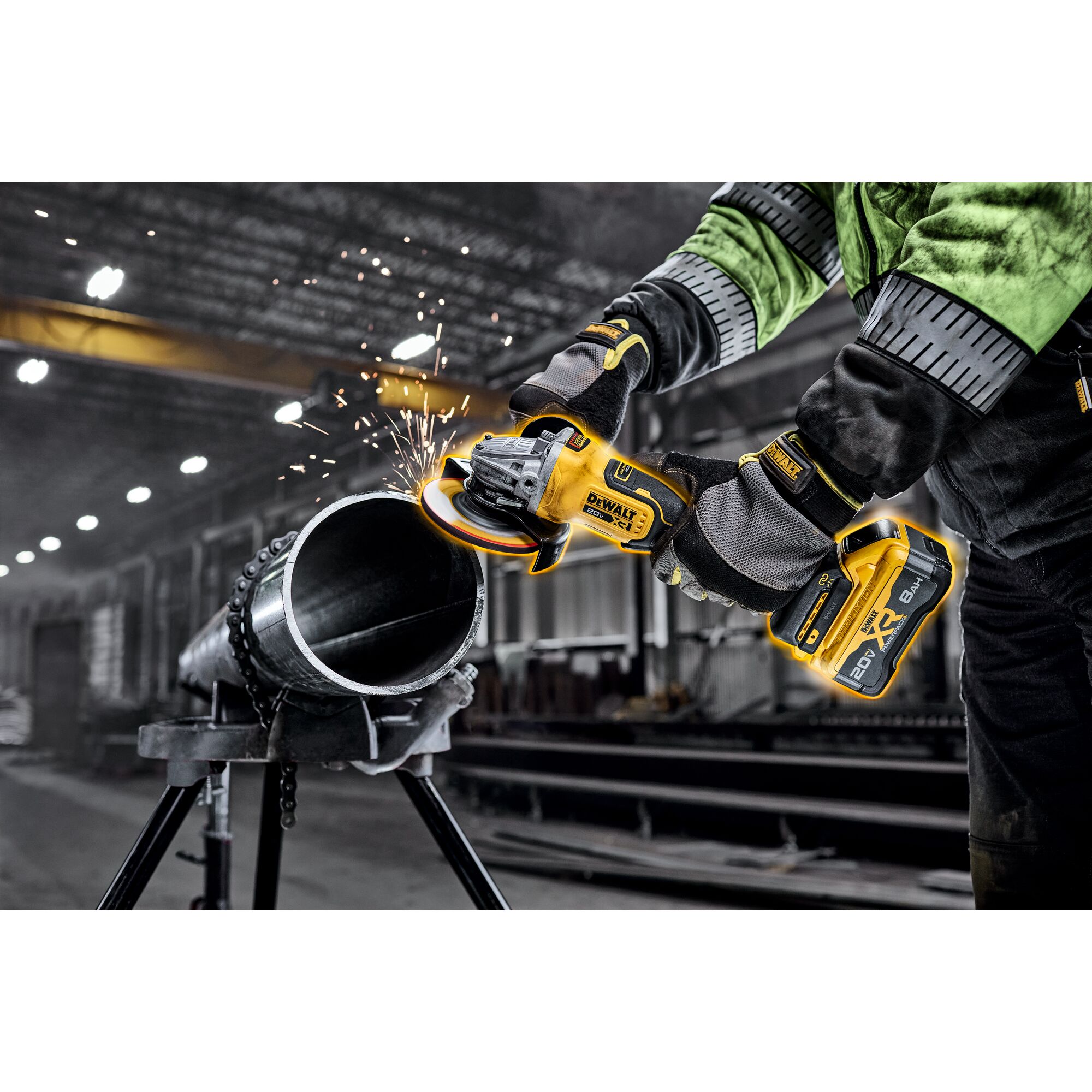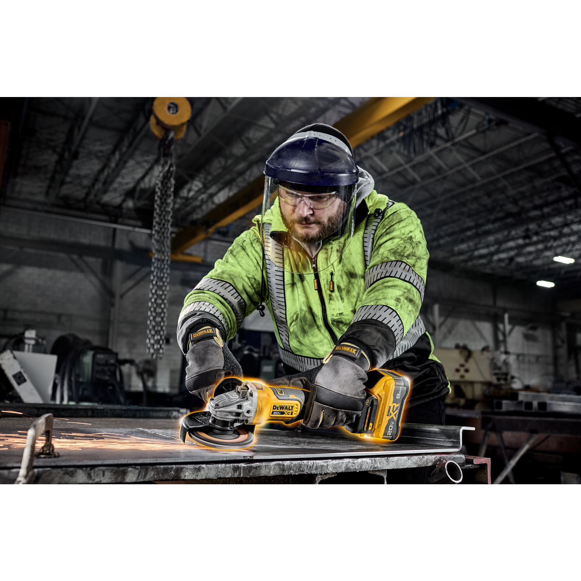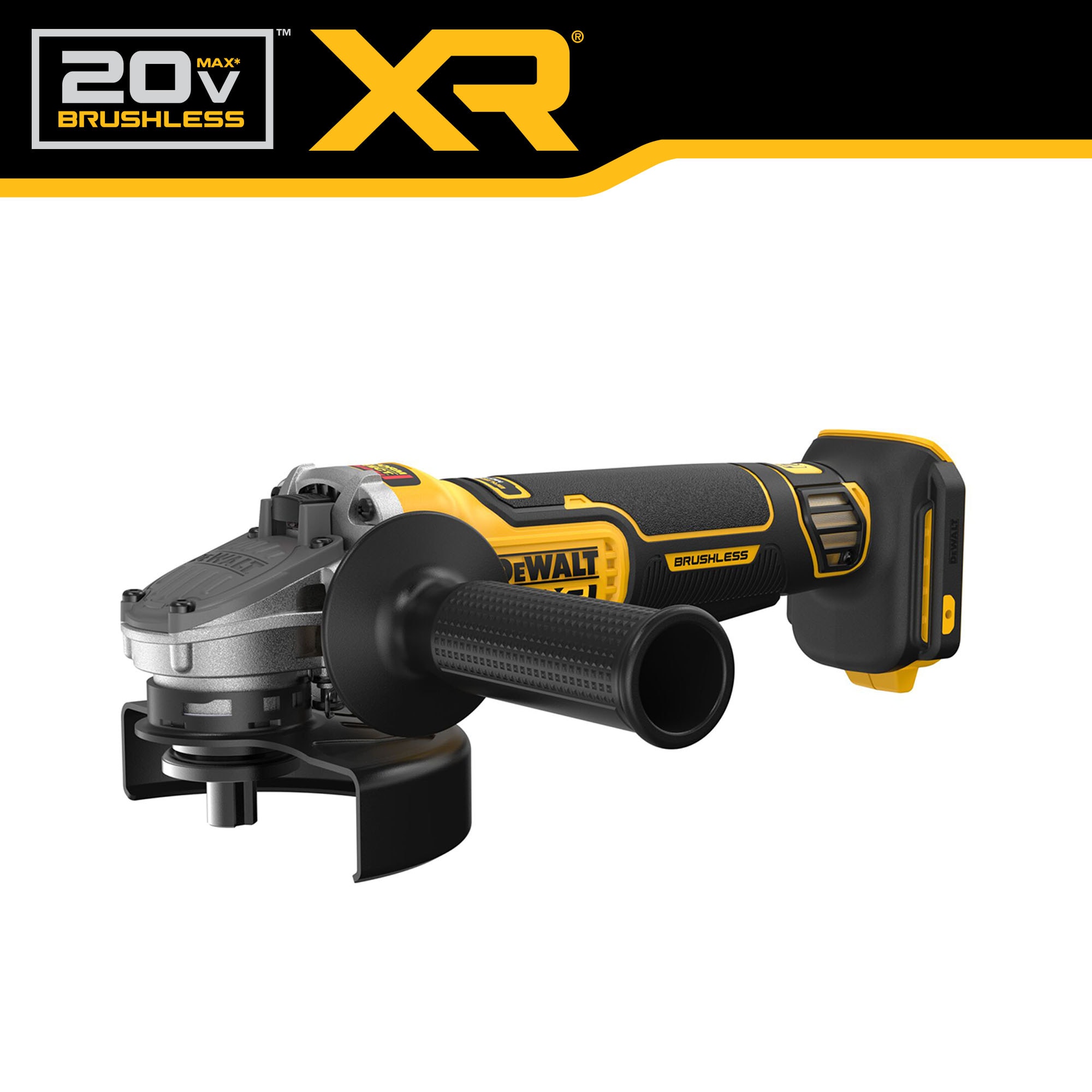 Complete a variety of applications with the 20V MAX* XR® 4-1/2 – 5 in. Angle Grinder (battery and charger sold separately). As part of our most powerful line of 20V MAX* Angle Grinders**, this tool is equipped with PERFORM & PROTECT™ features including the ANTI-ROTATION SYSTEM. Engineered with a brushless motor that delivers up to 1,590 MWO and 9,000 RPM (no load), this 20V MAX* XR® tool delivers confidence for pros who expect excellence. Battery and charger sold separately.