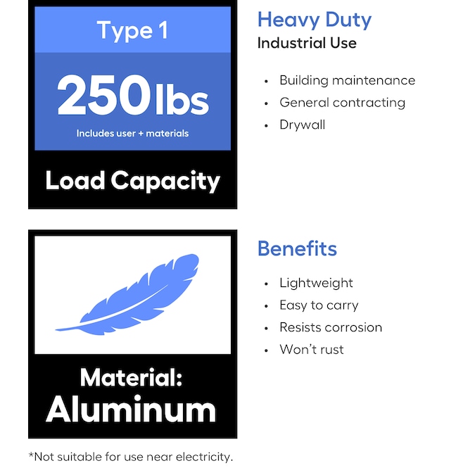• ANSI Certified Type 1- 250-lbs Heavy Duty Rating