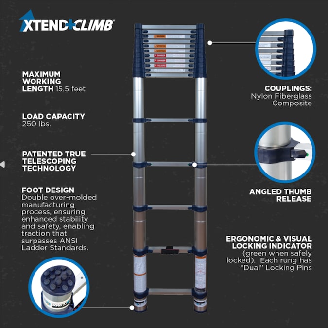 - ” True Telescoping Technology™ is Xtend+Climb innovation, setting the standard for consumer benefits in telescoping ladders”