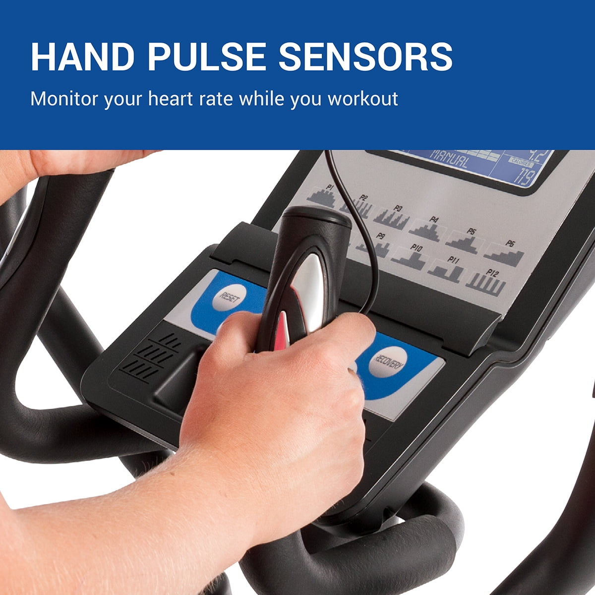 PERFORMANCE 22 lb flywheel for a smooth motion both in forward and reverse 20 levels of friction-free magnetic resistance Multiple inspiring programs including 12 preset, 1 Manual, 4 Heart Rate Control, and 1 Watt to keep you motivated on your fitness journey TECHNOLOGY Easy-to-read 5.81″ blue backlit LCD Displays all your important information including time, pulse, speed, watt, program, distance, and calories Monitor your heart rate at any time with conveniently located hand pulse sensors COMFORT Accessory storage Cushioned handlebars Oversized pedals with a secure non-slip surface Ergonomically designed 16″ stride length Rear spin out levelers correctly balance elliptical on floors ACCESSIBILITY Compact design measuring only 54″ L x 24″ W Built-in transport wheels make moving your equipment easy Comfortably accommodates users up to 300 lb MORE DETAILS Power requirements: Plugs into standard wall outlet Resistance range: 20 levels Assembled dimensions: 54.1″ L x 24″ W x 65.2″ H Assembled weight: 103.6 lb Weight limit: 300 lb WARRANTY 5 Years Frame 1 Year Brake 1 Year Parts