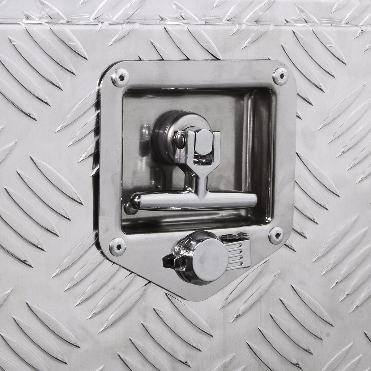 Our tool box is designed to save space and provide extra storage under your truck bed. This tool box is constructed of heavy duty textured aluminum for maximum durability. The door is reinforced with a weather-resistant seal for keeping your tools and items dry and safe. Fold down door provides full access. Built-in lock ensures all items are kept safe and secure. This aluminum underbody tool box is perfect for storing your tools in your vehicle or at home. Features: Rigid Construction – 5 bar tread pattern strengthens the aluminum for maximum durability Under Body Tool Box – This box conveniently mounts under your vehicle for space saving storage Weather-Resistant Seal – The door features a weather-resistant rubber seal for keeping all items inside dry and safe Dual Lock – Dual lock keeps the large door from accidentally opening or from being picked open, adding to security Protective Lock Cap – The lock features a cap which will keep water or duct from entering the lock, ensuring the locks performance for years Drop Down Door – Drop down door provides full access to the box Lockable – Built-in lock ensures all items are kept safe and secure All Purpose – Perfect for storing your tools in your vehicle or at home Specifications: Material: Aluminum Position: Underbody Tread: 5 Bar Tread Overall Dimensions: 36″(L) x 17-7/8″(W) x 15-3/4″(H) Package Content: Aluminum Under Body Tool Box Lock Keys