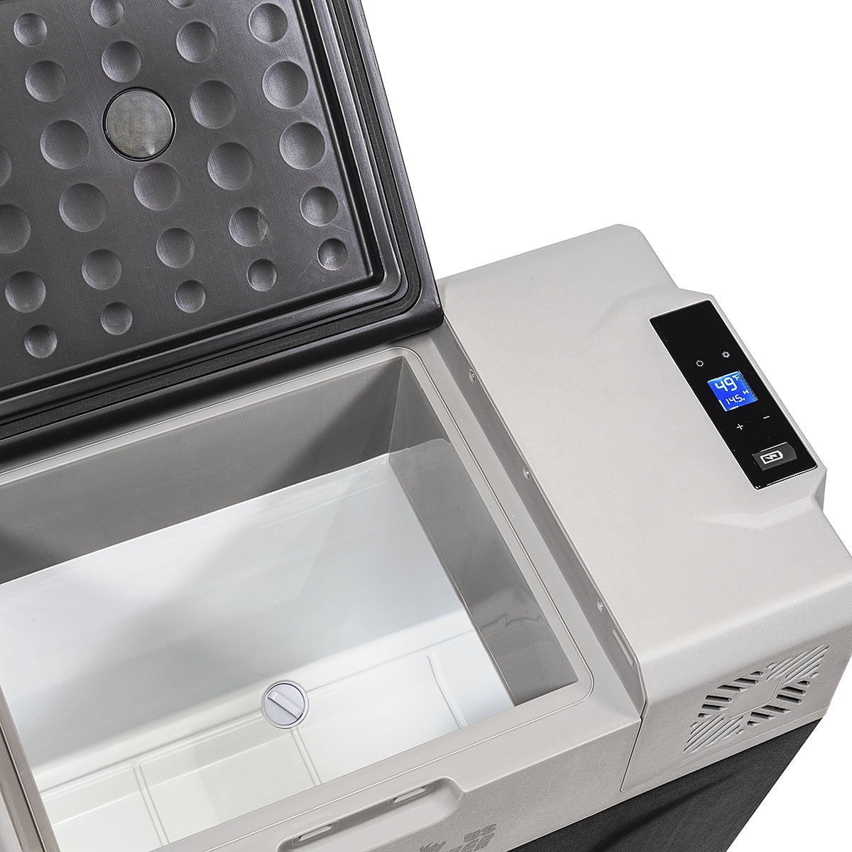 XtremepowerUS Portable Fridge / Freezer offers premium quality & innovative design to your freezer/refrigerated needs. The freezer is great for RVs, campsites, boats, fishing, picnics and road trips and is truly portable so you can take your fridge / freezer anywhere! All you need is either a standard household 110 Volt outlet or a 12/24 Volt power source. Whether on a day trip or major expedition, you can easily keep your food and beverages chilled, or frozen with this bench-top freezer Features: 52-Quart large capacity great for adding refrigerator or freezer space when RVs, campsites, boats, tailgating, fishing, road trips and outdoor activities Bluetooth enabled connected to your cell phone via Bluetooth. You can turn on / off power, preset and monitor the temperature by an app for iPhone / Android phone Side handles and telescoping handle with wheels make it easy to carry or pull Fast Cooling compressor cooling technology, this refrigerator could achieve fast cooling. You could also choose ECO mode for energy-saving or MAX mode for fast cooling 3 different levels for battery protection: Low, Med and High. This design could meet your different needs and well protect your vehicle battery USB port for charging small electronic devices Specifications: Color: Gray Capacity: 52-Quart DC Voltage: 12/24V 3.75a/1.875A Watt: 45 Bluetooth Function: Yes USB Port: 1 Certification: CE Listed Insulation Type: PU (Food Grade) Temperature Setting: -4°F to 68°F Telescoping Handle Height: 40″ Interior Dimension: 18-1/4″(W) x 10″(L) x 17-1/2″(H) Overall Dimension: 24″(W) x 14-3/4″(L) x 21-1/2″(H) Package Content: Portable Freezer/Refrigerator Vehicle Outlet/Wall Adapter Manual