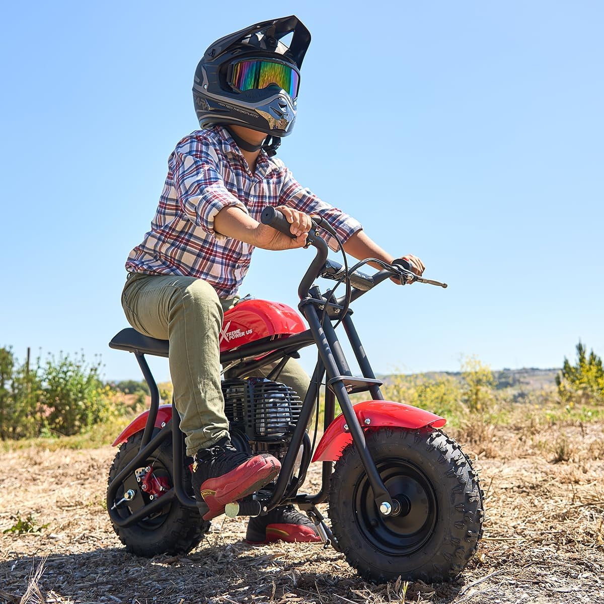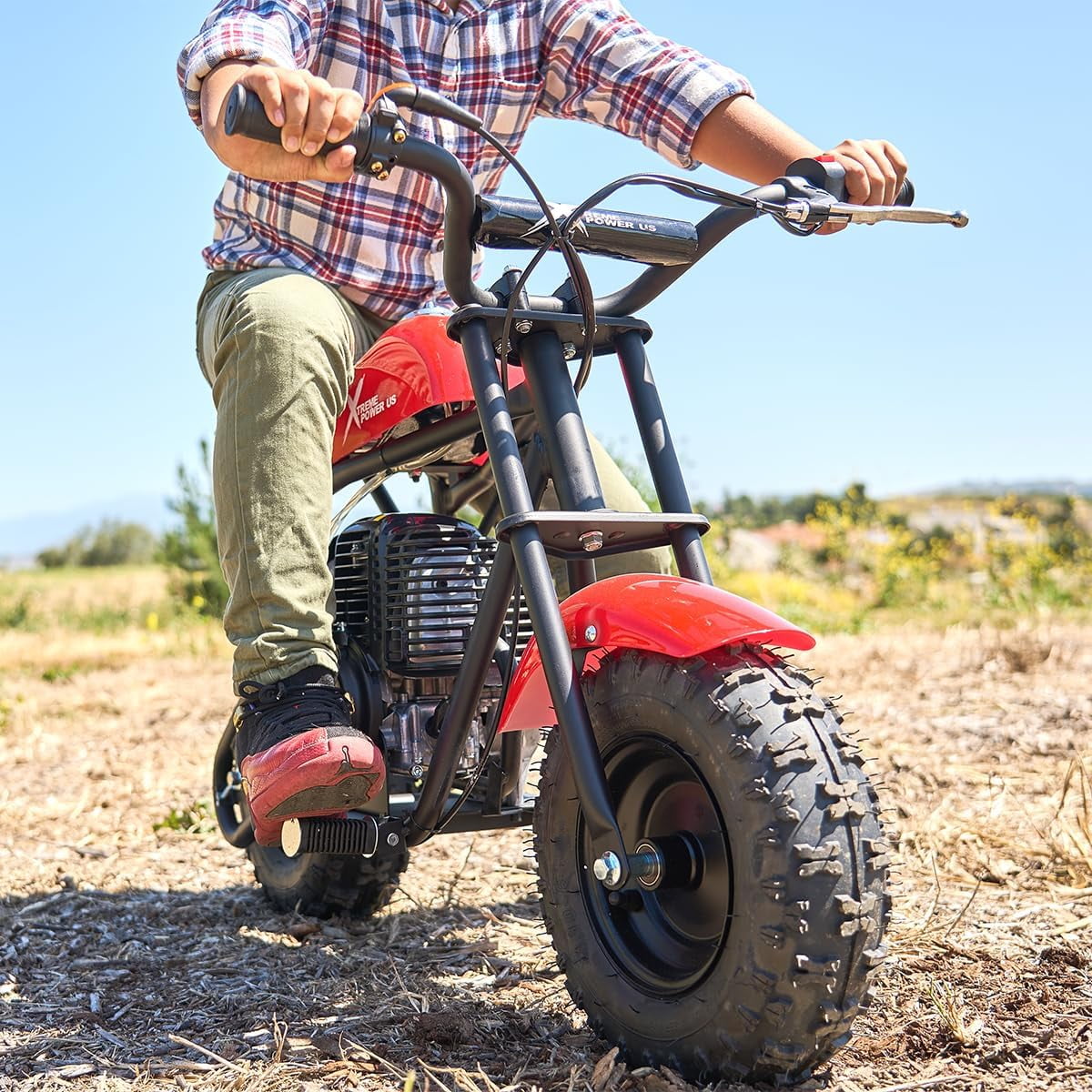 Smooth & Stable Ride: Its low-pressure tires and sturdy build give a soft, stable ride over bumps and uneven ground Powerful Performance: The 4-stroke engine offers clean, efficient power with a top speed of up to 20mph—great for everyday fun. Built Tough: The rugged steel frame and reliable rear disc brake make this bike a durable option for long-term outdoor use. Comfort for All Ages: Sized to fit riders up to 165 lbs and recommended for ages 13+, it’s great for older kids, teens, and adults alike. Certified & Safe: EPA-approved for environmental friendliness and built with safety in mind, this bike is ready for adventure right out of the box. Whether you’re hitting backyard trails or cruising wide-open spaces, the XtremepowerUS 40cc Pocket Dirt Bike offers the perfect combo of performance, fun, and safety. Recommended age 13+