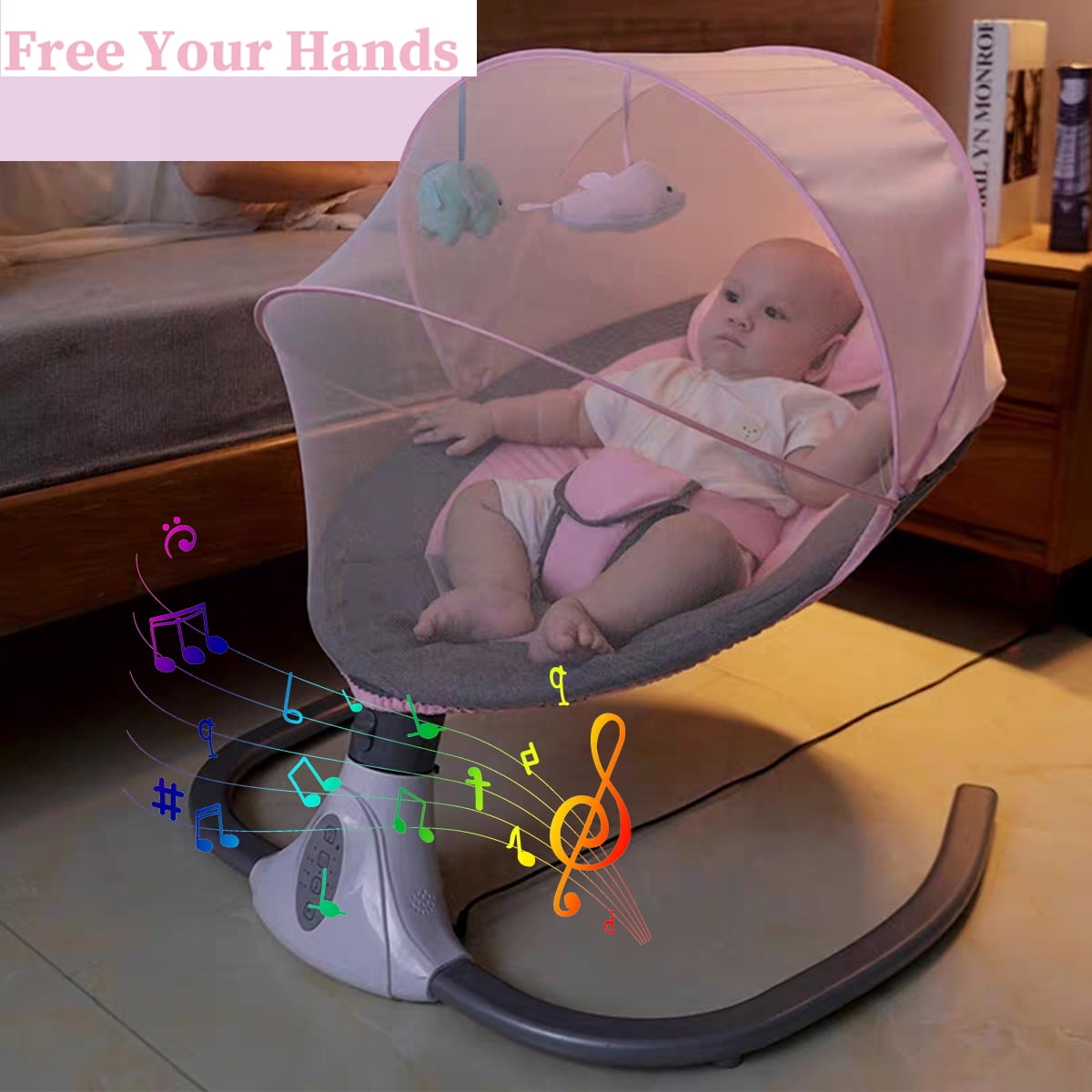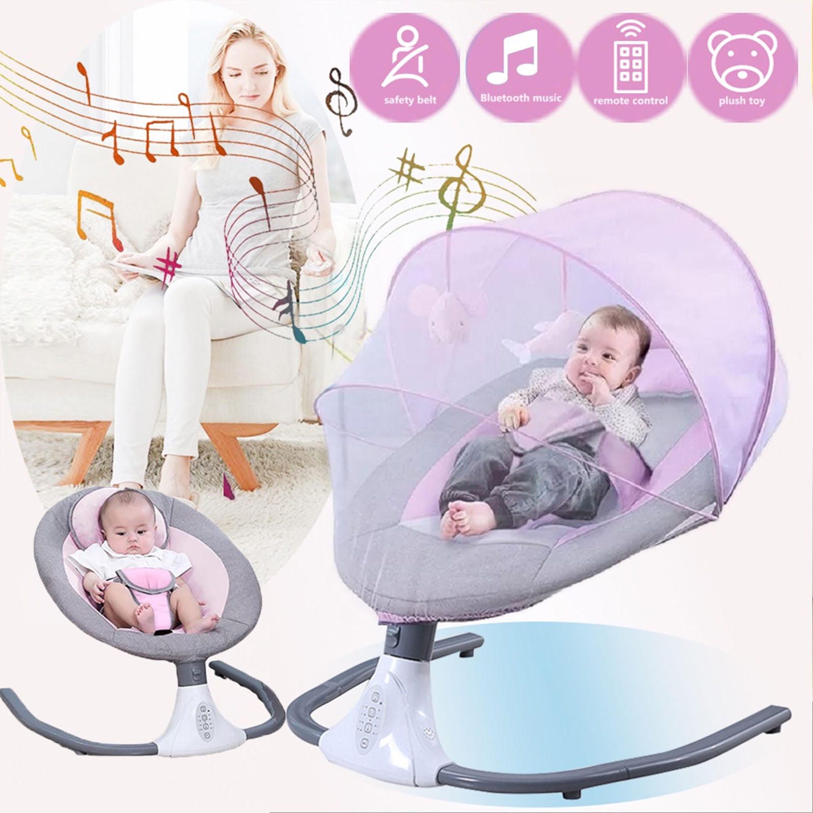 Yabanana Electric Baby Swing for Infant Portable Musical Swing with Remote Control, Bluetooth,Unisex, Pink