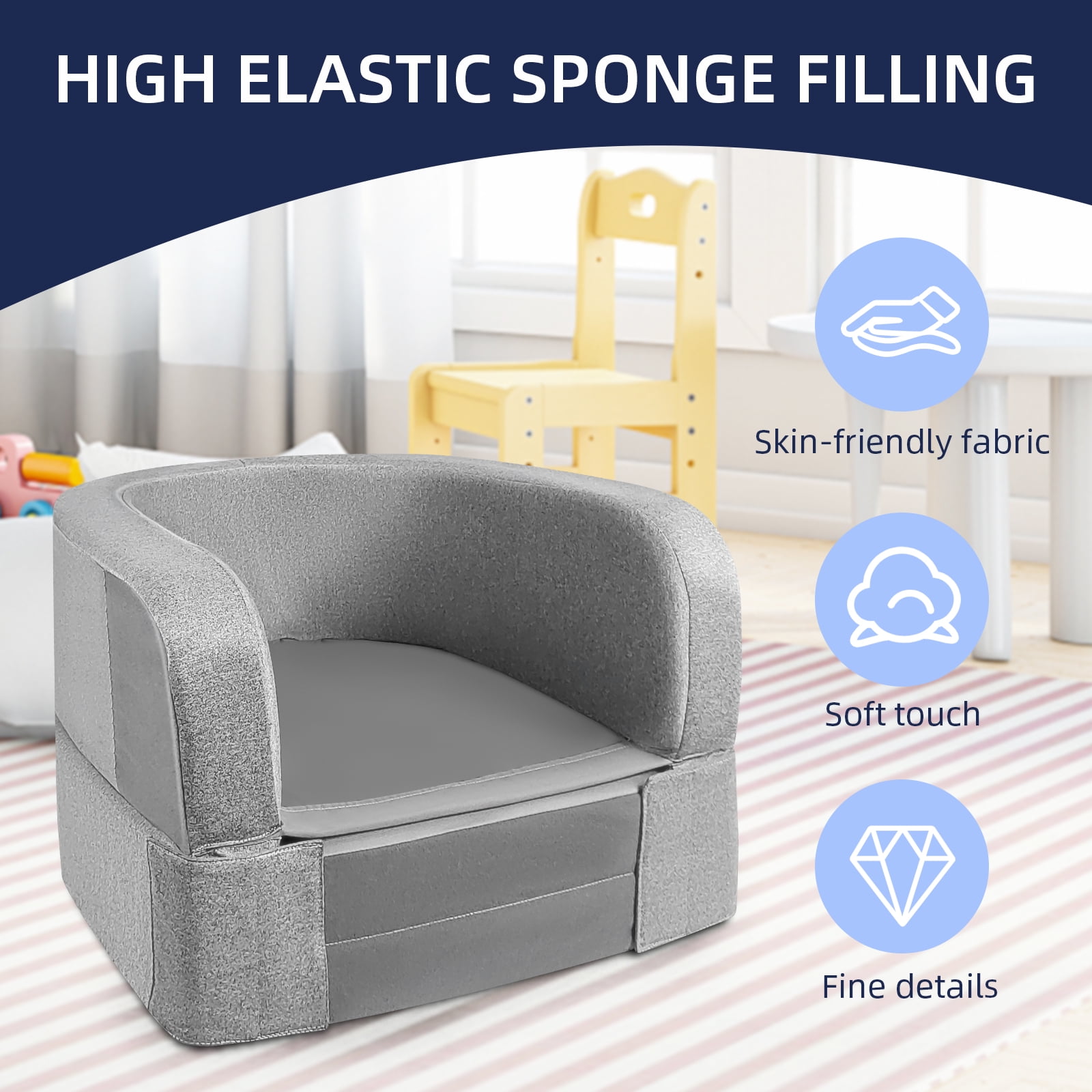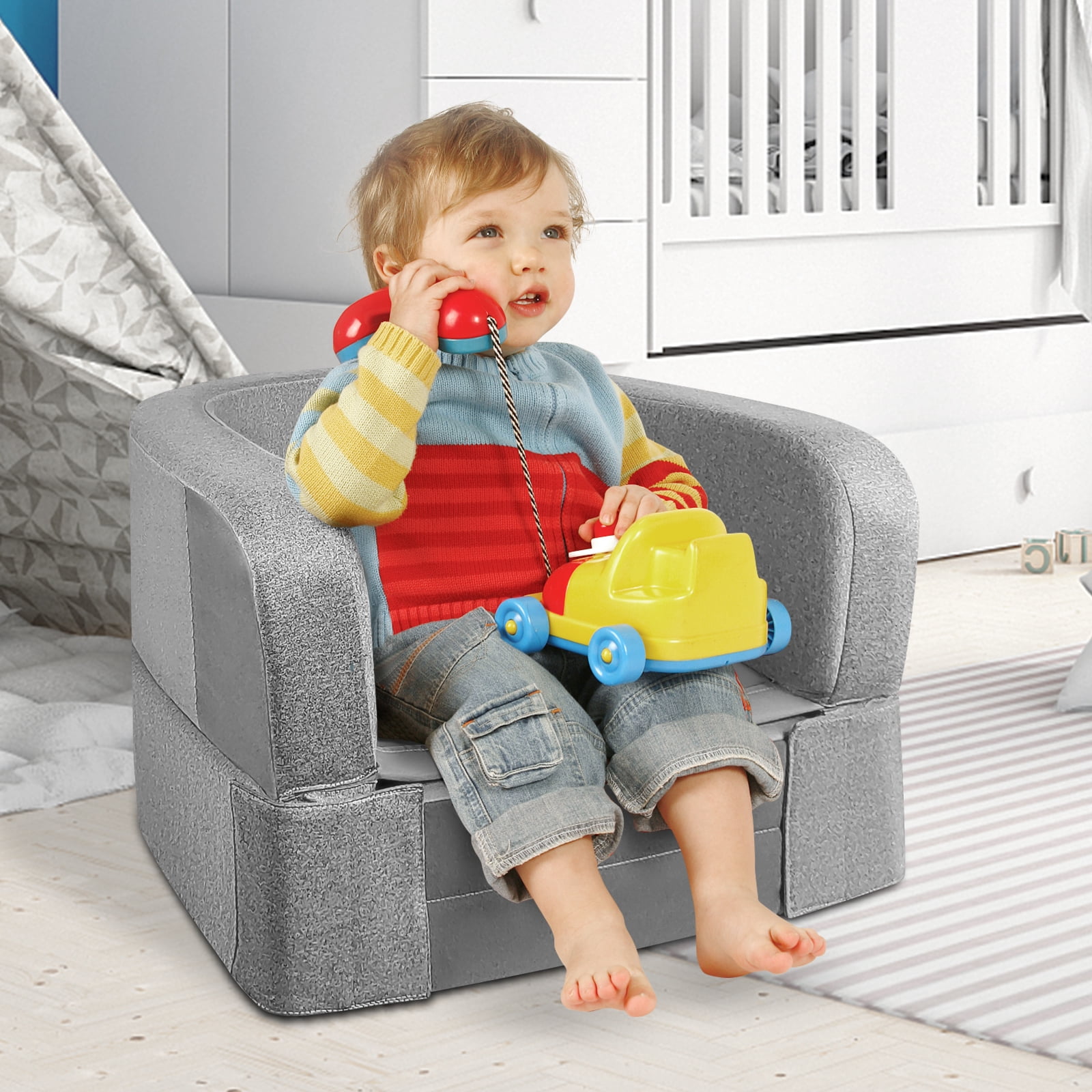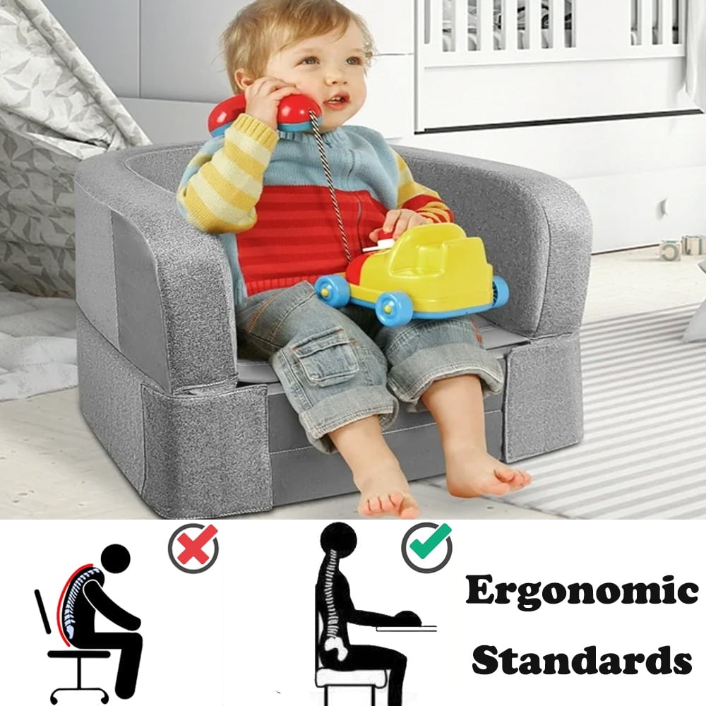 Yacul Foldable Toddler Travel Bed, Portable Baby Sofa Chair Folding Floor Cot for Kids, Grey
