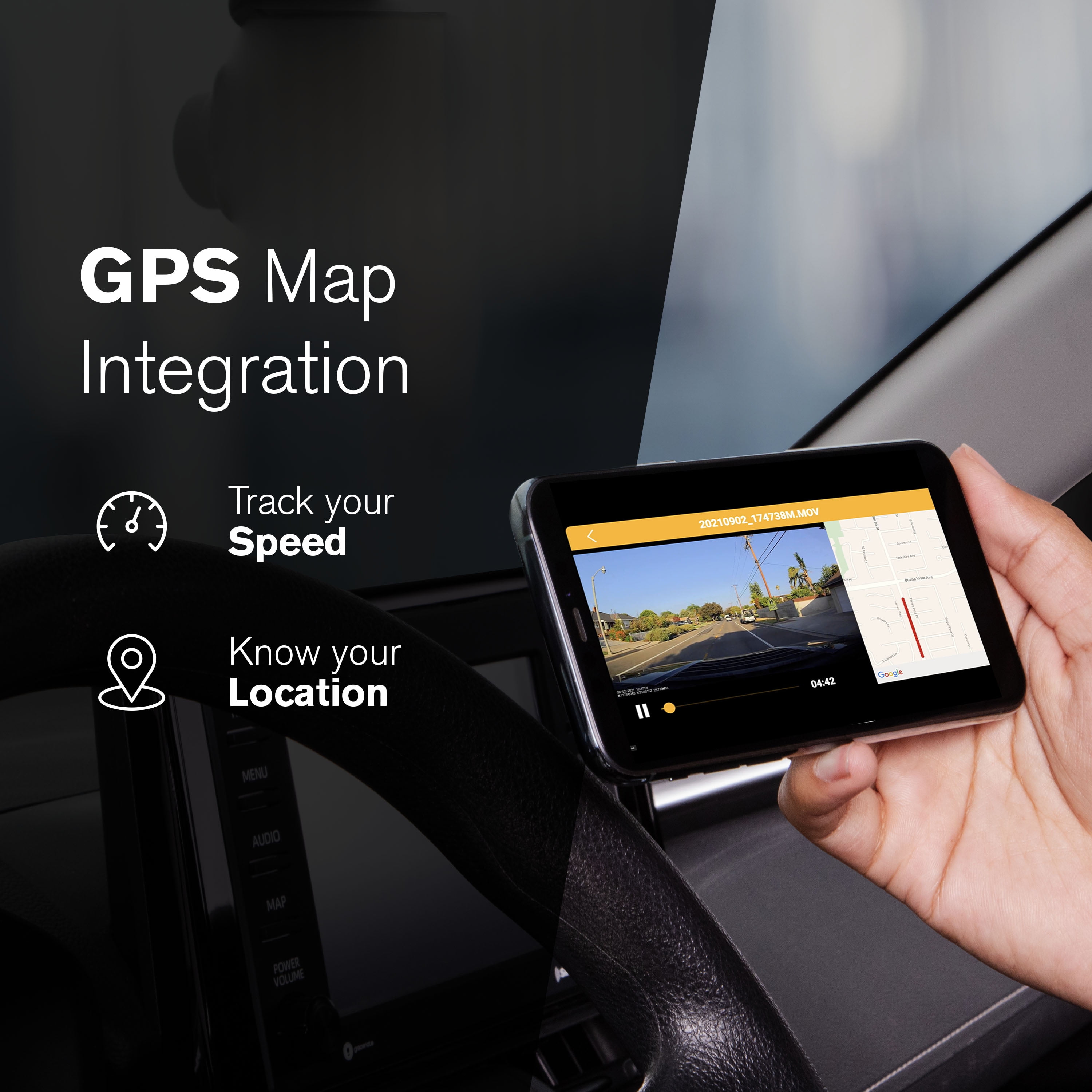 The YADA Roadcam AI PLUS delivers TRUE 4K resolution with a 1080p rear camera, ensuring seamless front-and-back coverage to eliminate blind spots. AI-powered driver assistance provides Vehicle, Lane, and Pedestrian Detection with audio alerts to enhance road safety. The Smart G-sensor automatically records critical events for reliable accident evidence, while integrated GPS and map functions let you revisit your journey with crystal-clear visuals, mapping your route alongside 4K-recorded footage for a detailed review.