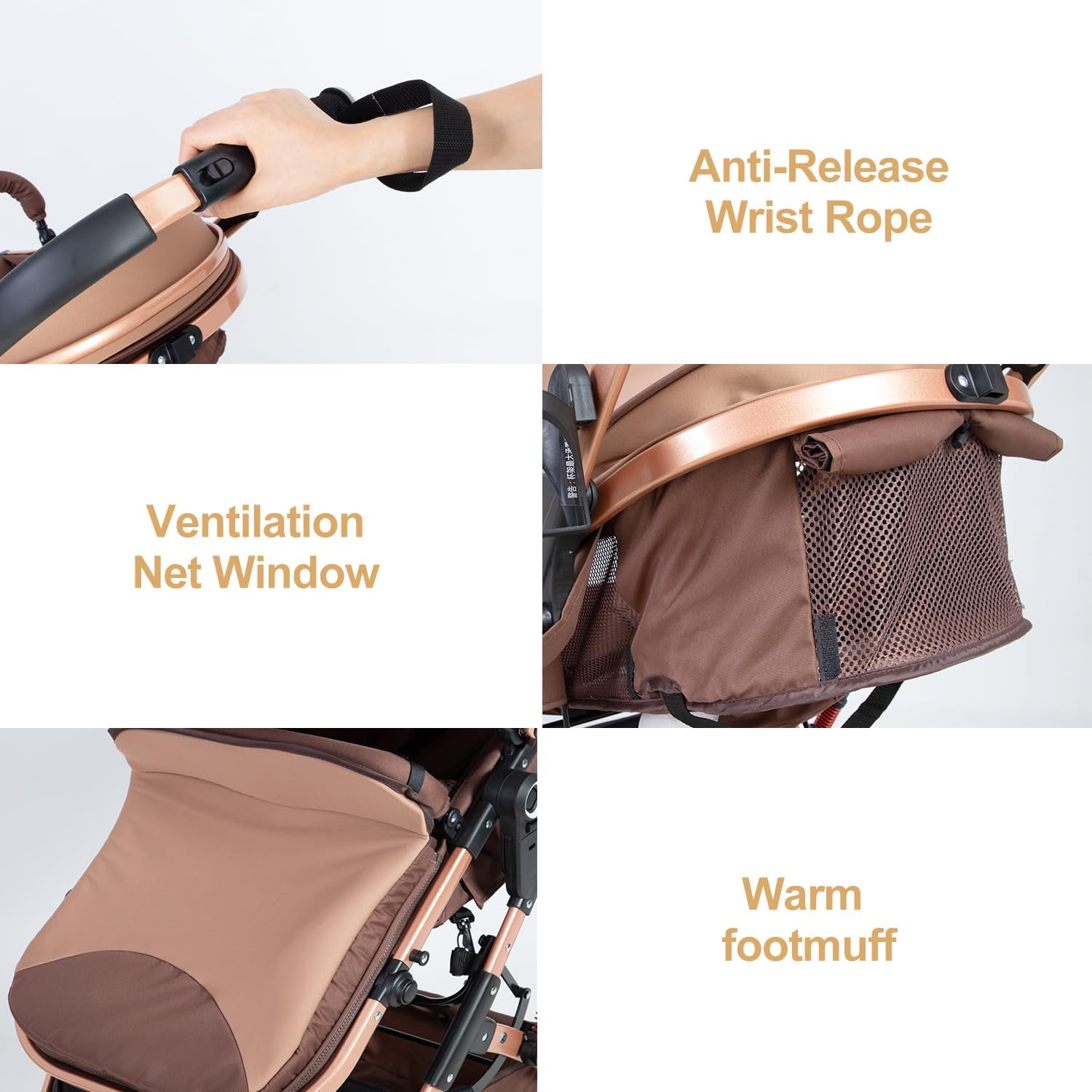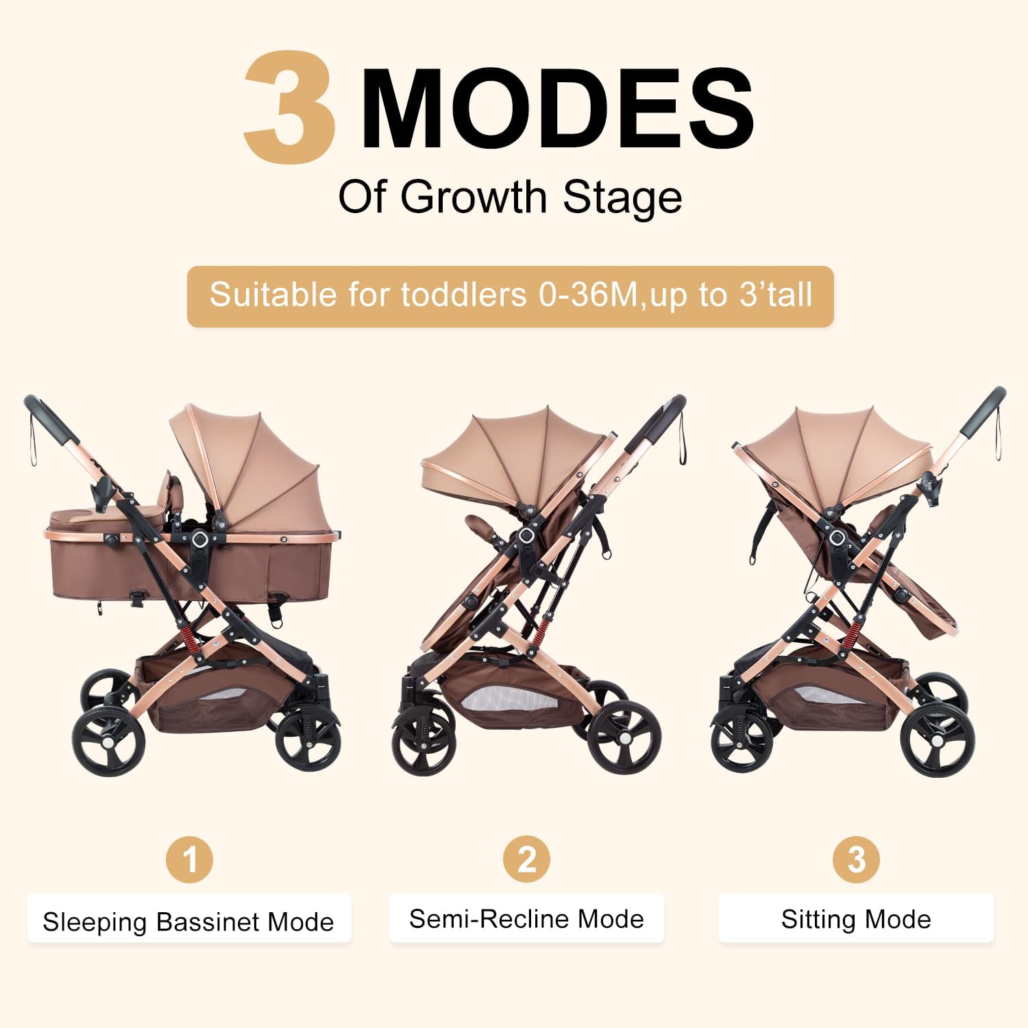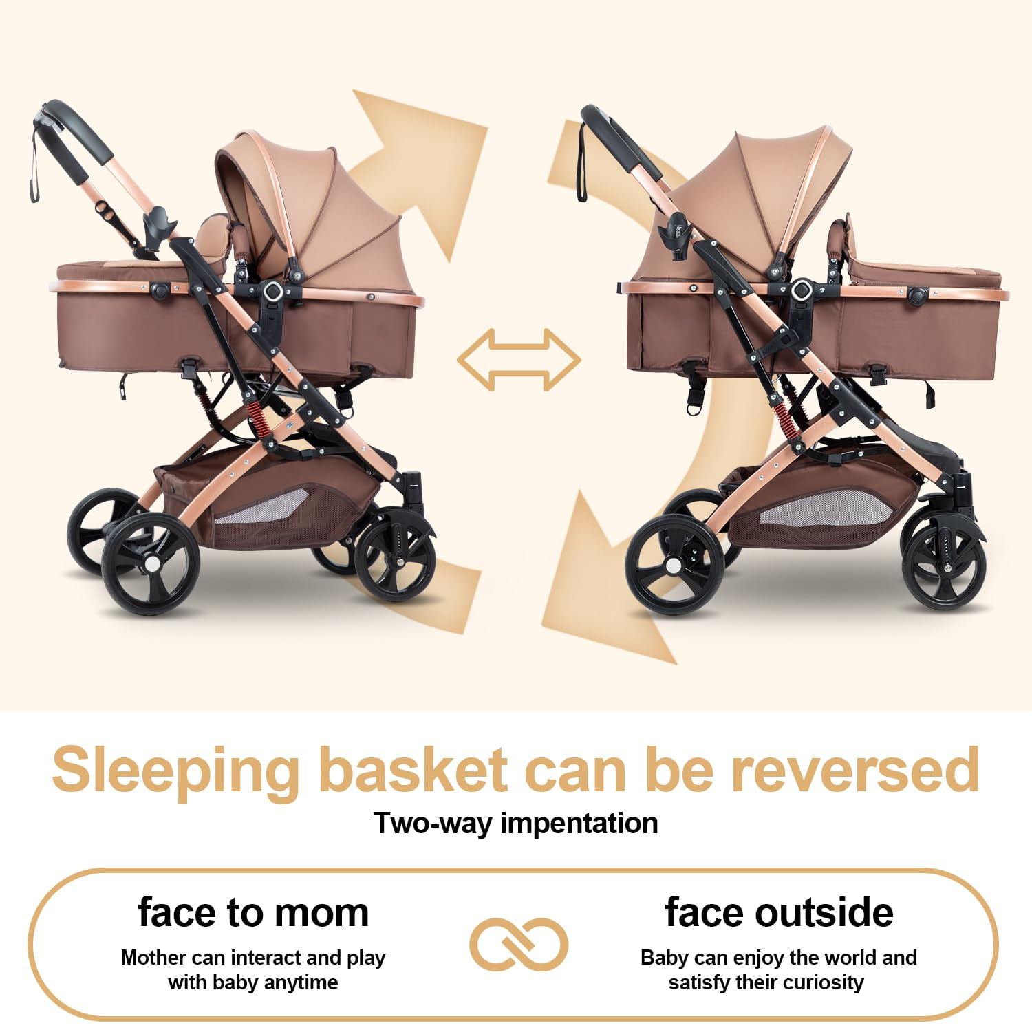 The bassinet stroller can be adjusted into a seat position, baby sits upright or semi-recline as you need. The reversible baby stroller can adjust the seat to face outside so that your baby can enjoy the scenery outside, or let the parents take care of the baby and increase the interaction at any time when adjusting the seat to face inside. The strollers for babies and toddlers are suitable for babies 0-36 months of age. The infant stroller is equipped with an adjustable five-point safety belt to prevent the baby from sliding off the stroller. The upgraded aluminum frame with a triangular structure is more durable and stable. This newborn stroller with all of the advanced safety design passed the American ASTM F833 safety standard test. This toddler stroller can be folded in one step with a light press by one hand and is easy to unfold, saving time and effort than the ordinary stroller. The baby travel stroller with aluminum alloy material makes it more light, and compact and doesn’t take up much space. which is convenient for fitting in the trunk of a car and is perfect for travel. The stroller bassinet equipped with eco-friendly and breathable lycra, oxford fabric and a soft seat mattress makes your baby more comfortable in travel. The zip-out UPF 50+ canopy can protect your baby from ultraviolet radiation, The sleeping basket with foot cover can block the cold wind while the baby sleeps. Yadala baby bassinet stroller provides the best rest environment for the baby in any weather conditions. The front wheel spring and the built-in double damping system of the rear wheel protect the baby’s stability and comfort. 360 degrees rotation Pu rubber wheels are not only durable, but also have good grip, suitable for all kinds of roads, such as gravel roads, suburban roads, roads with shock absorption belts, or other bumpy roads. Model Name: Q3B Brand: Yadala Color: Khaki Age_group: 0-36 months Product Size: 39.4″ * 15.7″ * 30.7″ Fold Size: 24.8″ * 15.0″ * 35.4″ Load Capacity: 116 lbs Product Weight: 17.6 lbs Lycra, Oxford fabric, Aluminum alloy 1*Baby stroller 1*Mosquito net 1*Sun-shade awning 1*Cup holder 1*Foot cover 1*Cotton pad