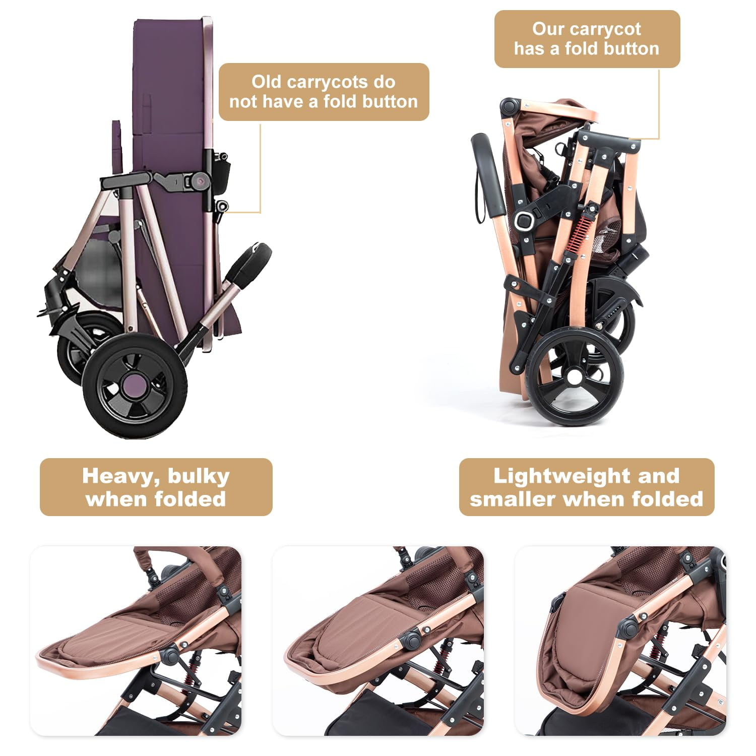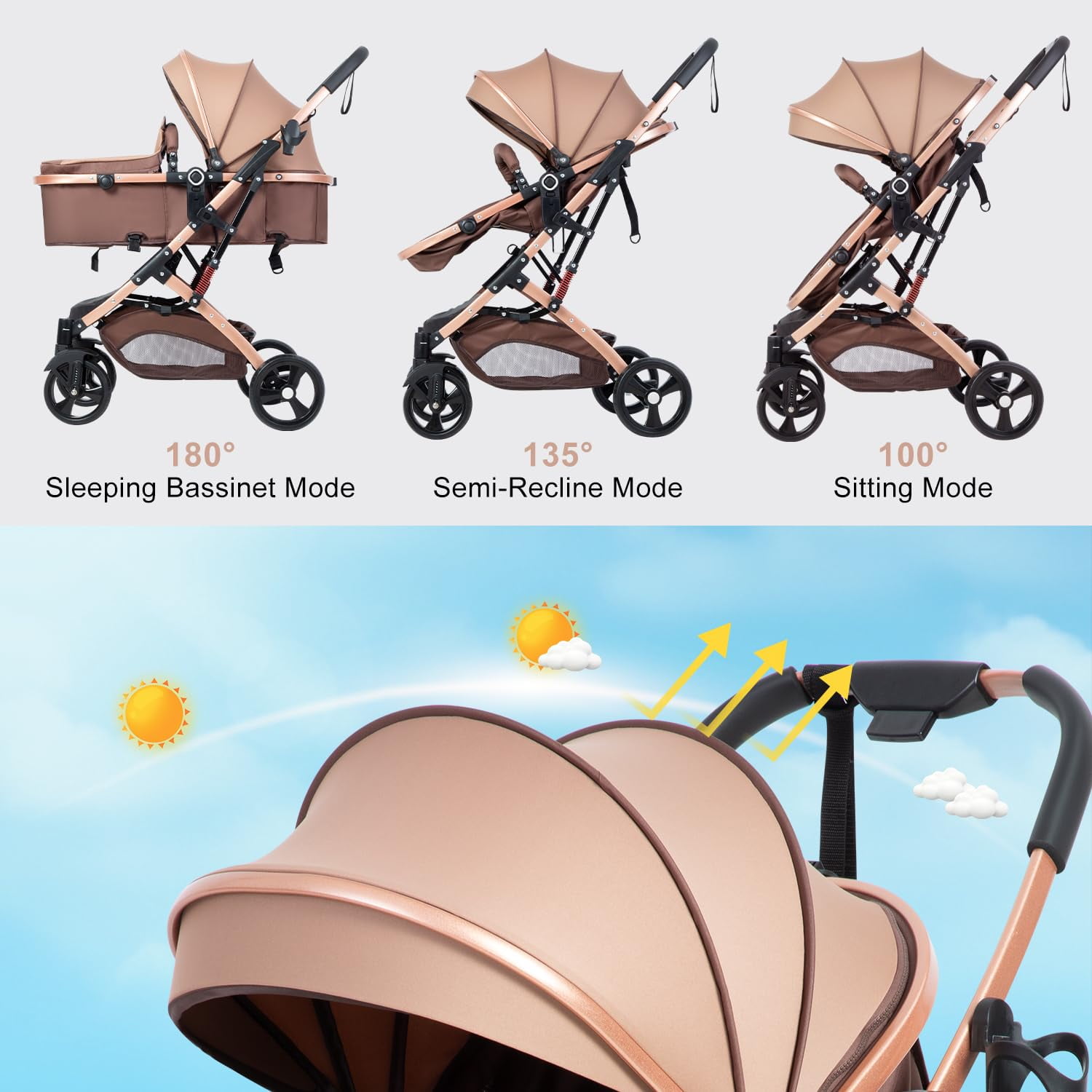 Yadala Baby Stroller, Foldable 3 in 1 Convertible Bassinet Stroller for Newborn Toddler with Adjustable Backrest & Awning