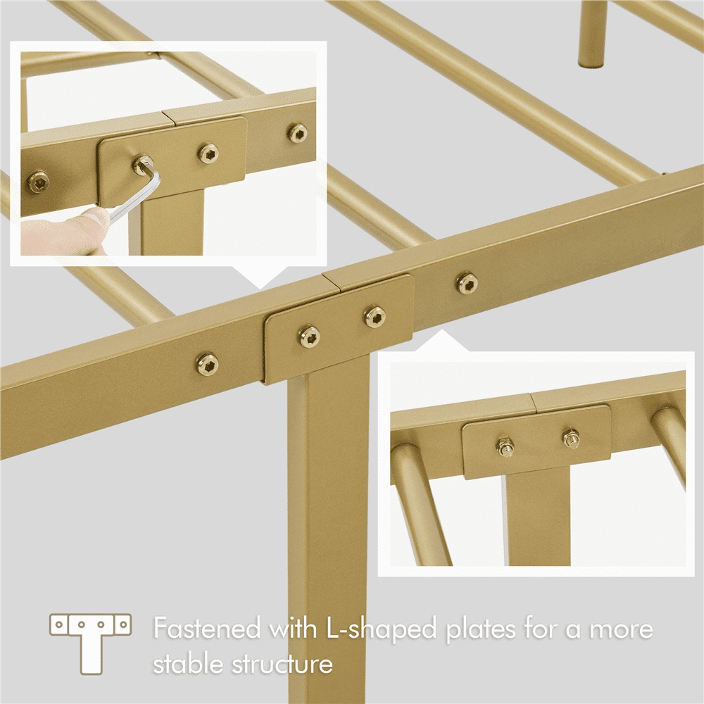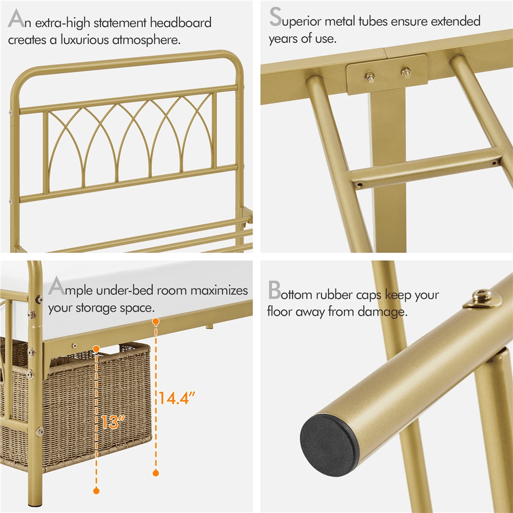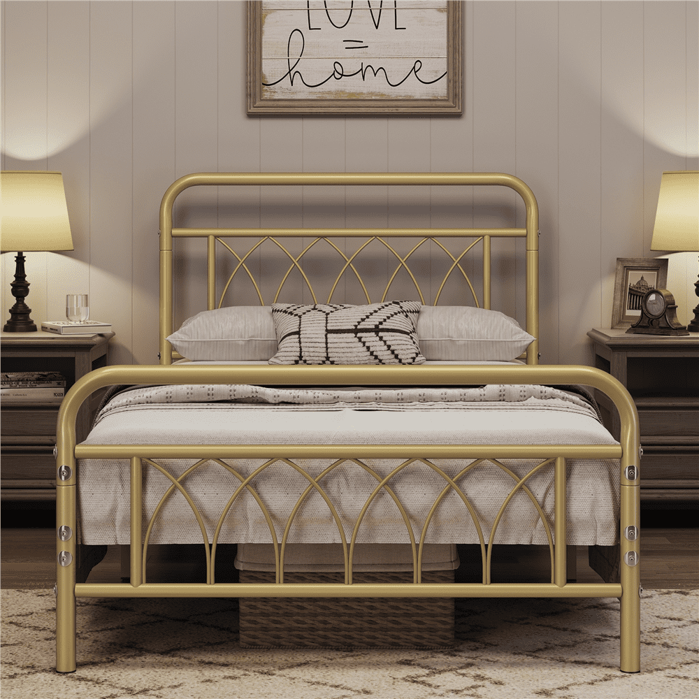 Yaheetech Metal Platform Bed with Headboard and Footboard, Twin Size, Antique Gold