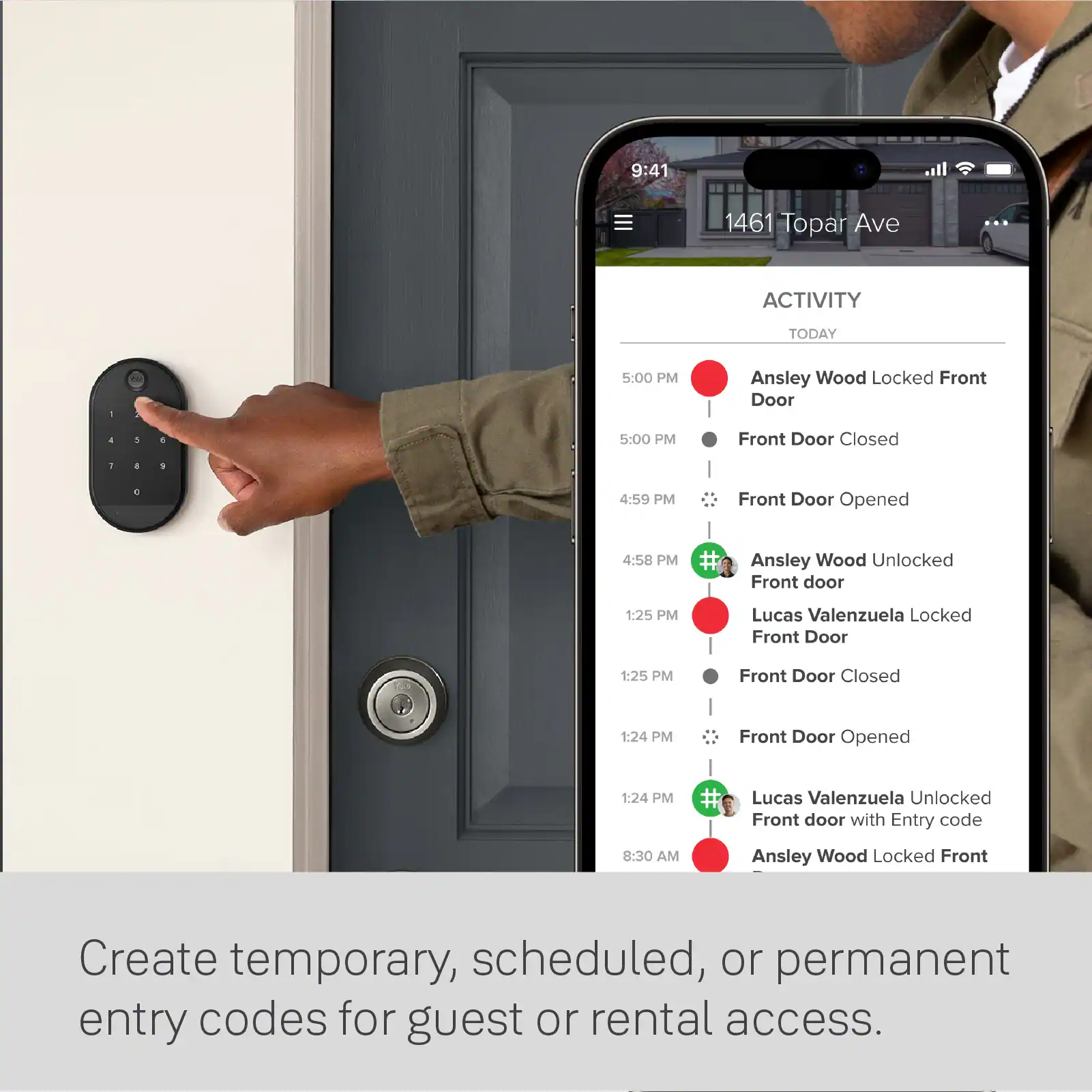 Enjoy secure, keyless, and trackable access with friends, family, vacation rental guests, and more by creating customizable entry codes- so you never have to hide a key again.
