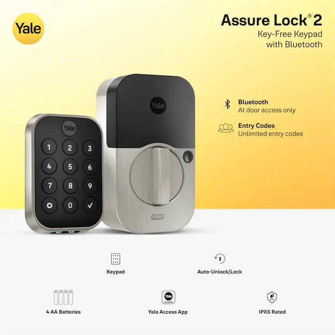 • Unlock your way: Key-free access with the keypad, Yale Access app on your smartphone or Apple Watch, or optional Auto-Unlock via Bluetooth