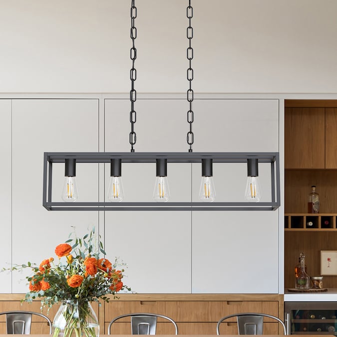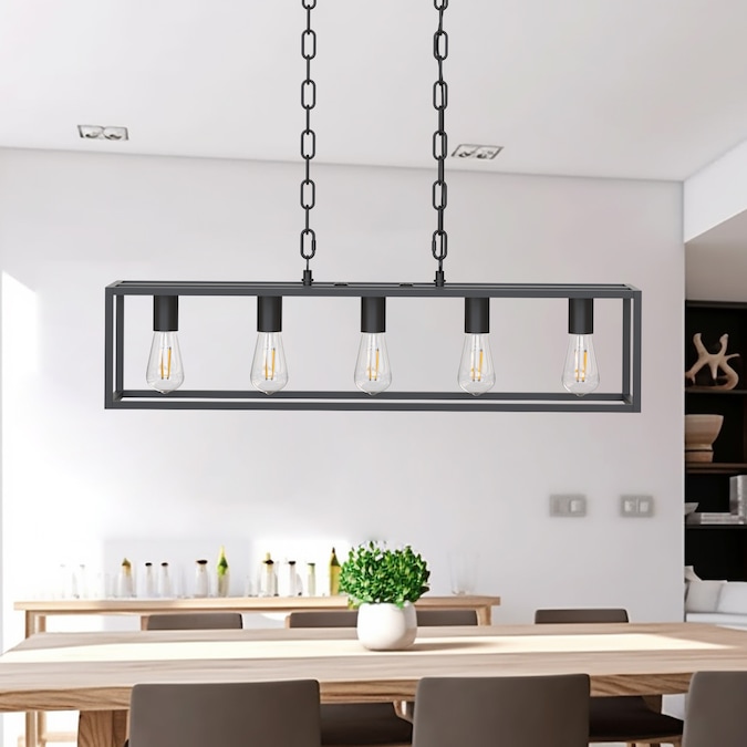 This black matte metal linear pendant light with a modern industrial look is the perfect lighting fixture and decoration for any space. Equipped with 5 sockets and open-air design to maximize the lighting. Compatible with different types of E26 light bulbs allows you to create unique lighting effects to your heart’s content.