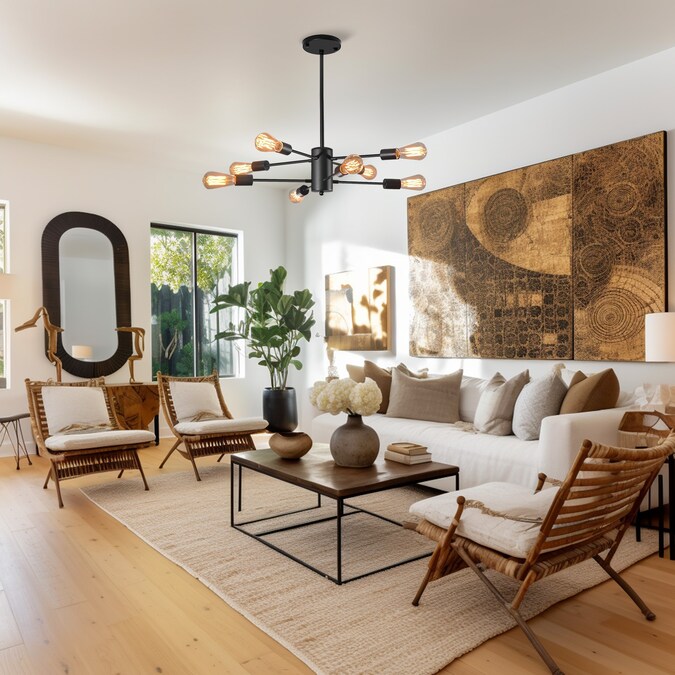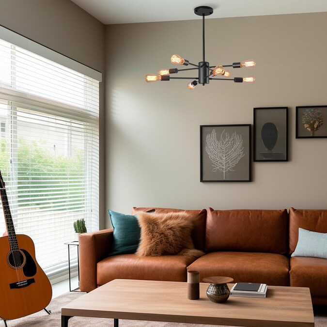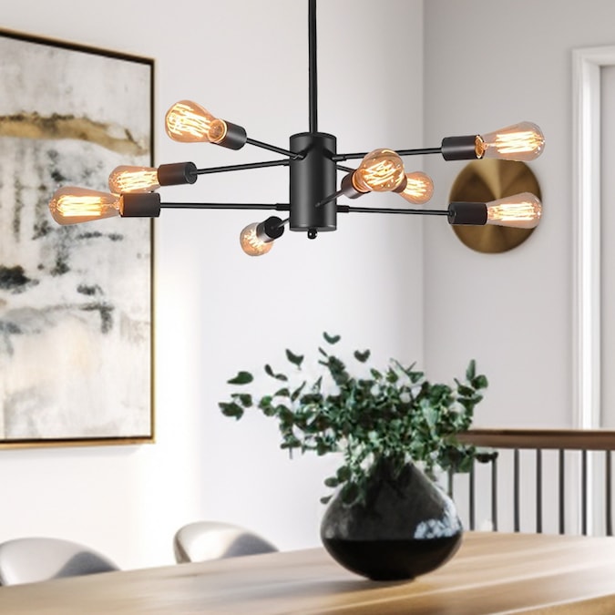 Crafted from metal finish with symmetric arms, this 8-light chandelier lighting brims with modern industrial sputnik style that elevates the look of any place. 8 linear arms that just out from the center with a socket on the end to accommodate any LED, CFL, incandescent bulbs. Blending the contemporary with the vintage when matching with the attached 2700K vintage Edison filaments, this luminary with flexible extension rods (9.84 in. to 39.36 in.) fits diverse home spaces like living room, dining room and so on.