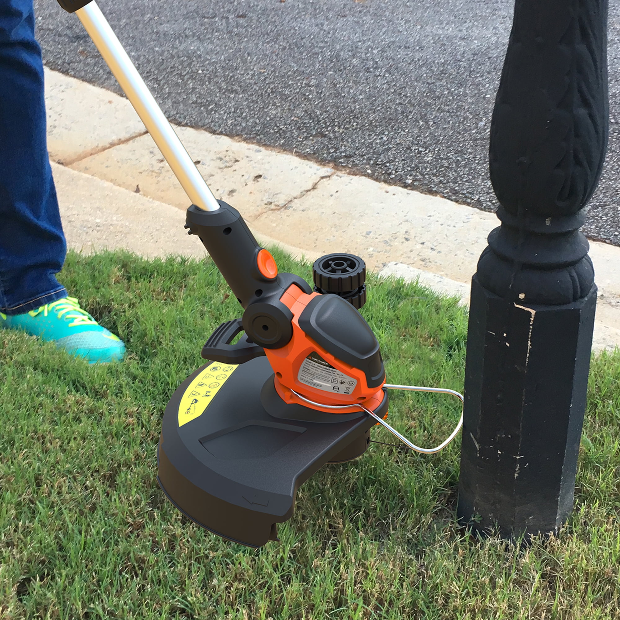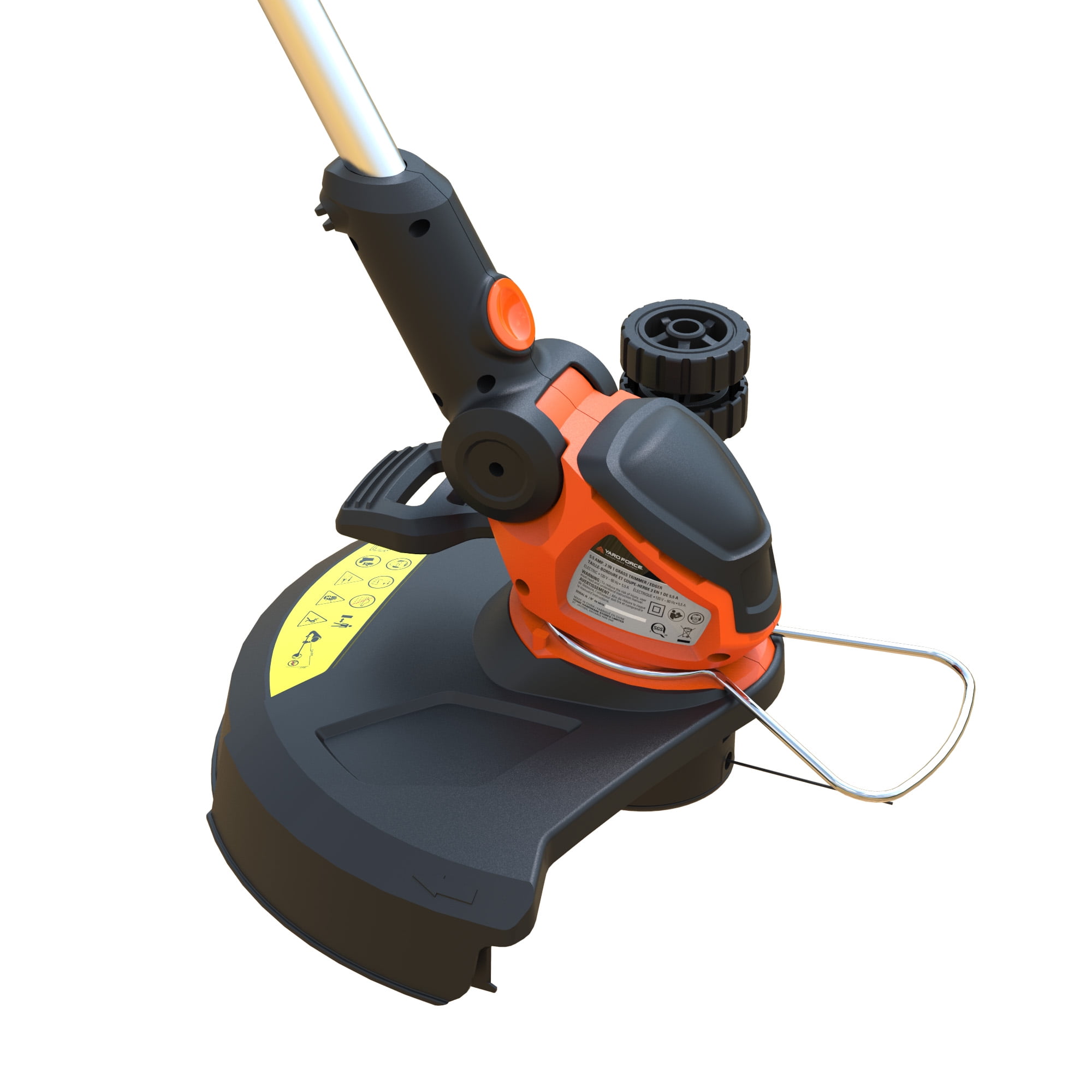 Yard Force 5.5 Amp Corded Electric String Trimmer Powerful and efficient 5.5 Amp electric motor 7500 RPM 0.065 in. dual-line power head for effective trimming Lightweight and strong aircraft aluminum shaft that telescopes for adjustable length Ergonomically designed soft-grip handle for enhanced comfort Unique quick-step lever allows for easy transition to edger mode using your foot Edger wheel provides precision trimming Cord retention system prevents accidental disconnection of the power cord Environmentally friendly design eliminates the maintenance hassle of gas engines Includes a bonus PPE kit with safety glasses for added protection
