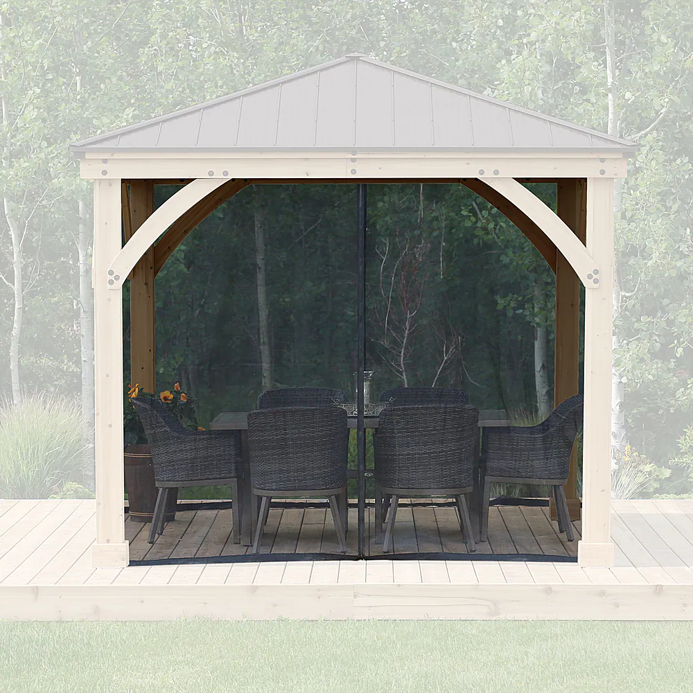 Our mesh kits have easy glide tracks for opening and closing. With Full-length panels, heavy-duty zippers on all 4 sides of the Gazebo Post and mounted ties in each corner to hold mesh back when not in use this finishes your Yardistry Gazebo outdoor look. Designed to fit exclusively on Yardistry’s 10 x 10 Meridian Gazebo only.