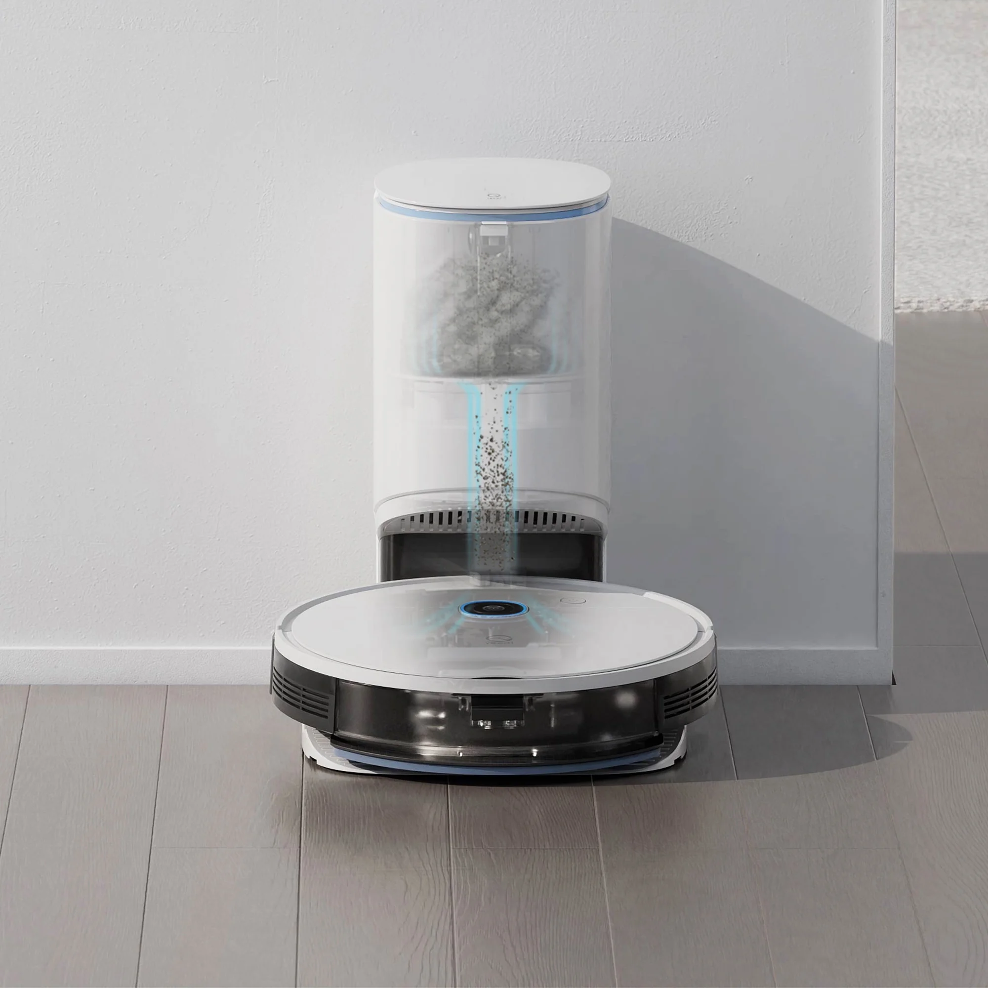 Robot vacuum station with a smart, ultra-slim design and advanced visual navigation technology for big cleaning tasks and efficient and agile cleaning without any concerns of getting stuck Effortlessly glides around furniture, easily accesses hard-to-reach areas, and navigates narrow spaces to effectively eliminate dust and dirt Self-emptying system allows for hassle-free cleaning as it sucks dirt into a large 2.5L capacity bag, eliminating the need for frequent emptying for up to 60 days Mop and vacuum cleaner station features a vacuum cleaner suction power of 3000pa suction and intelligent mopping so that it effortlessly vacuums and mops floors in one go Automatically detects carpets, increases suction power, and avoids mopping on carpets Provides long-lasting cleaning and easy room customization using a smart system that recognizes rooms and creates a customizable home map Offers convenient control and customization of your cleaning routine using the user-friendly app and hands-free control with Amazon Alexa or Google Assistant Comes with an extended 200-minute runtime on a single charge and seamlessly resumes cleaning from where it leaves off after recharging