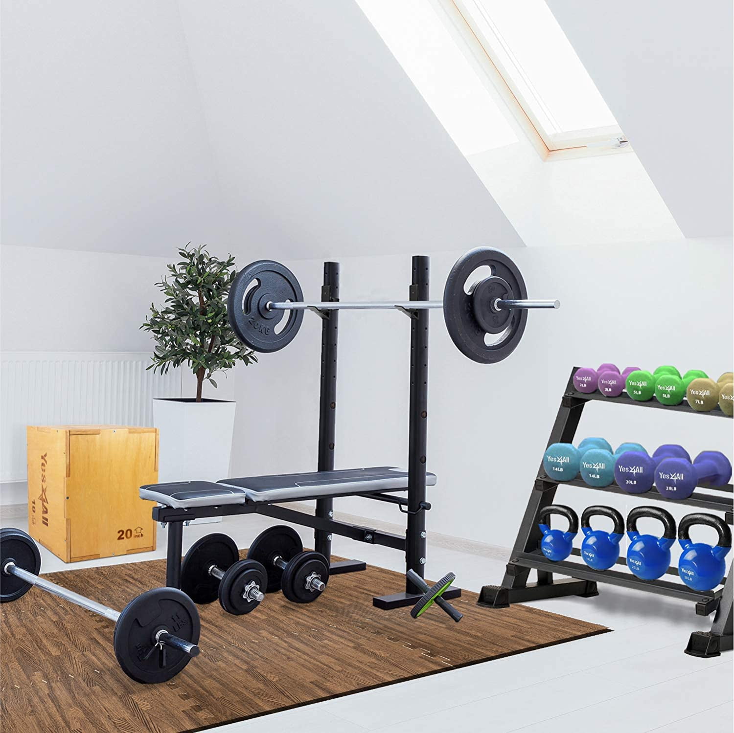 12 TILES COVER 48 SQ. FT: Include 12 tiles. Each tile measures 24”L x 24”W x 7/16”thick – Thick from the highest point of the texture DURABLE & NON SLIP: The non-skid textured & shock-absorbing surface provides a soft feeling when exercising on, best for comfortable workout area – a combination of high-density EVA foam mat & exercise mat for excellent support and cushion EASY 5 MINUTE ASSEMBLY: Lightweight puzzle pieces can be connected and disassembled easily in less than 5 minutes. Great for home gym, fitness gym, garages coverage or children’s play areas PROTECTIVE WORKOUT FLOORING: Give yourself shock-absorbing comfort when doing Yoga, Pilates, or weightlifting. Yes4All Interlocking Mats can also be used to create a soft & anti-slip floor while camping or playing EASY TO CLEAN: The water-resistant & noise-reducing design is easy to clean. The moisture-resistant technology & high-quality material make the mat easy to wash with soap & water