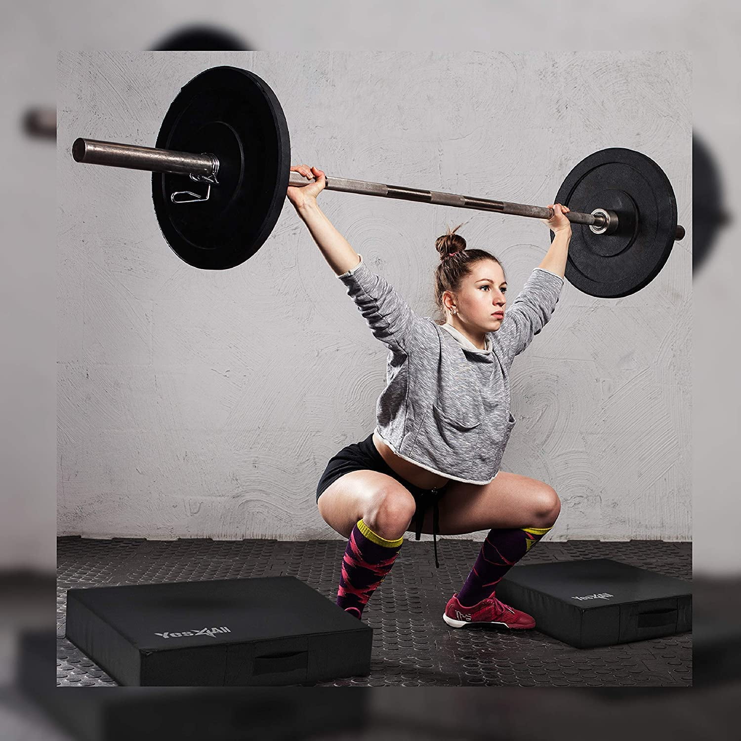 DROPPING WEIGHTS is an almost unavoidable part of barbell training. Lowering and dropping weights on a cement floor can lead to damage. YES4ALL SILENCER DROP PAD is one of the best options to handle high-impact drops and reduce noise during your training sessions. PROFESSIONAL HIGH-QUALITY WEIGHTLIFTING PAD Our weightlifting landing mat, drop mat measures 30 x 24 inch and will give you a completely new level of peace and quiet. The perfect size offers a safe space to drop the barbell onto but still easy enough to store, carry, and move around the gym. With the 6-inch thickness of high-density foam, The Drop Pad is ideal for protecting your floor and equipment – perfect for deadlift or clean and jerk exercise. Feature durable and high-quality support foam, Yes4All Weightlifting Pad will not tear, flatten or lose shape after repeated use. The non-slip PVC cover makes it virtually waterproof and high-temperature resistance. EASY-TO-CARRY HANDLES & HEAVY-DUTY STITCHING Each Barbell Drop Pad comes with a carry handle for convenient on-the-go-fitness for personal trainers, athletes. The Drop Pad is great for home gyms, commercial gyms, Weightlifting clubs, and classes. The strong thread ensures the Pound Pad to withstand under rigorous workouts. PRODUCT SPECIFICATIONS: Sold in pair Dimensions: 30 x 24 x 6 inch (Single). 30 x 24 x 12 inch (Pair) Weight: 24lbs (Single), 48lbs (Pair) WARRANTY: 1-year warranty and 30-day return (contact seller for more details) REDUCE NOISE & VIBRATION: Yes4All Barbell Drop Pad features thick, high-density foam to absorb and diffuse the noise and vibration associated with heavy barbell drops, which helps protect the floor from damage. EASY TO CARRY AND STORE: Each Barbell Drop Pad comes with a carry handle for convenient on-the-go-fitness for personal trainers & athletes. The Drop Pad is great for both outdoor and indoor workouts, deadlift platform. PVC LEATHER SHELL & HIGH-DENSITY STITCHING: Durable and high-quality support foam will not tear, flatten or lose shape. PVC cover built to withstand the damage from heavy drops and is strong enough to hold its color and form for long-term use. 31 x 24 x 6 INCH (LxWxH) SILENCER DROP PAD: The weightlifting pad measures 30 x 24 inch to give you enough room to comfortably drop your weight on and 6-inch thickness to lessen the impact, vibration, and noise from each drop. HIGH-QUALITY ZIPPER: The “Power Zipper” with its molded teeth is large enough to function as a ventilation system, which allows the Weightlifting Pad to breathe with every drop. This breathing effect will ensure your Pound Pad last for a long time usage.