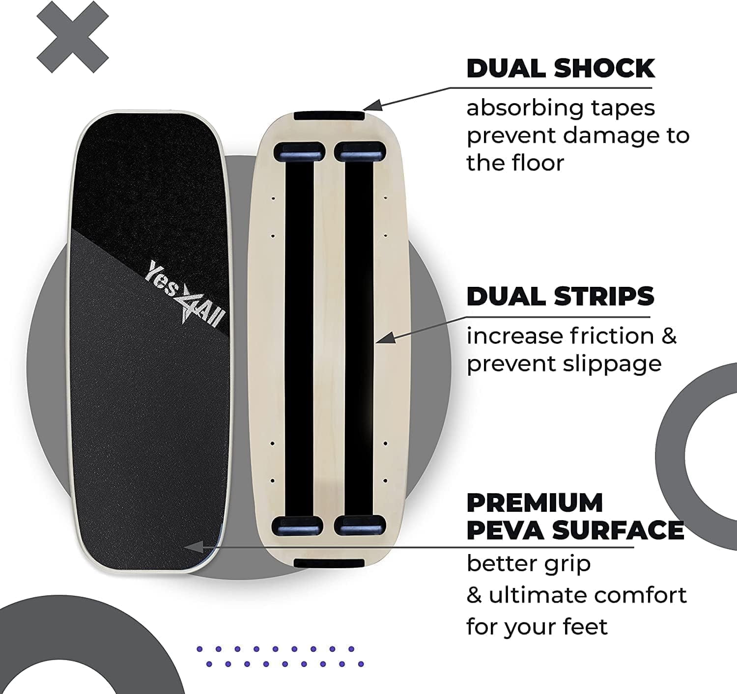 MASTER CONTROL OF YOUR BODY: The Premium Balance Board Trainer is a simple and practical physical therapy and rehabilitation tool, help to improve core strength, balance, coordination, and muscle memory. VERSATILE TRAINING TOOL: Surf Balance Board is perfect for boardsports like Surfing, Snowboarding, Skiing, Skateboarding, Standup Paddle, and sports like Basketball, Hockey, Golf, Baseball, etc. This could be a perfect training balance board not only for adults but also for all ages. CUSTOMIZABLE DIFFICULTY: This Balance Surf Board Trainer can be easily adjusted the distance with 2 removable stoppers for beginners (11, 16, and 22 inches) or remove them for advanced riders. PREMIUM CONSTRUCTION & COMFORT: Made of 15-ply pressed premium wood, supporting up to 350lbs, with special antiskid PEVA grip for safety and comfort. SMOOTH & FLOOR-FRIENDLY: The easy-glide wooden roller with a thick TPE layer ensures smooth movement without damaging different types of flooring.