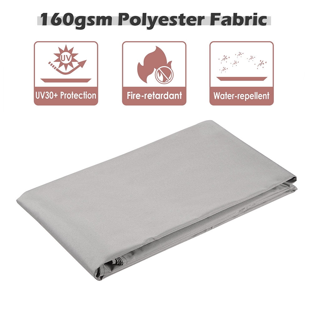 160g Polyester with PU Coating Zipper in center allows for easy entry and exit UV30+ protection for protecting you from burning under the sun in summer days Water-repellent fabric allows using when drizzling,fire-retardant fabric, much safer for use than ordinary polyester fabric Easy Installation – Easily attach the plastic rings to the frame and hang the netting
