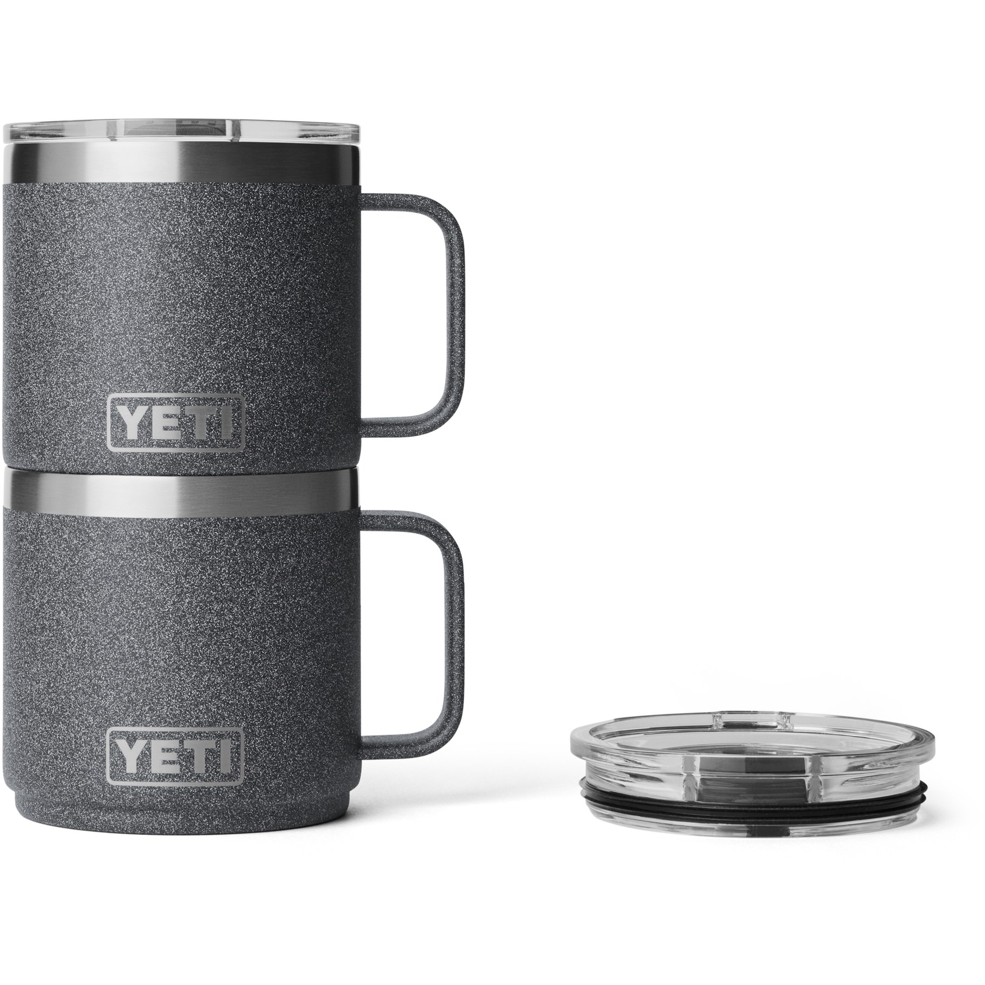 • When the lid is removed, the bottom grooves on the stackable base allow you to nest your YETI Rambler 14 oz. mugs to save space (second mug not included)