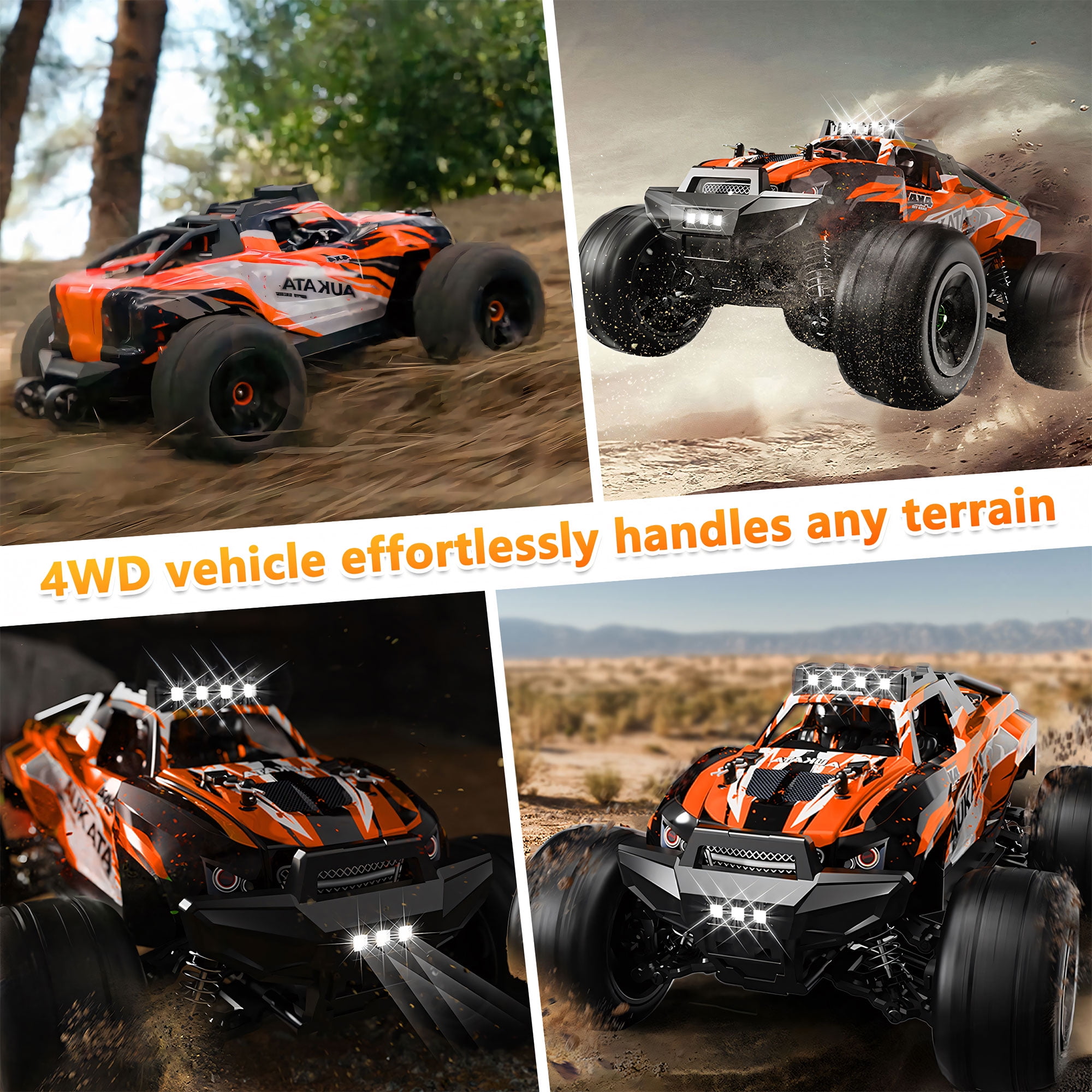 【Enhanced Grip 1:16 High-Speed RC Car】 This newly enhanced remote control car features larger tires with redesigned treads, offering superior grip. The hub metal sheet has been meticulously designed to increase hub strength, preventing deformation from collisions. 【Two Batteries】 Each RC car includes two 7.4V/1300mAh batteries, providing extended driving enjoyment of approximately 60+ minutes per session (30+ minutes per battery). The chassis, made from nylon, has several advantageous properties, making it an ideal choice for RC truck enthusiasts. 【Hobby Grade RC Car – Suitable for Beginners & Advanced Users】 The 2.4GHz remote control system allows proportional control over throttle and speed. Adjust the speed switch clockwise to increase driving speed and counterclockwise to reduce it. Fine-tune the wheel’s direction with the steering trim. 【Enhanced Motor with Professional Metal Heat Sink】 Equipped with a powerful brushless motor, this monster truck delivers enhanced acceleration, reaching top speeds of 25+ mph(kph). The metal heat sink provides comprehensive coverage to improve motor heat dissipation, extending motor life. Note: Prolonged use may heat the motor; we recommend taking breaks after 15 minutes of driving. 【All-terrain Racing Experience】 Equipped with an independent suspension design for both front and rear axles, this high-speed RC car offers exceptional adaptability to all terrains. Damped metal shocks allow for easy adjustment of spring tension, catering to specific traction and suspension requirements. Metal springs support all four wheels, providing stability against drops and rough surfaces. No terrain is too challenging for the Yexmas RC car—unleash your racing spirit anywhere! 【What’s in the Box】: 1* 1:16 High-Speed RC Car 1* Remote Controller (2 AA batteries not included) 2* Rechargeable RC Car Batteries 1* USB Charging Cable 1* Screwdriver 1* User Manual 1* Product Gift Box