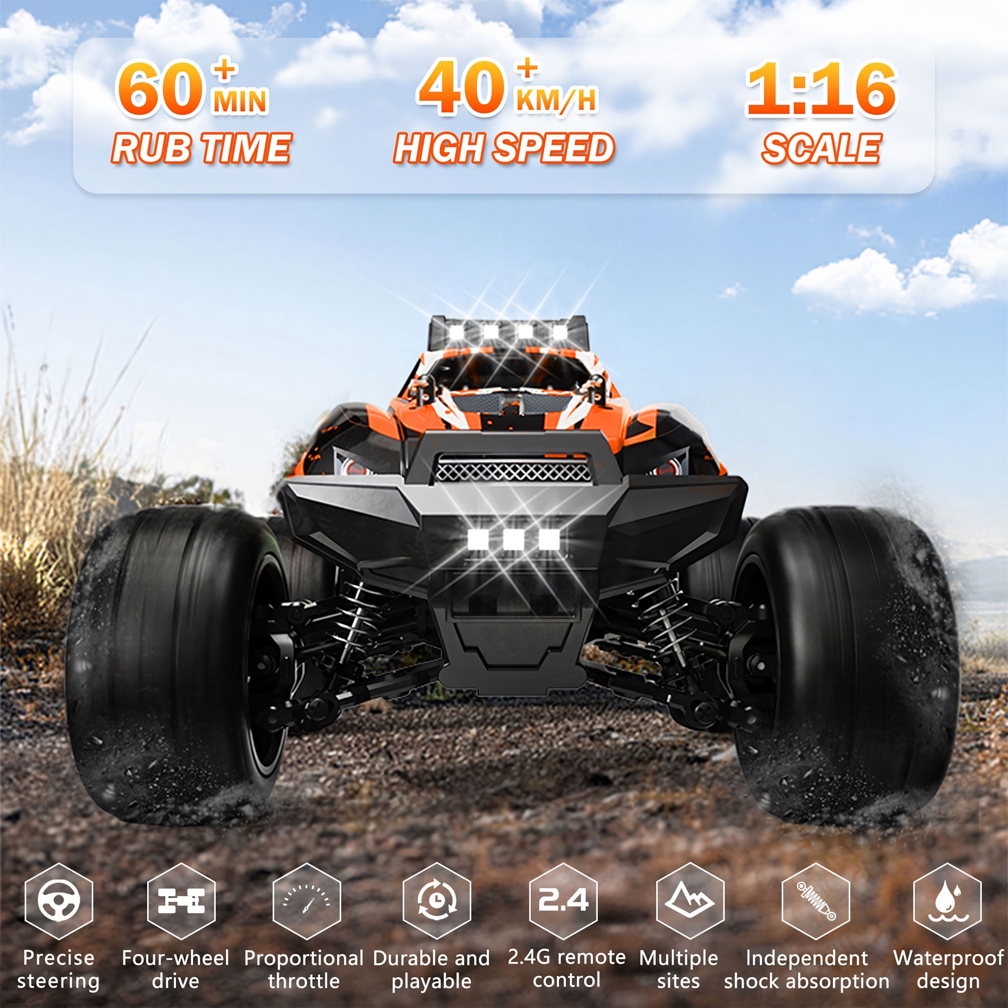 Yexmas 1:16 High-Speed RC Car,40KM/H All Terrain Remote Control Car,2 Batteries Gifts Toys for Kids Adults