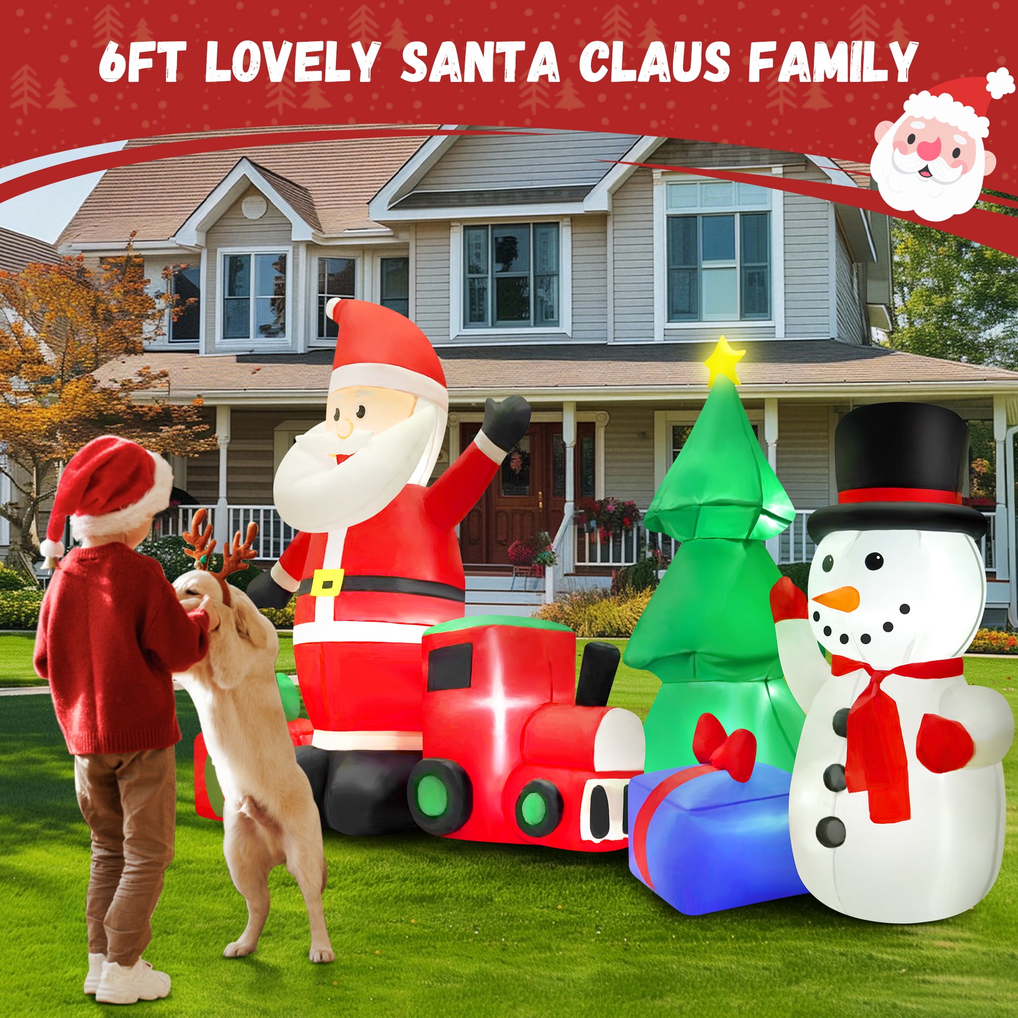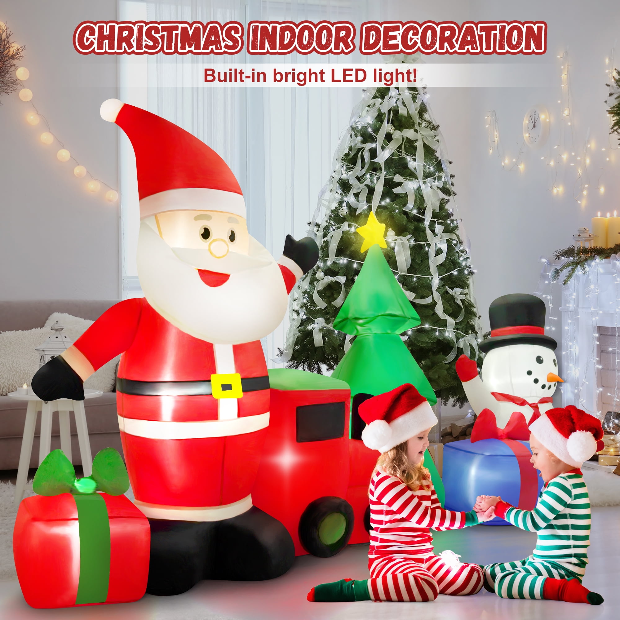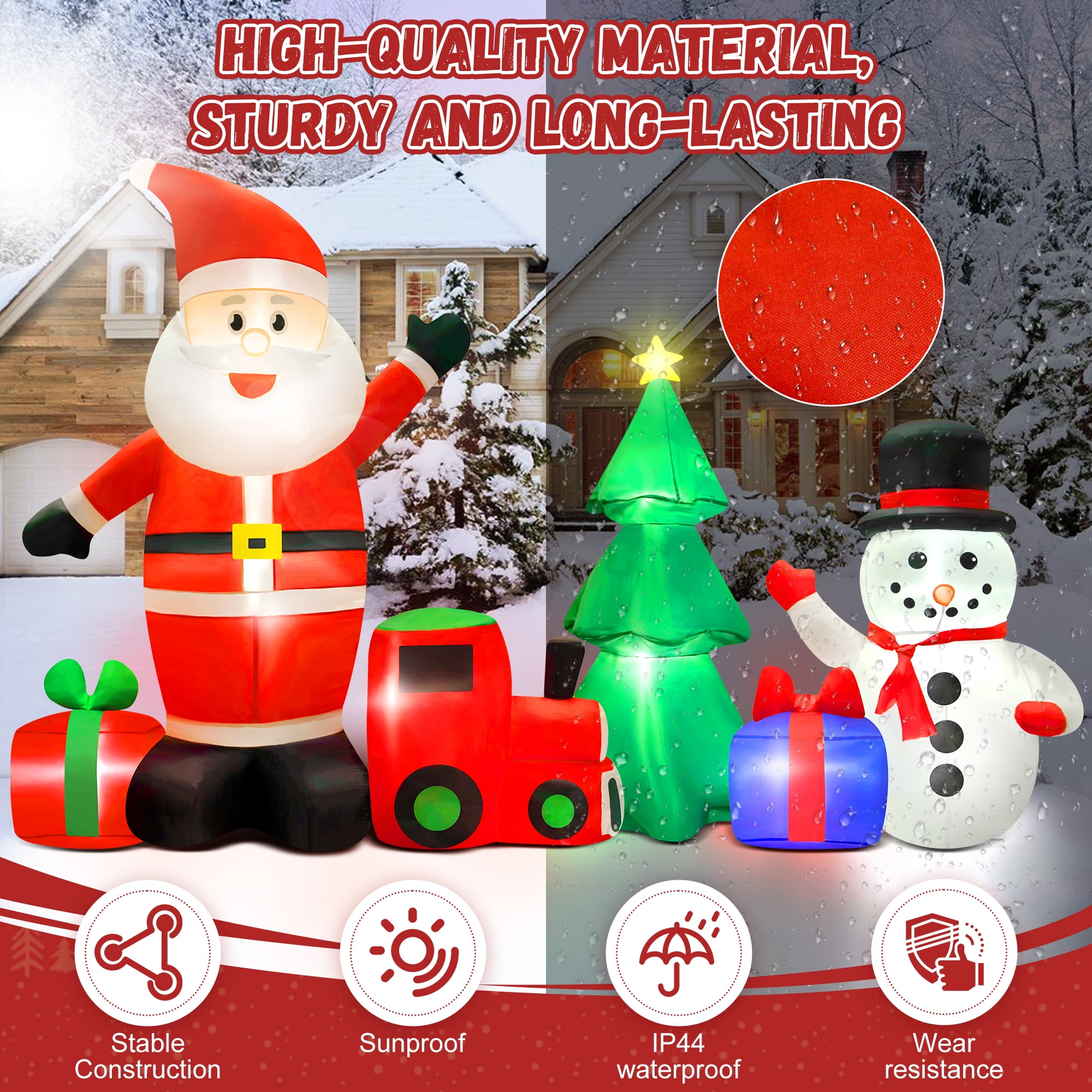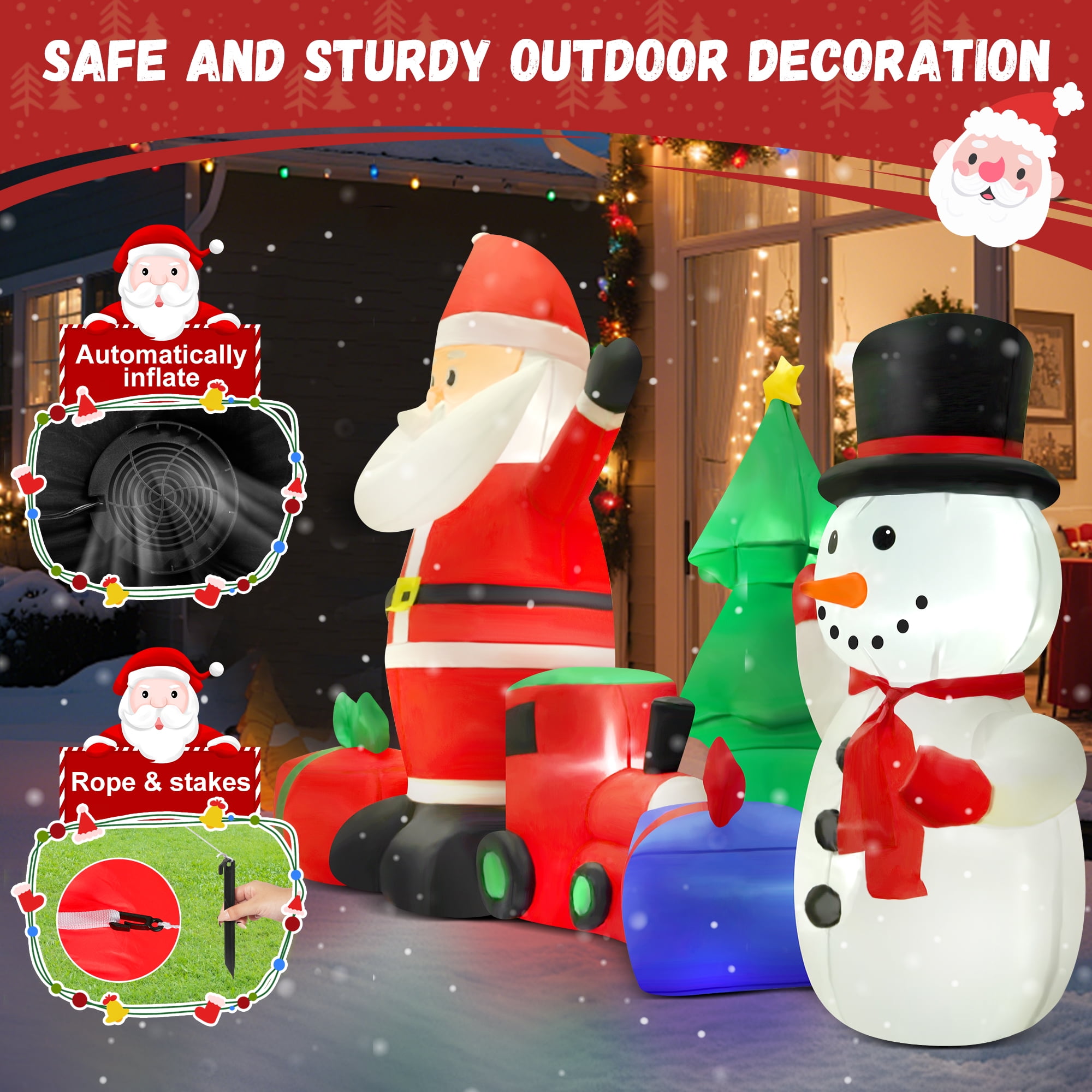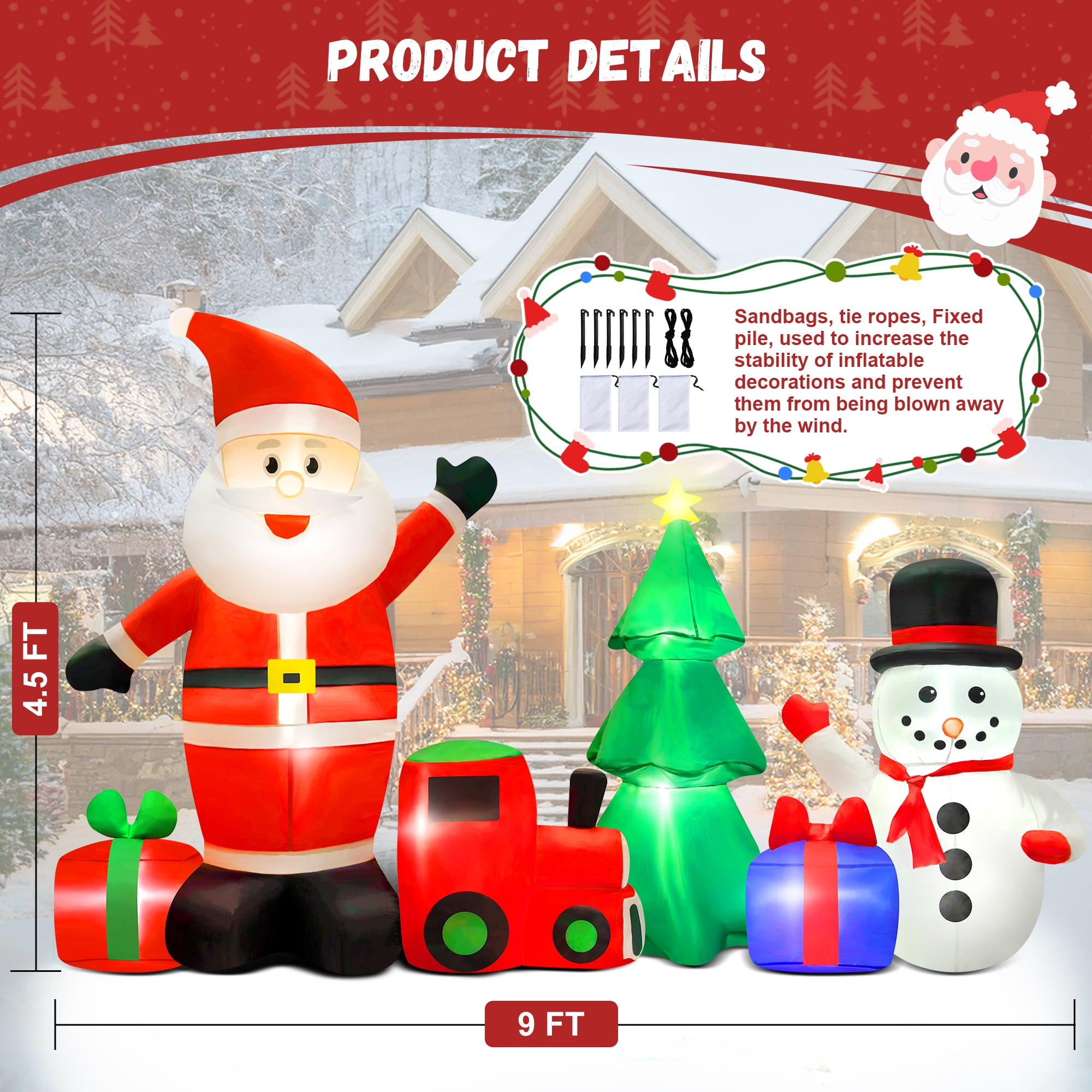 Yexmas 9FT Christmas Inflatables with Blow Up LED Lights, Santa Claus Snowman Train Gift Boxes & Christmas Tree for Indoor Outdoor Xmas Decoration