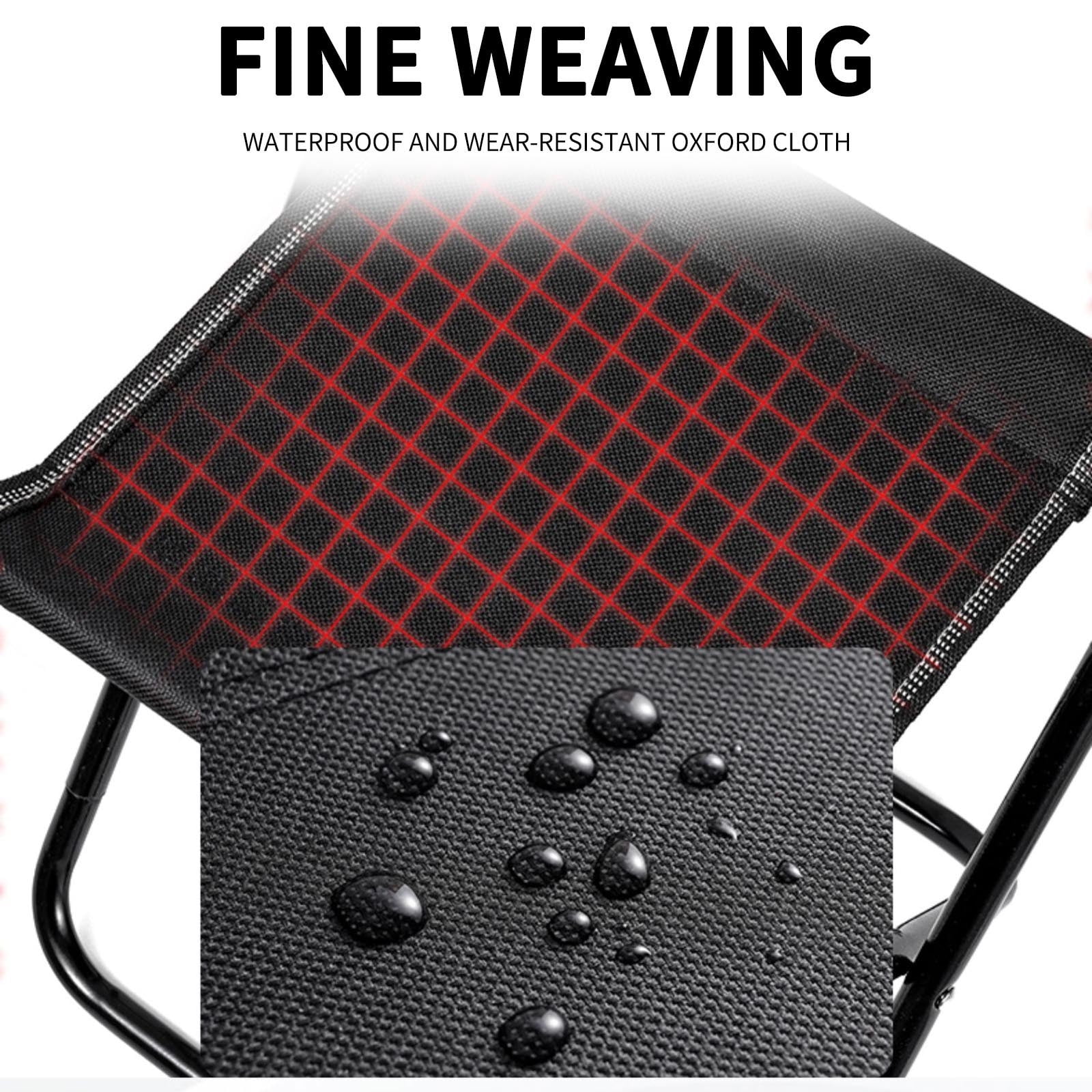 [Portable & Lightweight ]: Portable folding chair easy to assemble without tools, it features high-elastic connecting rope and portable folding structure provides a practical closure design that opens and fold up within seconds. [Durable & Sturdy Material]: Stable and strong load-bearing, high-strength aluminum alloy, a “”durable”” folding stool shaped stable frame structure with high-strength hardware accessories gives you a stable sense of security . [Saving Space]: Mini camping stool can be folded into small sizes when not in use, can be put into the storage bag and even the pocket, will help you save a lot of space, convenient to carry around anywhere. [Application Places]: Folding chair for all outdoor and indoor activities, perfect for bedroom, office, pool, beach, backyard, lawn, sports meeting, picnic party, camping, BBQ, fishing, mountaineering or wait in line. [Easy To Clean]: Wear- Oxford cloth, finely woven, easy to clean without wrinkles,it will become your ideal outdoor gear.