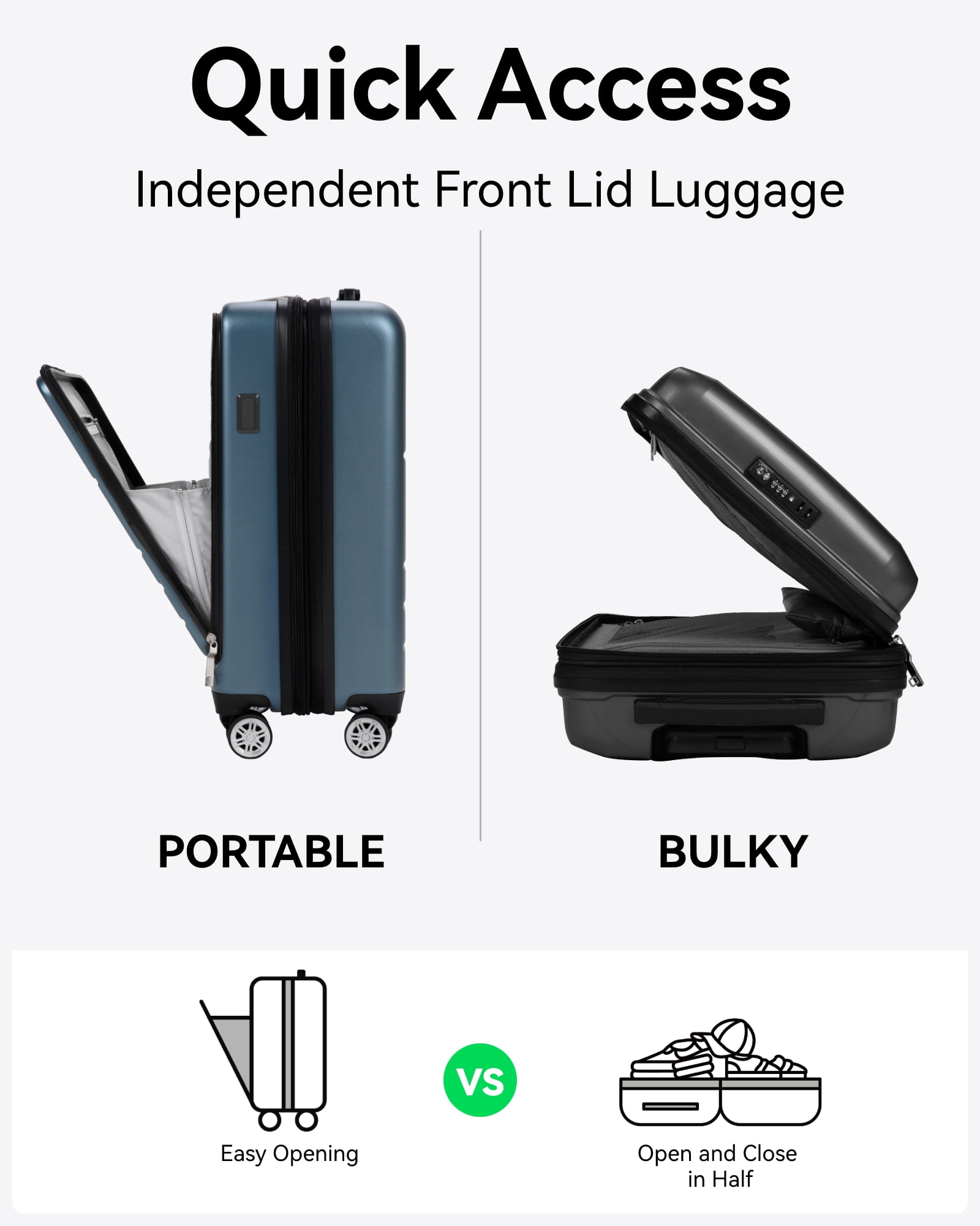 Minimalism and timelessness are the DNA of YOETEY. When you come to YOETEY, being chic and stylish is effortless.Continuous updated designs to meet different personal styles. At our store, we understand that travel should be as enjoyable as the destination itself. That’s why we offer a stunning collection of stylish and convenient rolling suitcases, designed to be your perfect travel companion. Our luggage combines modern aesthetics with functionality, ensuring you travel in both style and ease. YOETEY Carry on Luggage 20 Inch / Large Checked Luggage 28 Inch with Front Pocket, Expandable Polycarbonate Hard Shell Suitcase with USB Port – Suitable for Back to School and College Color:Gun Black / Blue / Silver / Champagne / Green / Purple / Pink / Ivory White / Hazelnut Edge Black / Hazelnut Edge Ivory White 20-INCH SIZE:22.0×14.2×9.5 IN, Weight:7.9 LB, Capacity:36.1 L Product Features 1.Front Pocket Full Open for Quick Access 2.USB-A/USB-C Charge 3.15% Expandable Design to Storage 4.100% Polycarbonate Material More Durable than ABS 5.Thickened Shockproof Cotton 6.Three-Step Telescoping Handle 7.Comfort Rebound Side Handle 8.Spacious Interior with U-shaped Net 9.360° Silent Spinner Wheels 10.TSA Lock for Safety 11.Smoothness Zips 12.Airline Approved ⭐How do I set the code when I first get it? 1. Turn the dials to the correct combination.(0-0-0) 2. Press down the button by a tool, set the new combination (e.g.:8-8-8), then pull the square part. 3. Lock the case again, and now you can open the lock with the new combination. ⭐How to use the charging port? 1. Unzip the front pocket and find the cable inside. 2. Charge it with a power bank. (The USB input only works for USB output) 3. Open the outside charge port and connect it with a cable, then connect it to your phone. ⭐Can both the front side and main compartment lock? Yes. The TSA Lock works for both sides zippers! ⭐If the luggage I received was damaged, who can I look for? We promise that every luggage will go through strict quality inspection before shipping. Please feel free to let us know and the related team will respond within 12H.